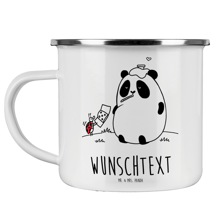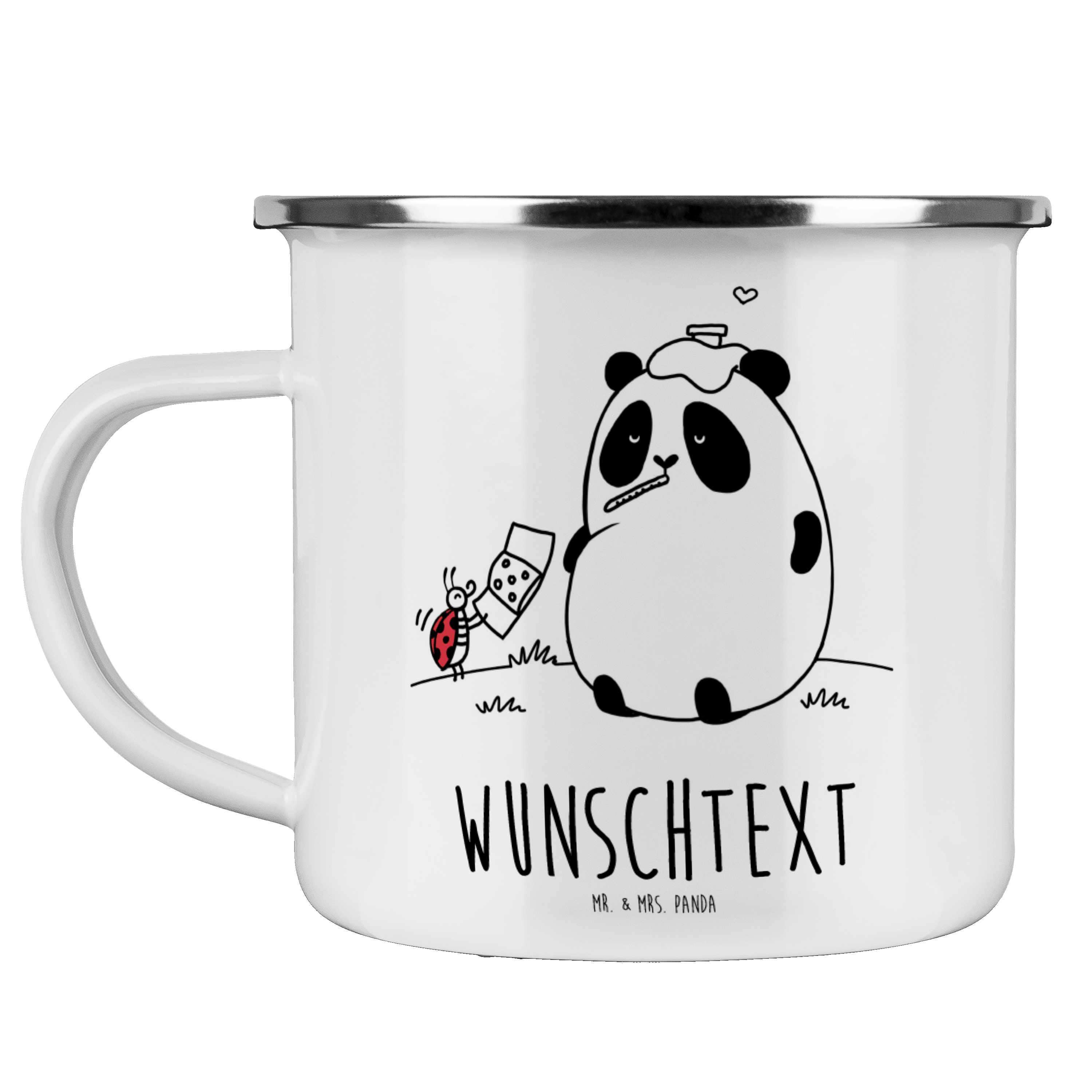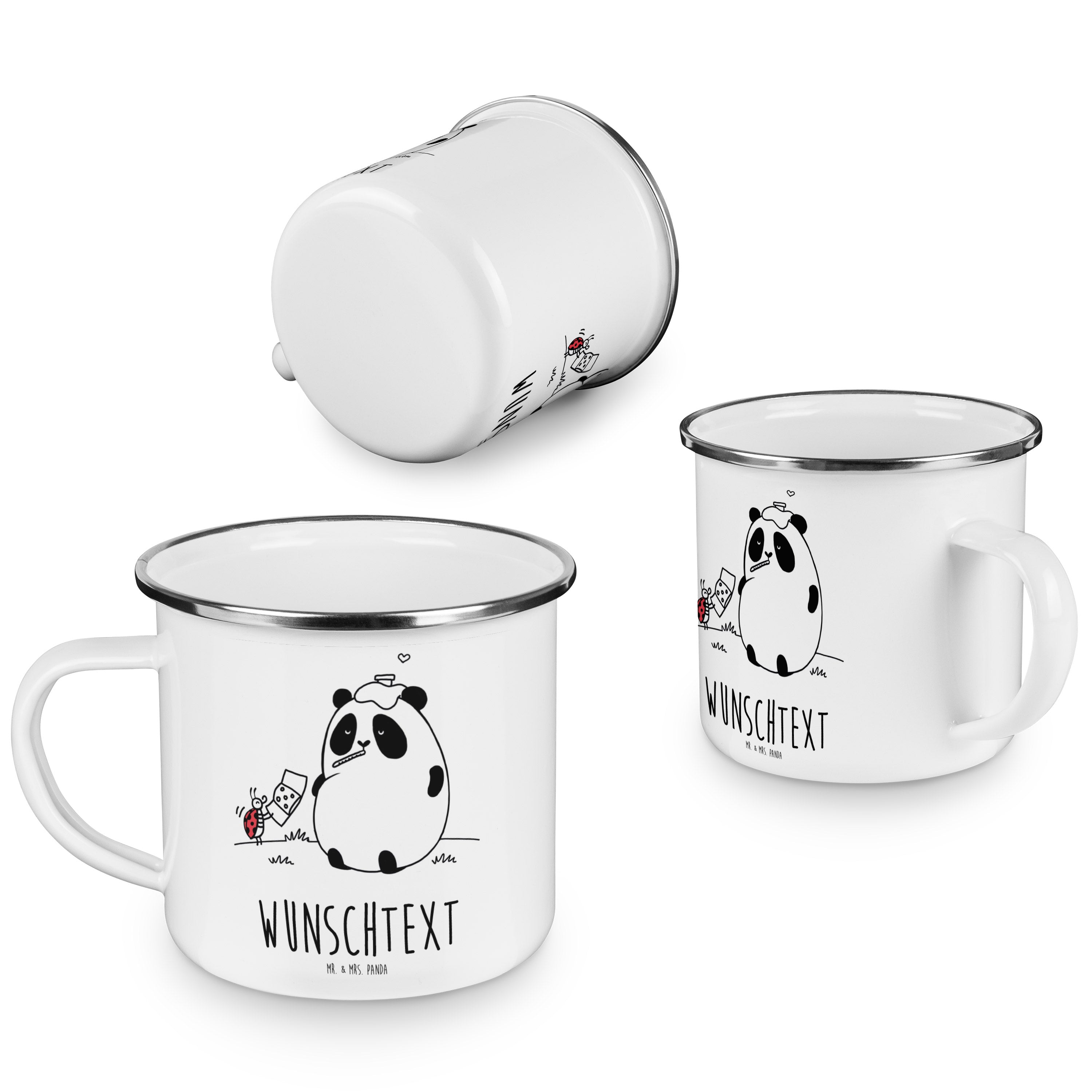 Diese wunderschöne personalisierte Emailletasse von Mr. & Mrs. Panda mit abgesetztem Edelstahl Rand in Emaille Optik ist der perfekte, bruchsichere Begleiter für dein nächstes Abenteuer. Sie wird von uns liebevoll mit deinem Namen oder Wunschnamen bedruckt. Das Füllvolumen des Bechers beträgt 300 ml. So sind die Motivtassen ideal beim Camping als Campingbecher einsetzbar.