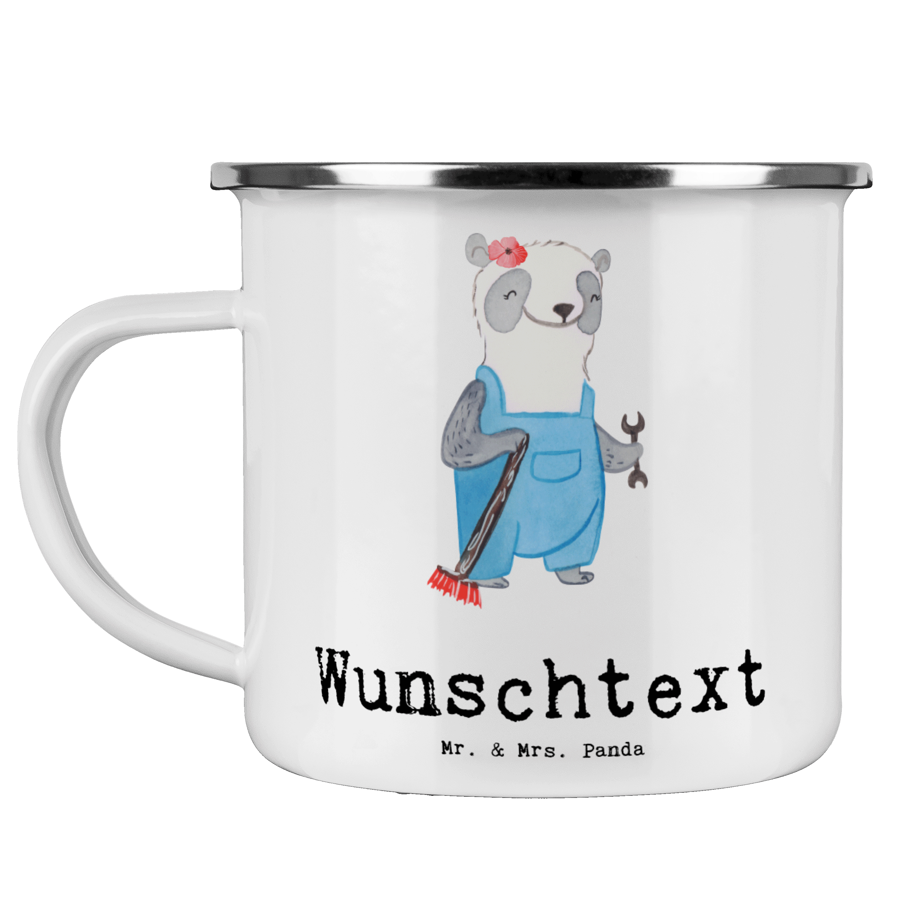 Personalisierte Emaille Tasse Hausmeisterin mit Herz