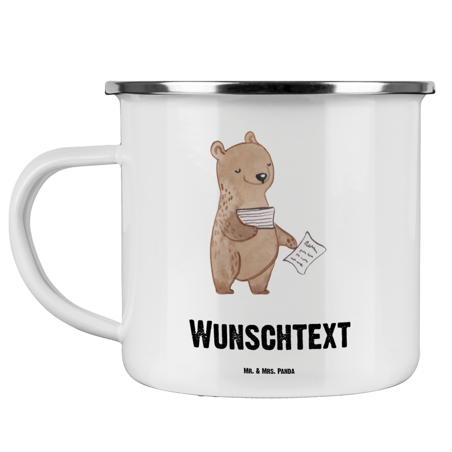 Diese wunderschöne personalisierte Emailletasse von Mr. & Mrs. Panda mit abgesetztem Edelstahl Rand in Emaille Optik ist der perfekte, bruchsichere Begleiter für dein nächstes Abenteuer. Sie wird von uns liebevoll mit deinem Namen oder Wunschnamen bedruckt. Das Füllvolumen des Bechers beträgt 300 ml. So sind die Motivtassen ideal beim Camping als Campingbecher einsetzbar.