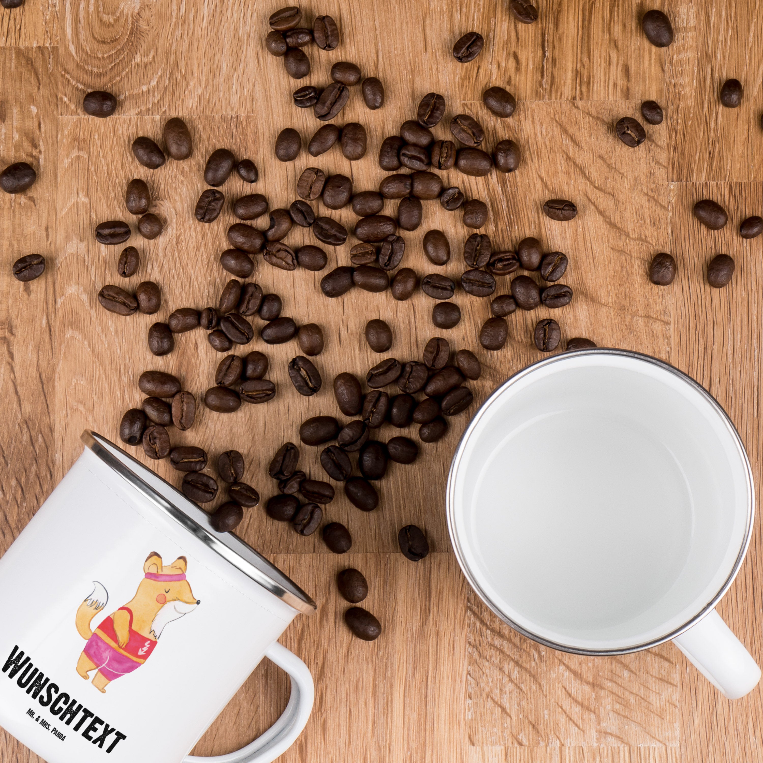 Diese wunderschöne personalisierte Emailletasse von Mr. & Mrs. Panda mit abgesetztem Edelstahl Rand in Emaille Optik ist der perfekte, bruchsichere Begleiter für dein nächstes Abenteuer. Sie wird von uns liebevoll mit deinem Namen oder Wunschnamen bedruckt. Das Füllvolumen des Bechers beträgt 300 ml. So sind die Motivtassen ideal beim Camping als Campingbecher einsetzbar.