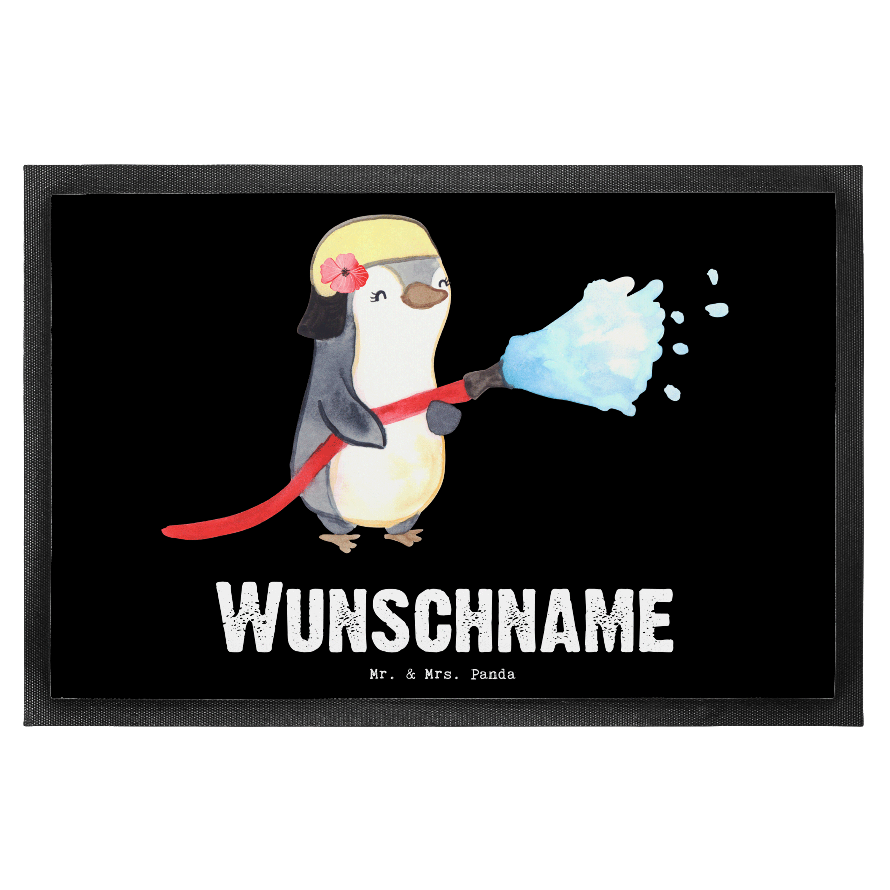 Personalisierte Fußmatte Feuerwehrfrau mit Herz
