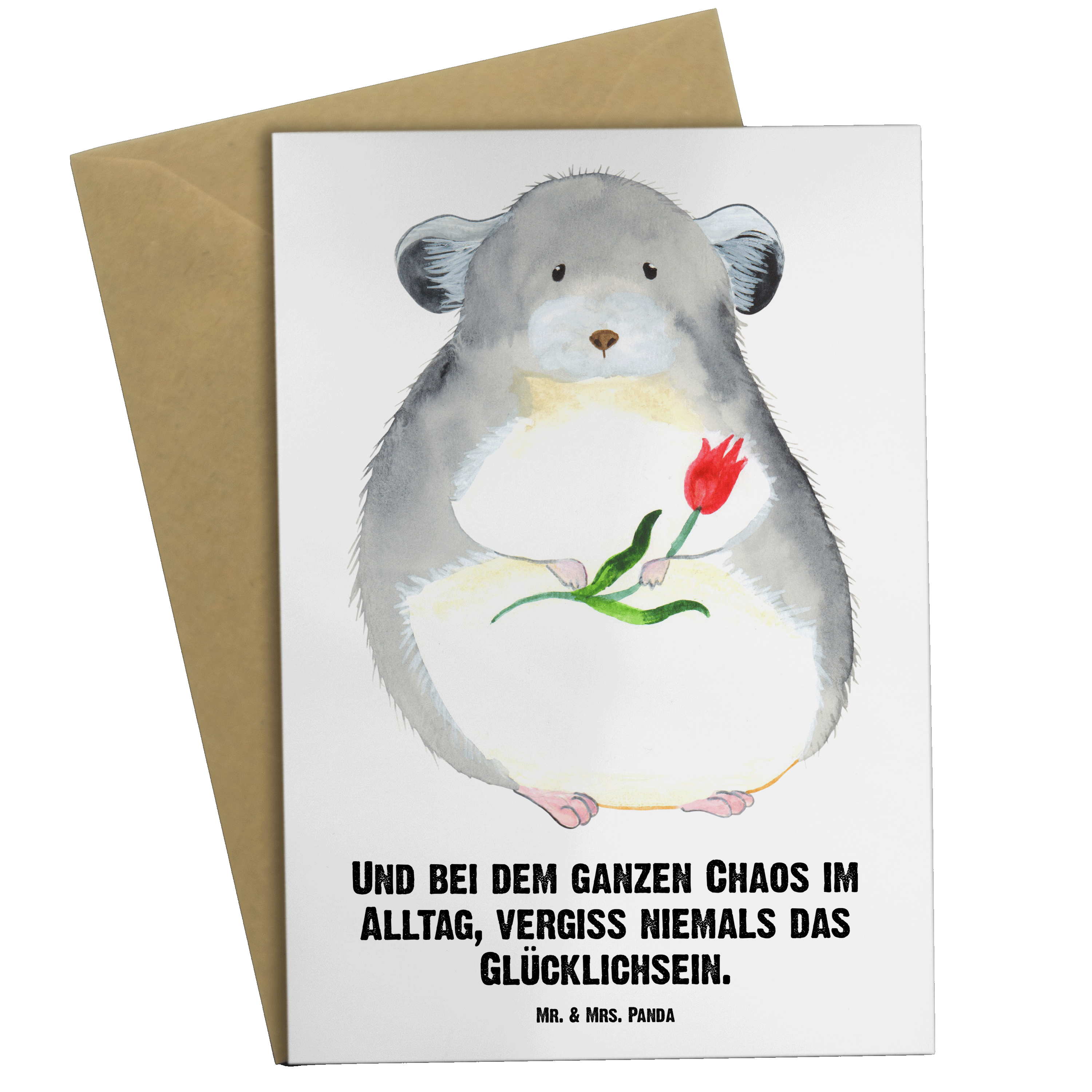 Du kannst dich dem niedlichen Chinchilla nicht entziehen, der dich mit großen Augen und einem Blumenstrauß in der Hand anschaut. Schon allein sein flauschiges Fell und seine niedliche Nase strahlen pure Herzenswärme aus. Das Design "Chinchilla mit Blume" von Mr. & Mrs. Panda ist das perfekte Accessoire für alle Tierfreunde.