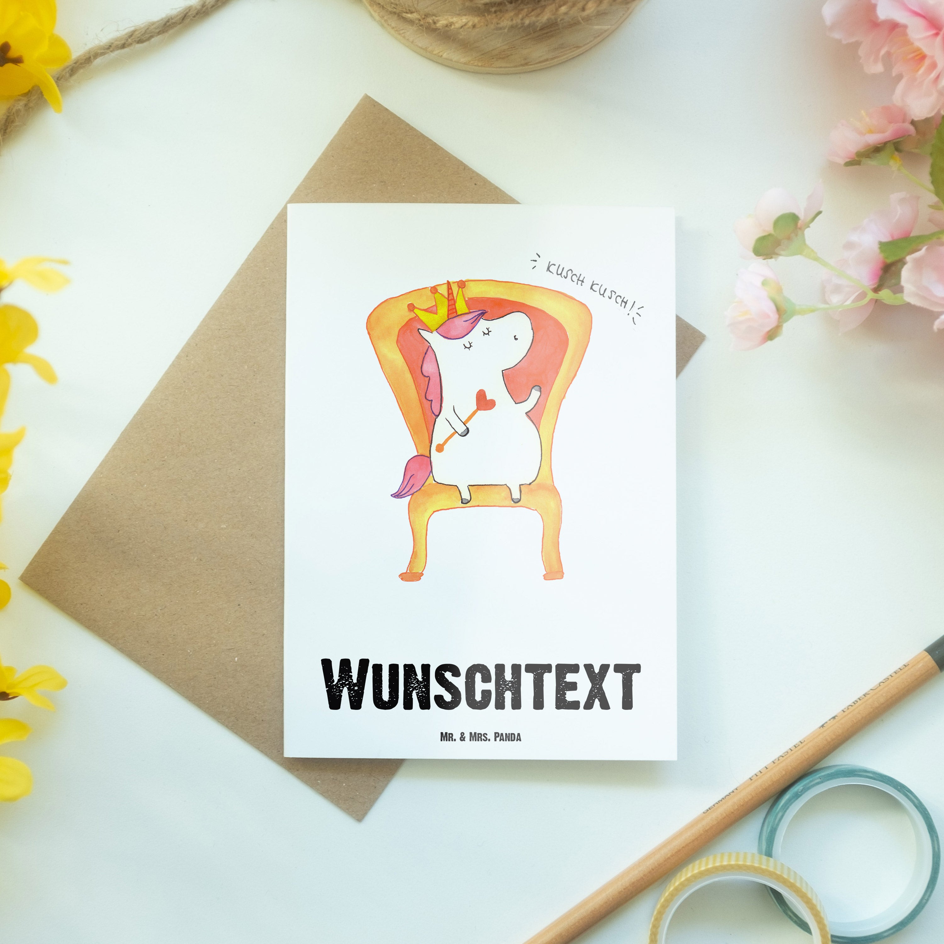 Das süße Einhorn auf dem Thron ist genau das richtige Geschenk für die beste Freundin. Denn manchmal würden wir doch alle gerne mit einer Krone auf einem Thron sitzen und Leuten, die uns nerven, ein kurzes "kusch, kusch" zurufen. Hauptsache sie lassen den Sekt da. Tipp von Mr. & Mrs. Panda: das perfekte Motiv für die Zimmertür.