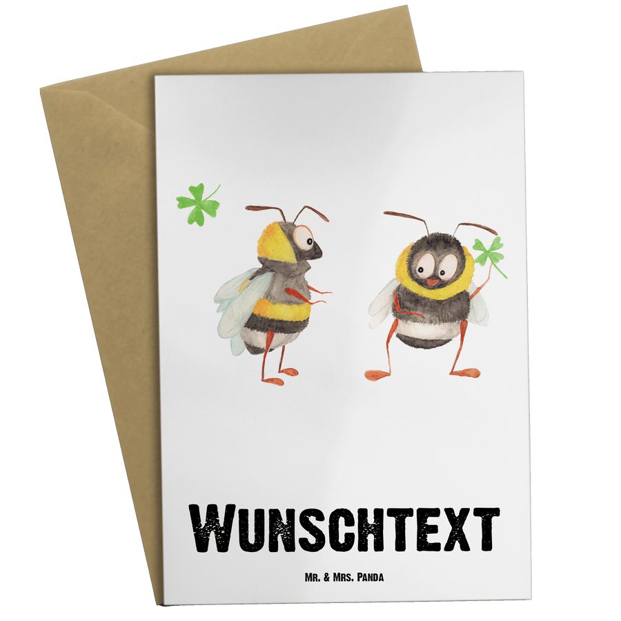 Personalisierte Grußkarte Hummeln mit Kleeblatt