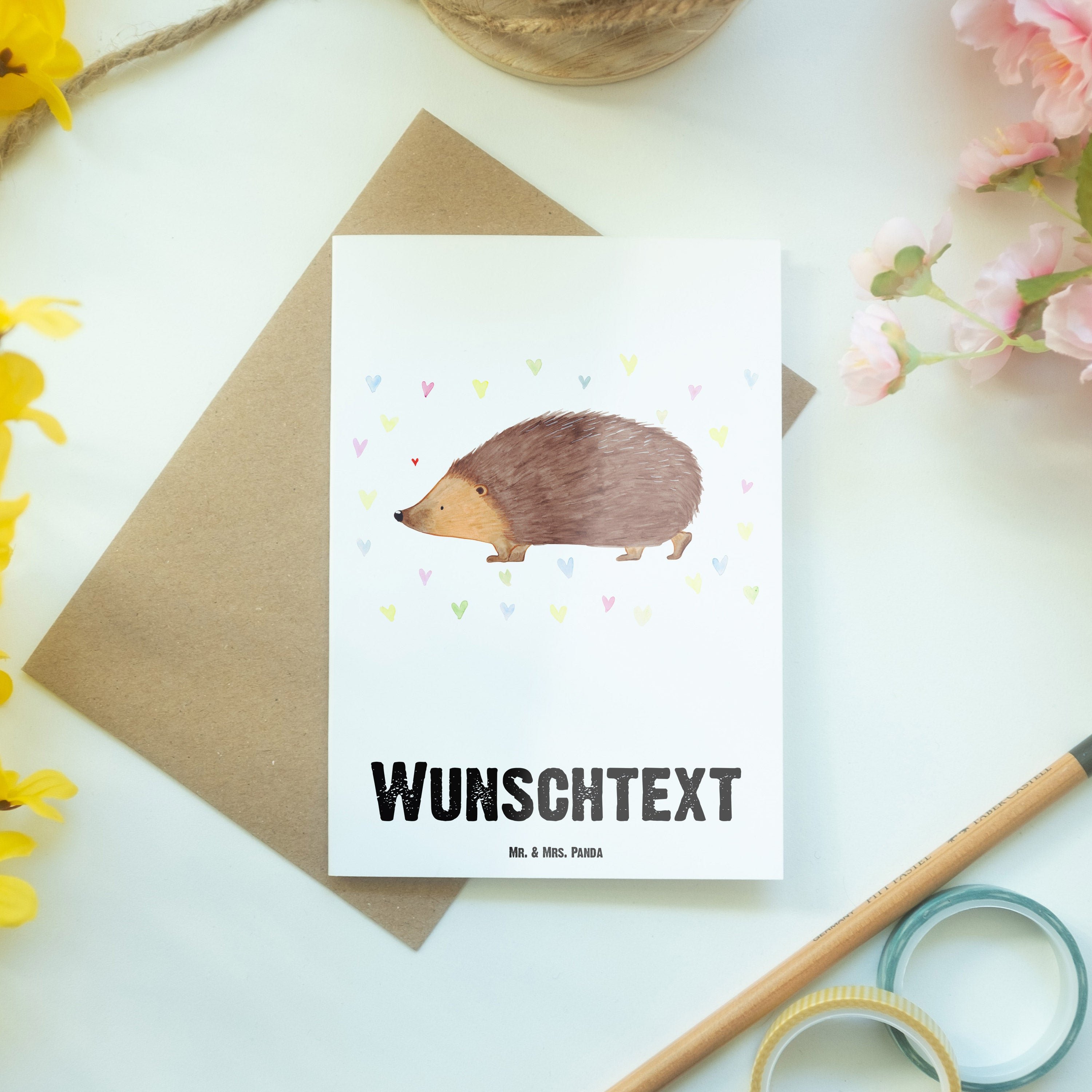 Personalisierte Grußkarte Igel Herzen