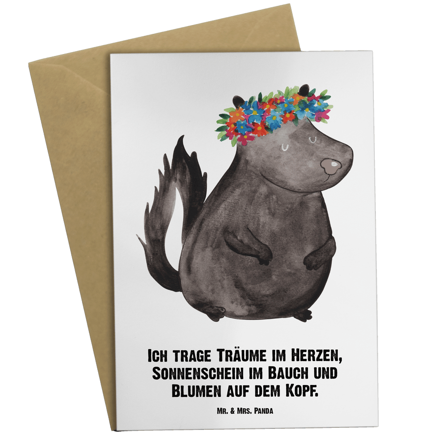 Personalisierte Grußkarte Stinktier Blumenmaedchen
