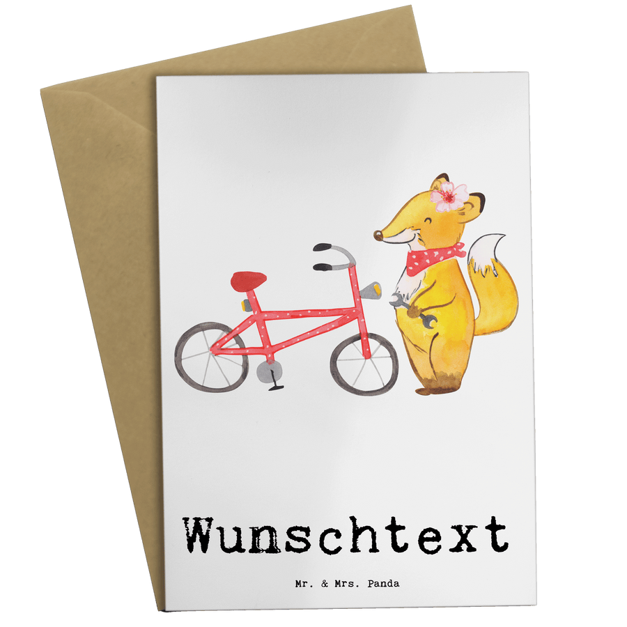Personalisierte Grußkarte Zweirad Mechanikerin mit Herz