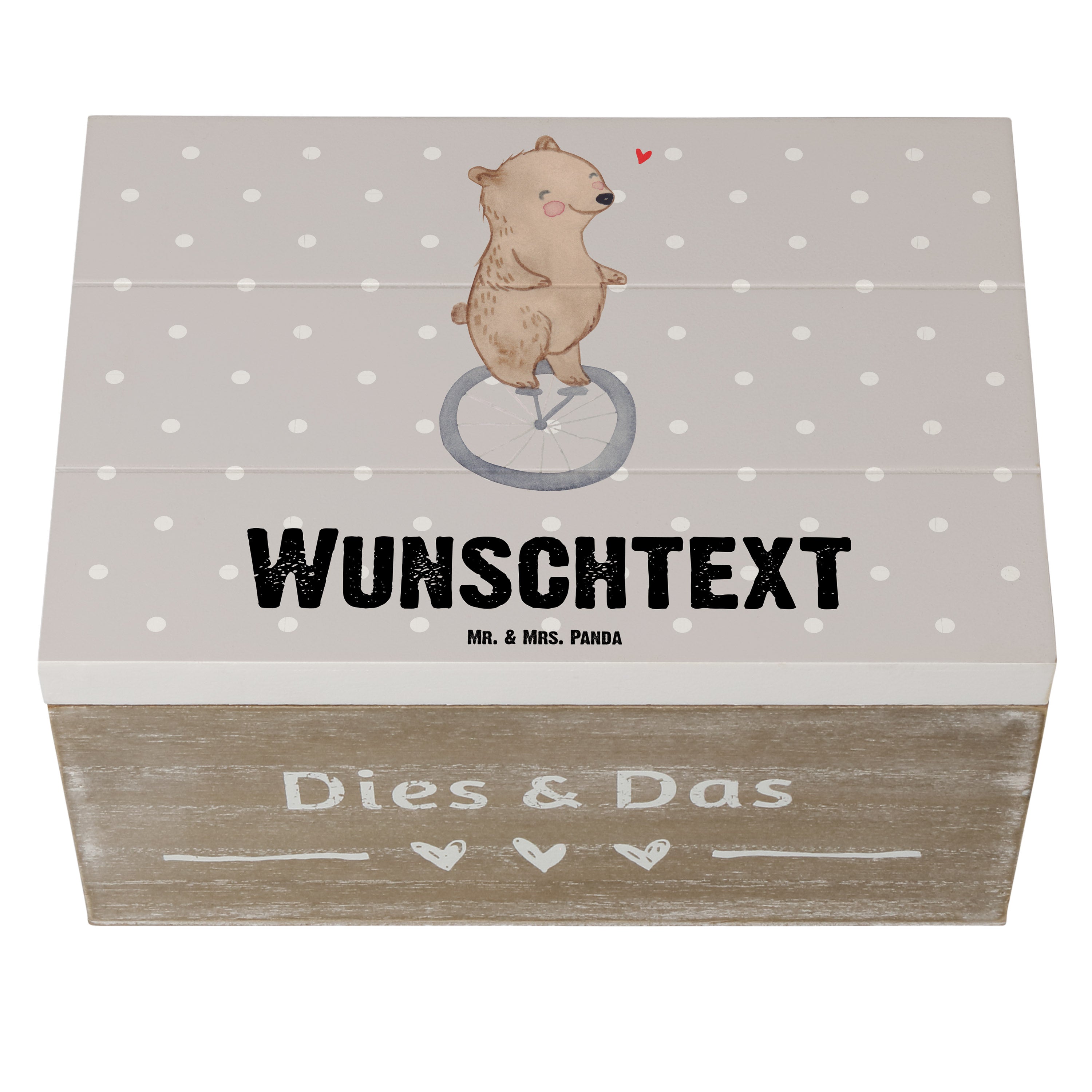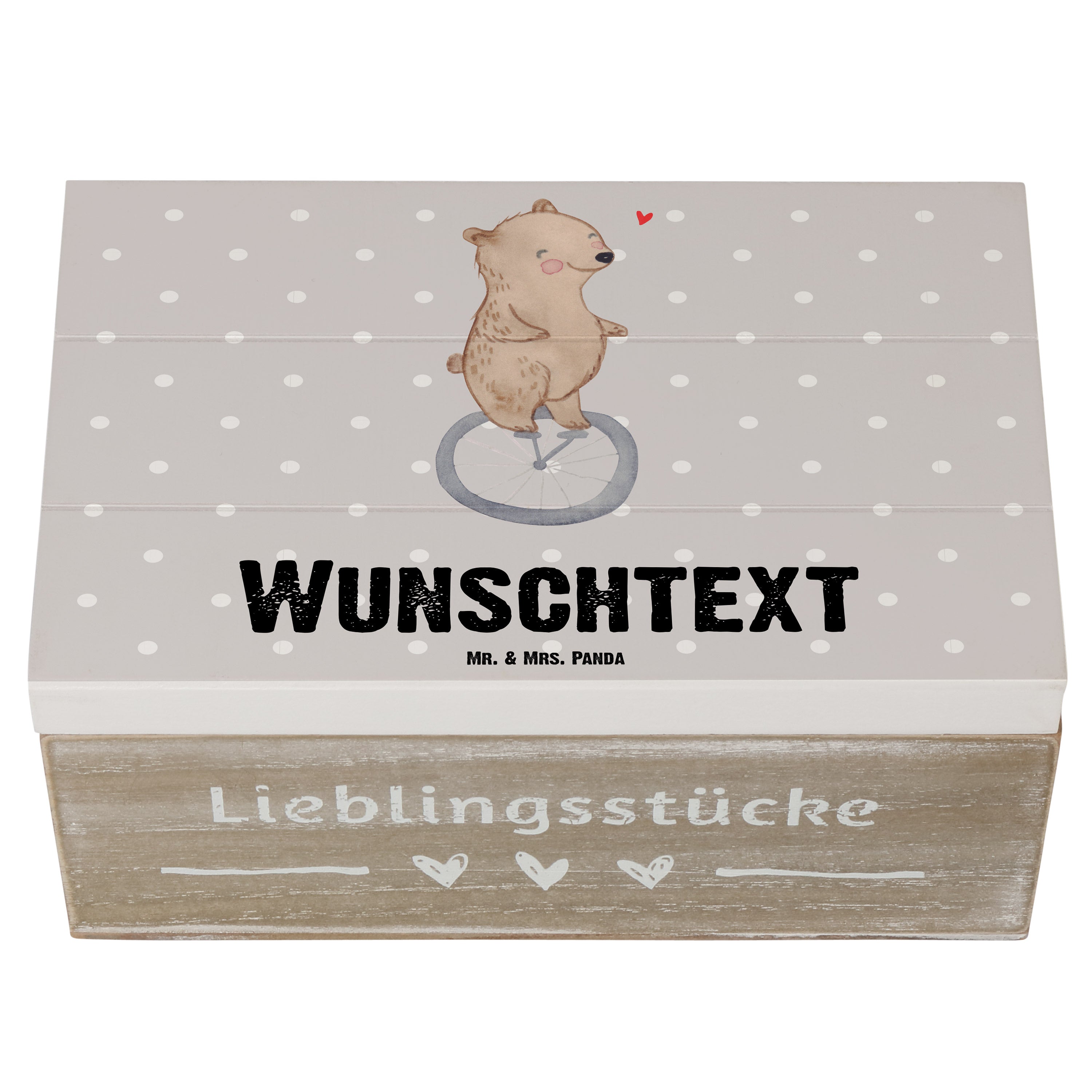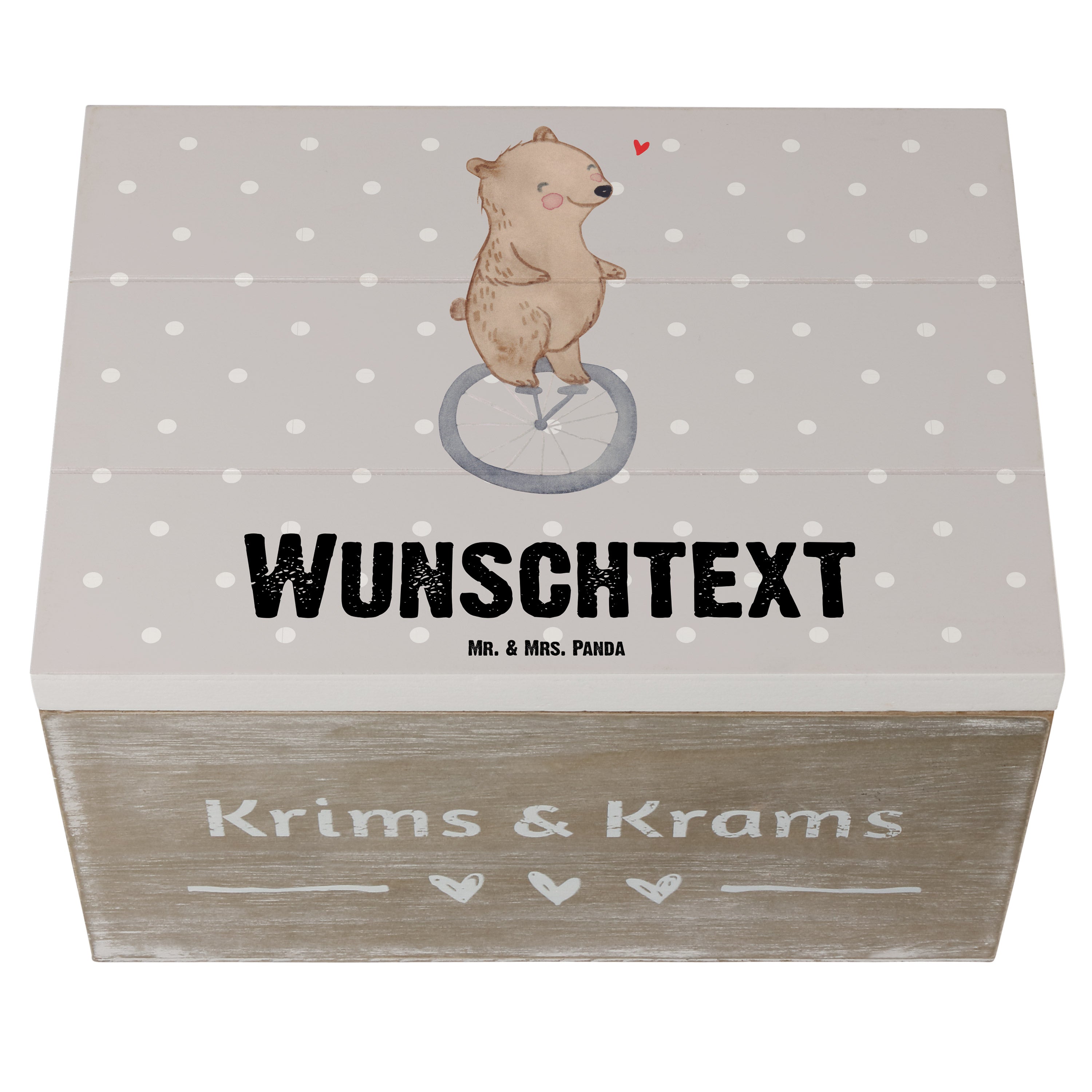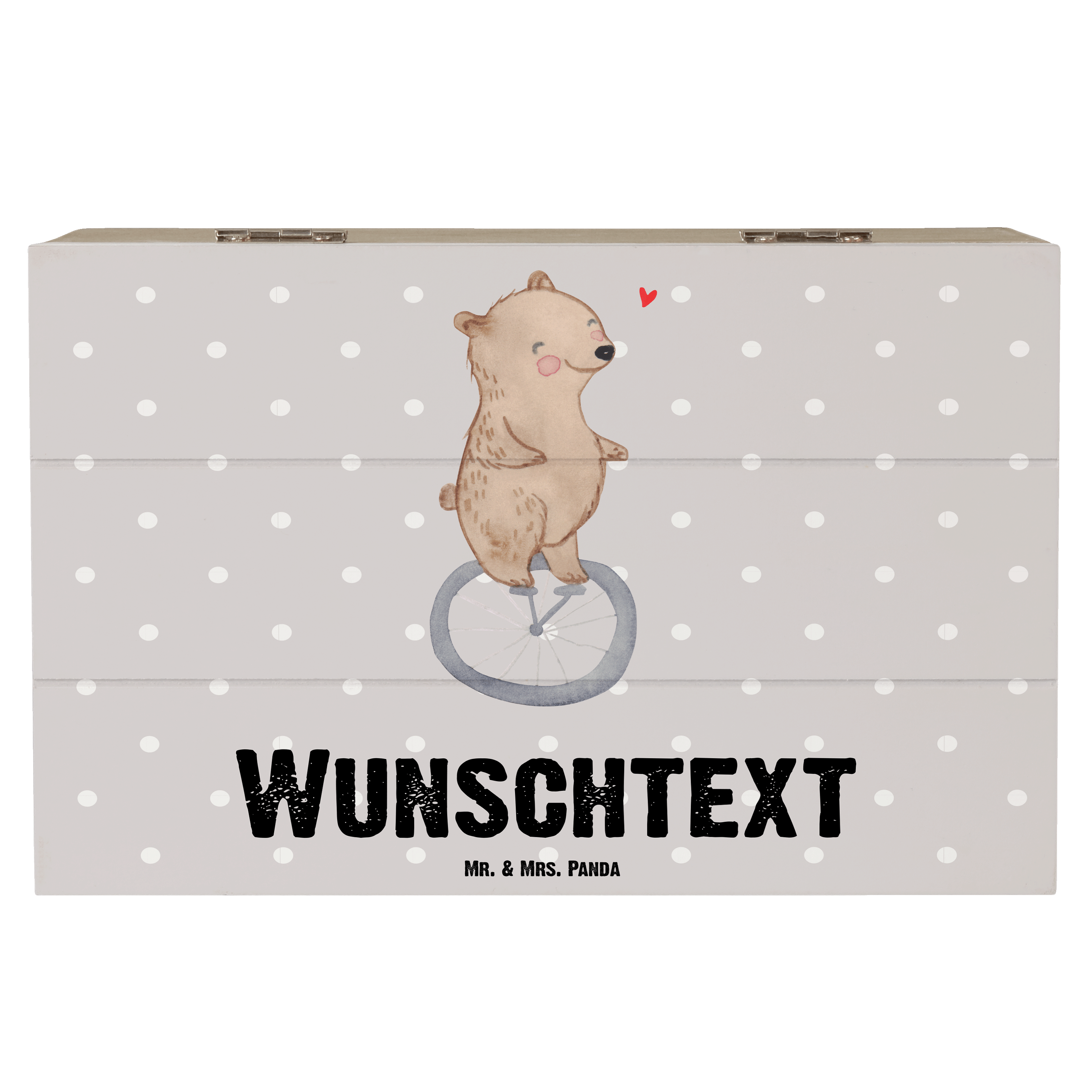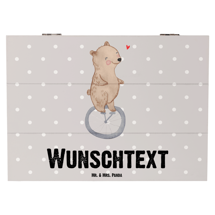 Personalisierte Holzkiste Bär Einrad fahren Tage - 25 x 18 cm - Grau Pastell