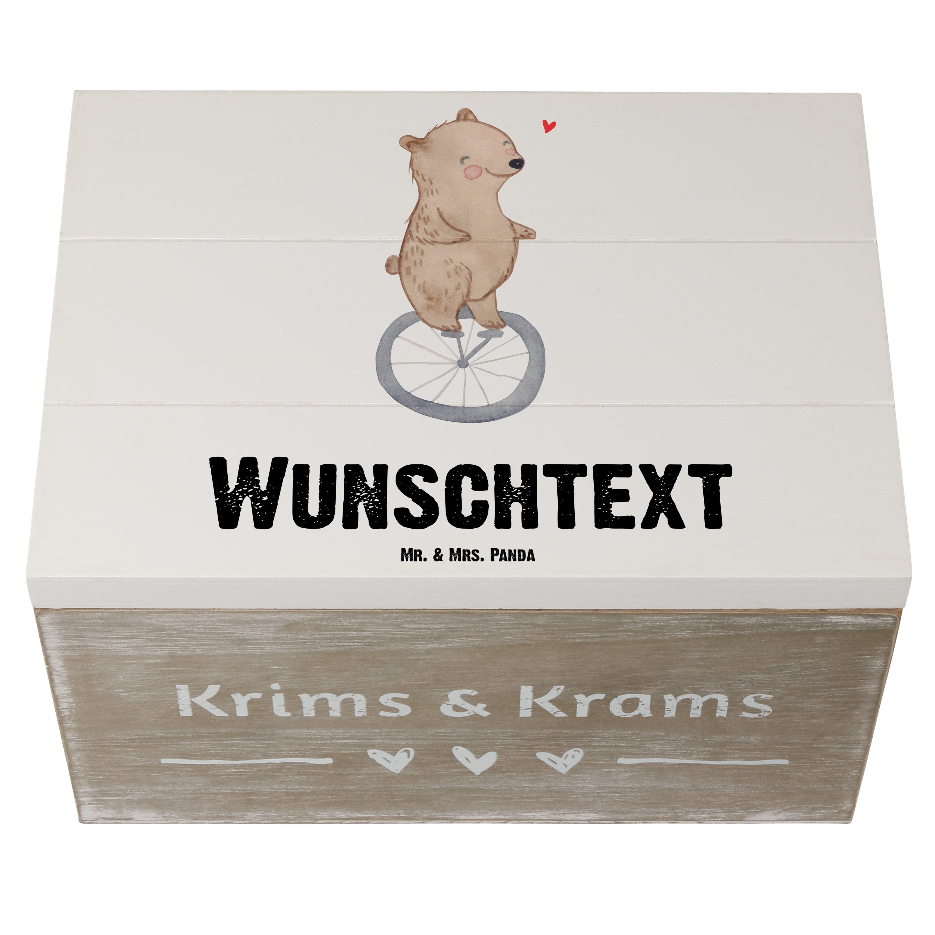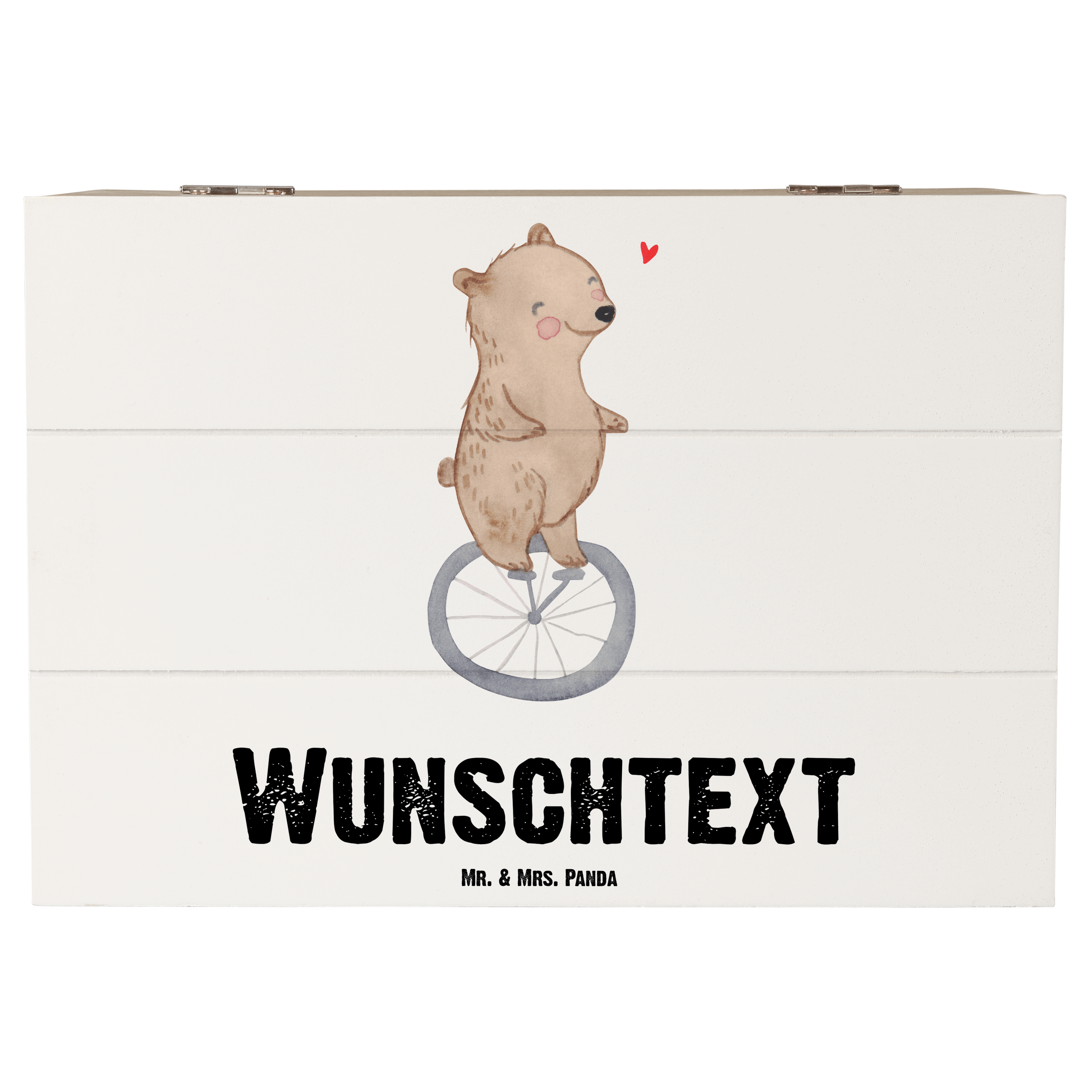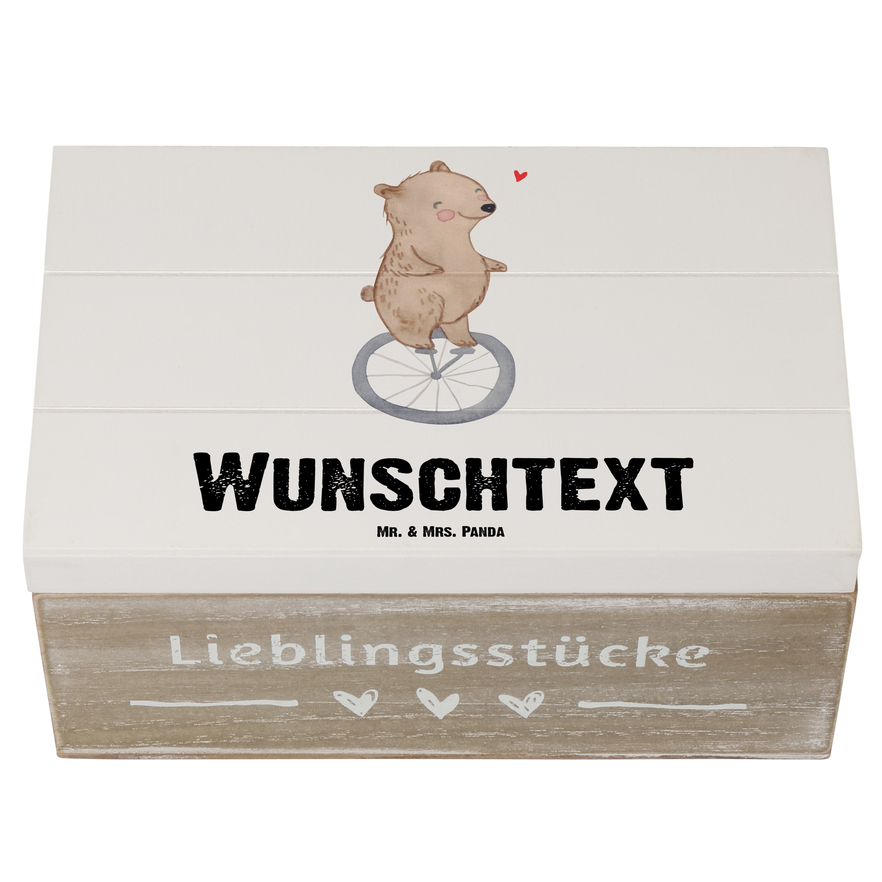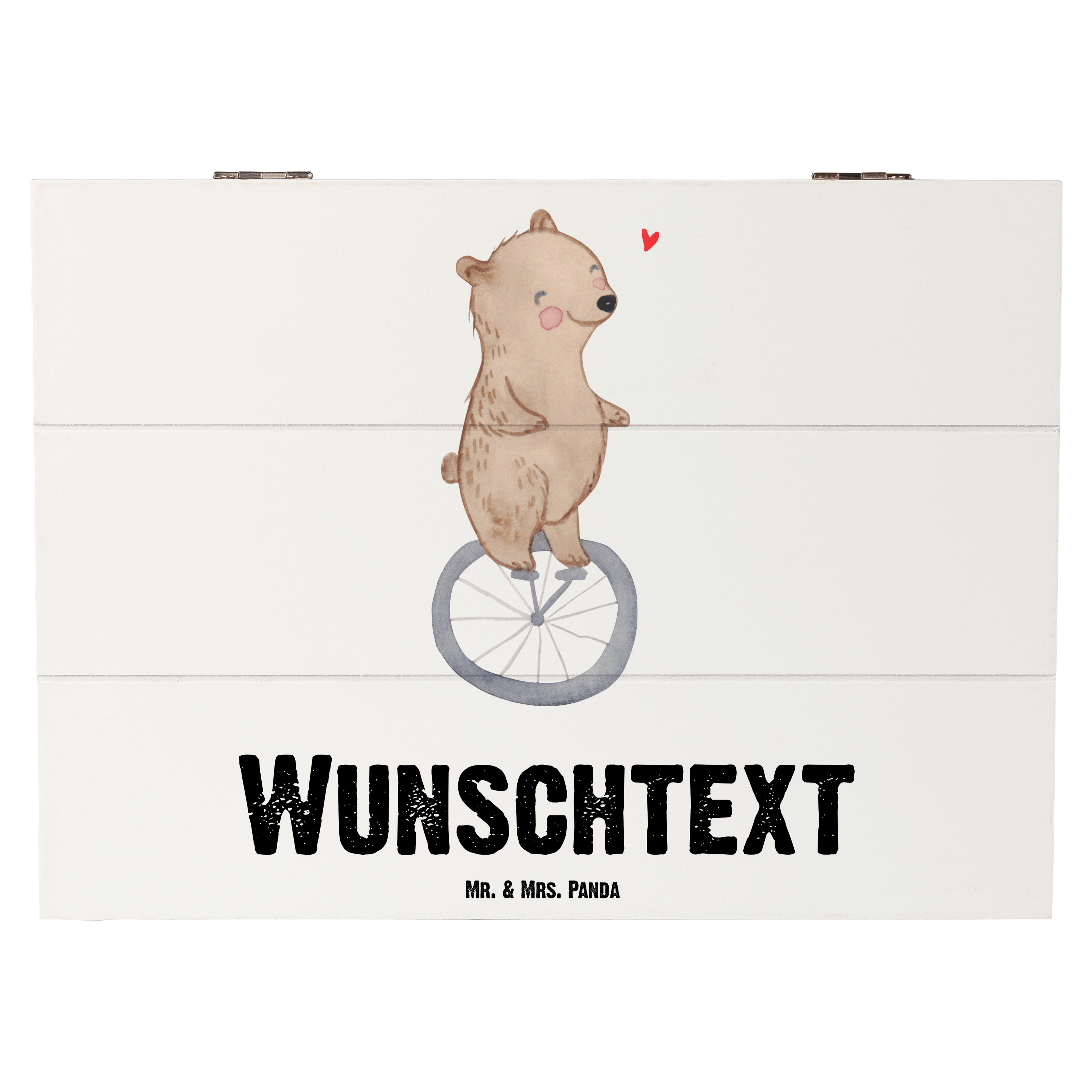 Personalisierte Holzkiste Bär Einrad fahren Tage - 25 x 18 cm - Grau Pastell