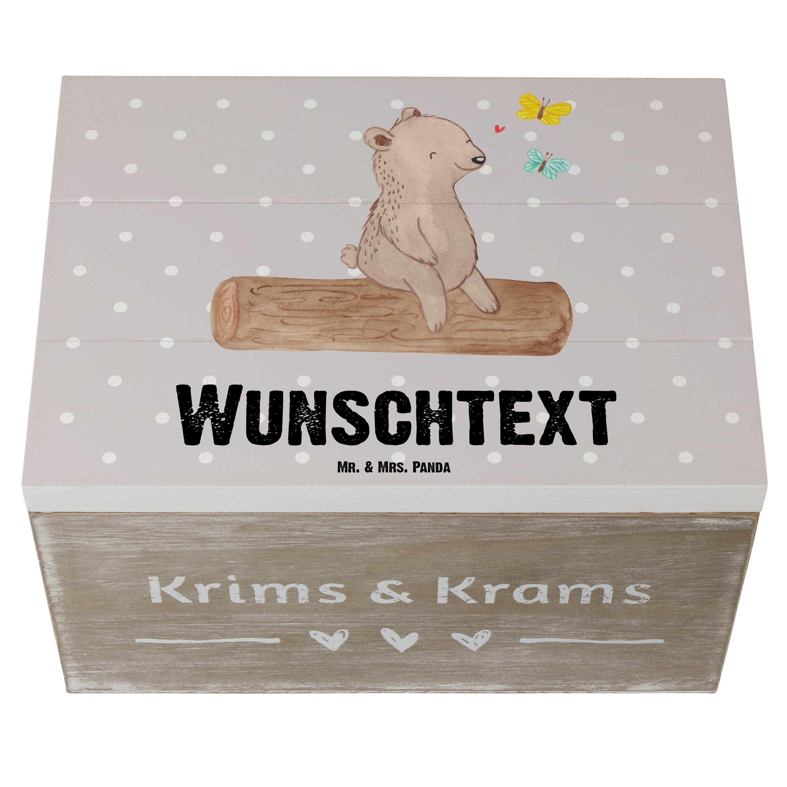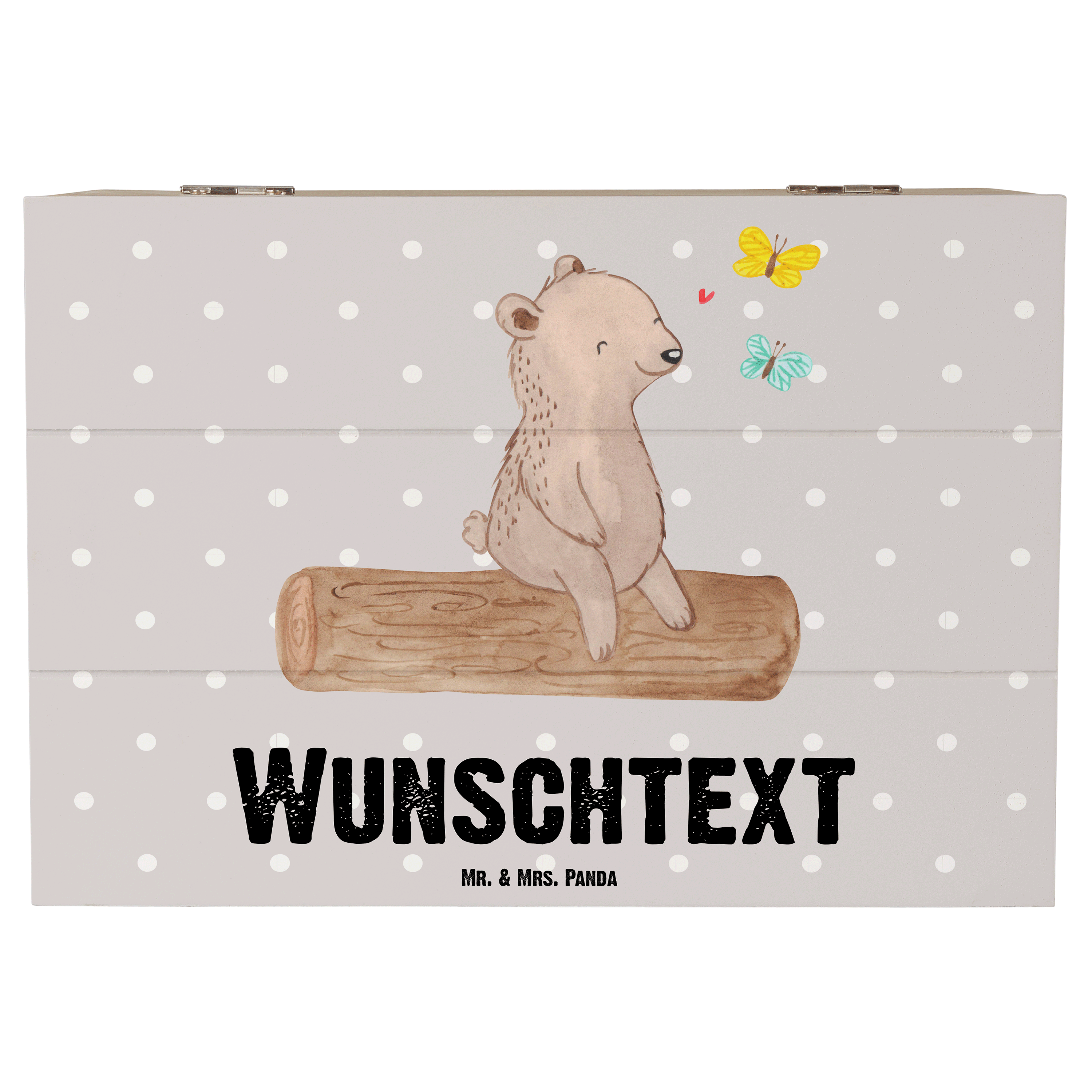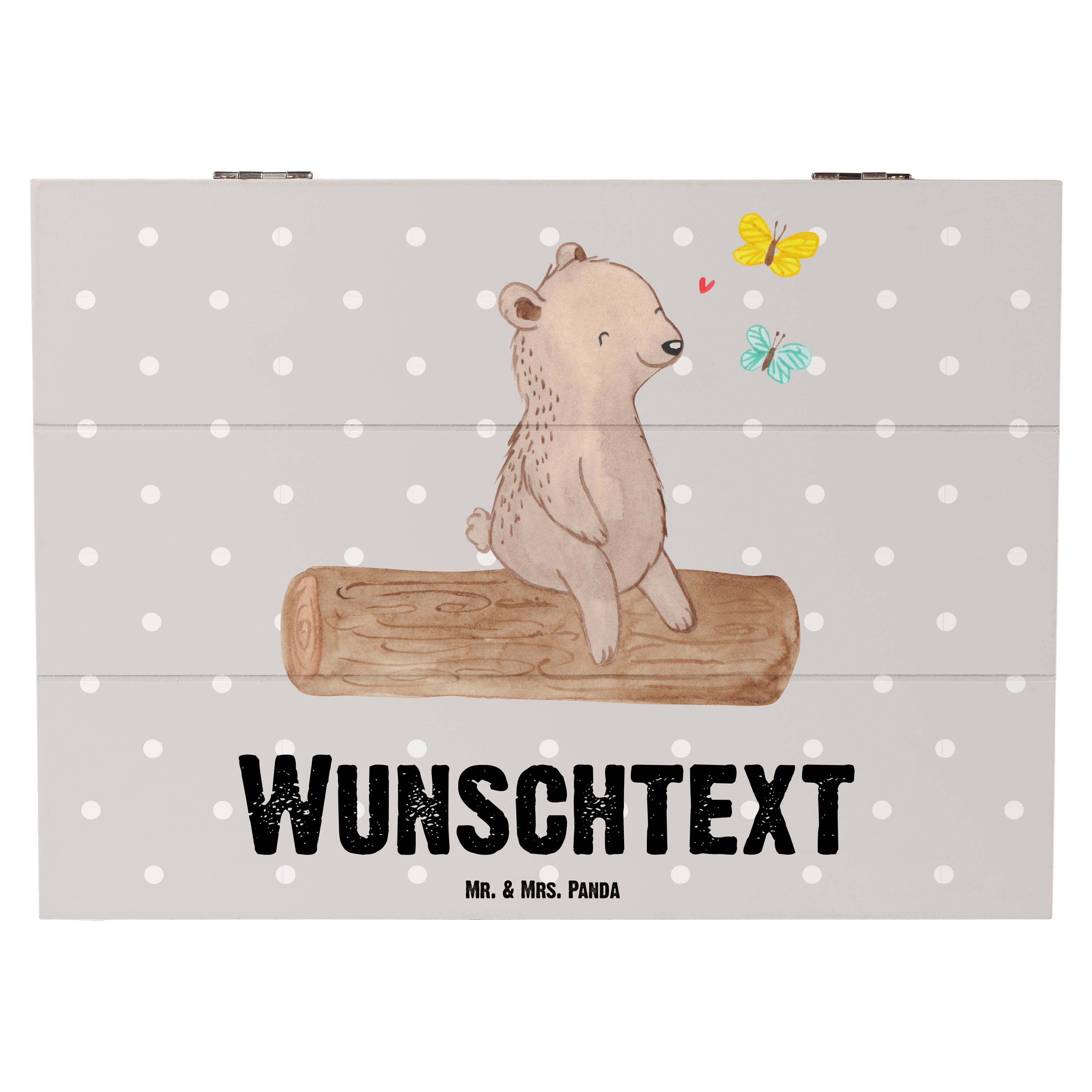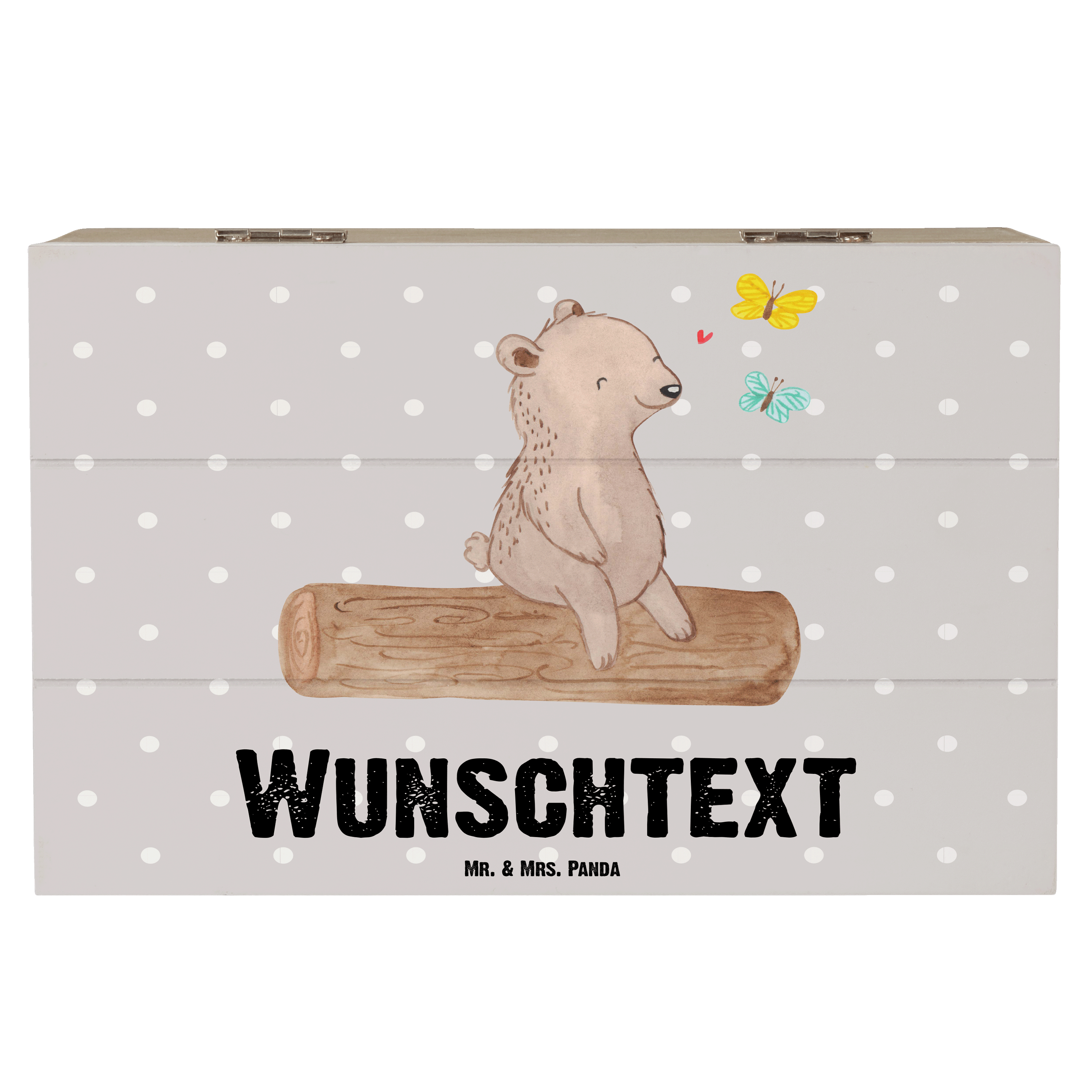 Personalisierte Holzkiste Bär Naturliebhaber Tage - Grau Pastell - 19 x 12 cm