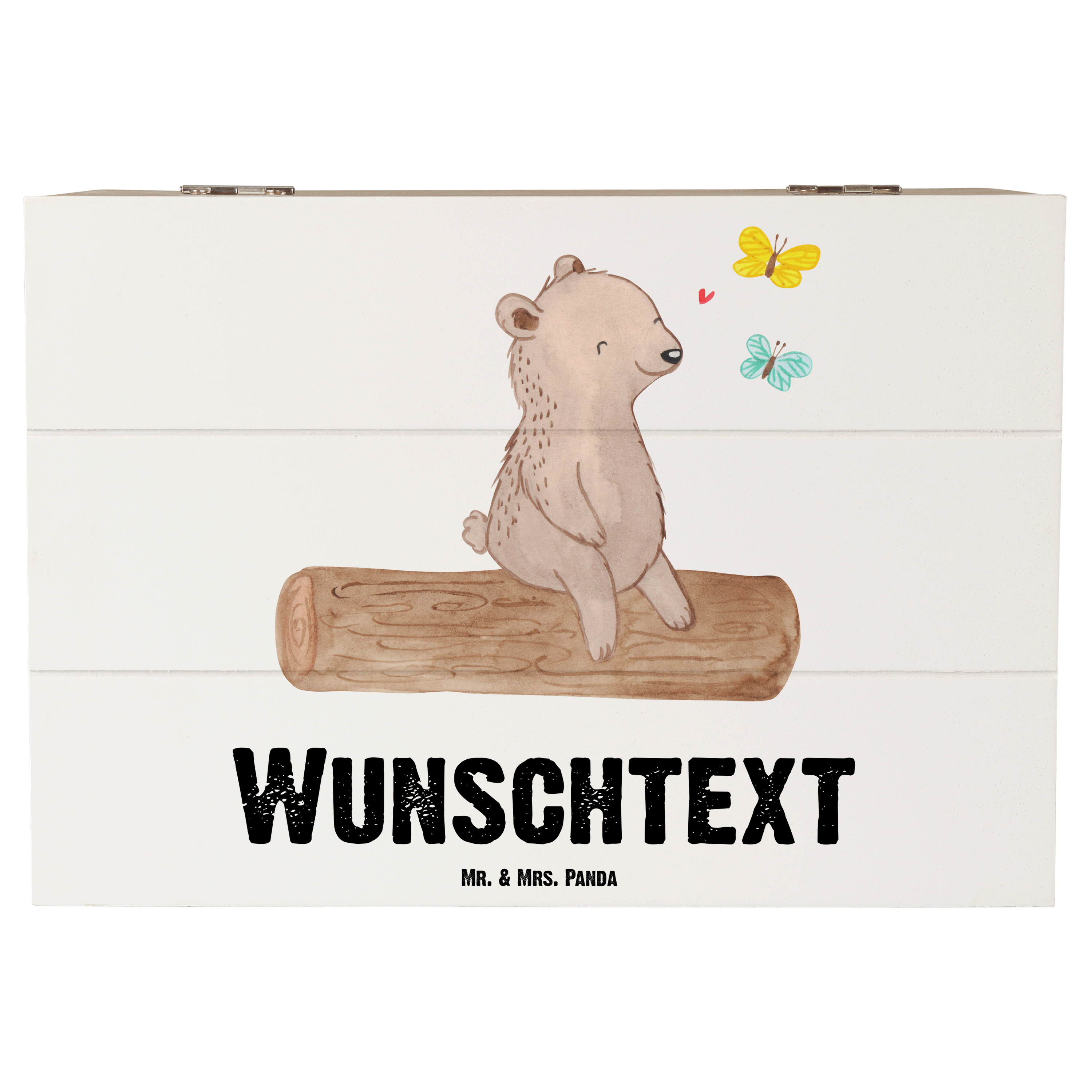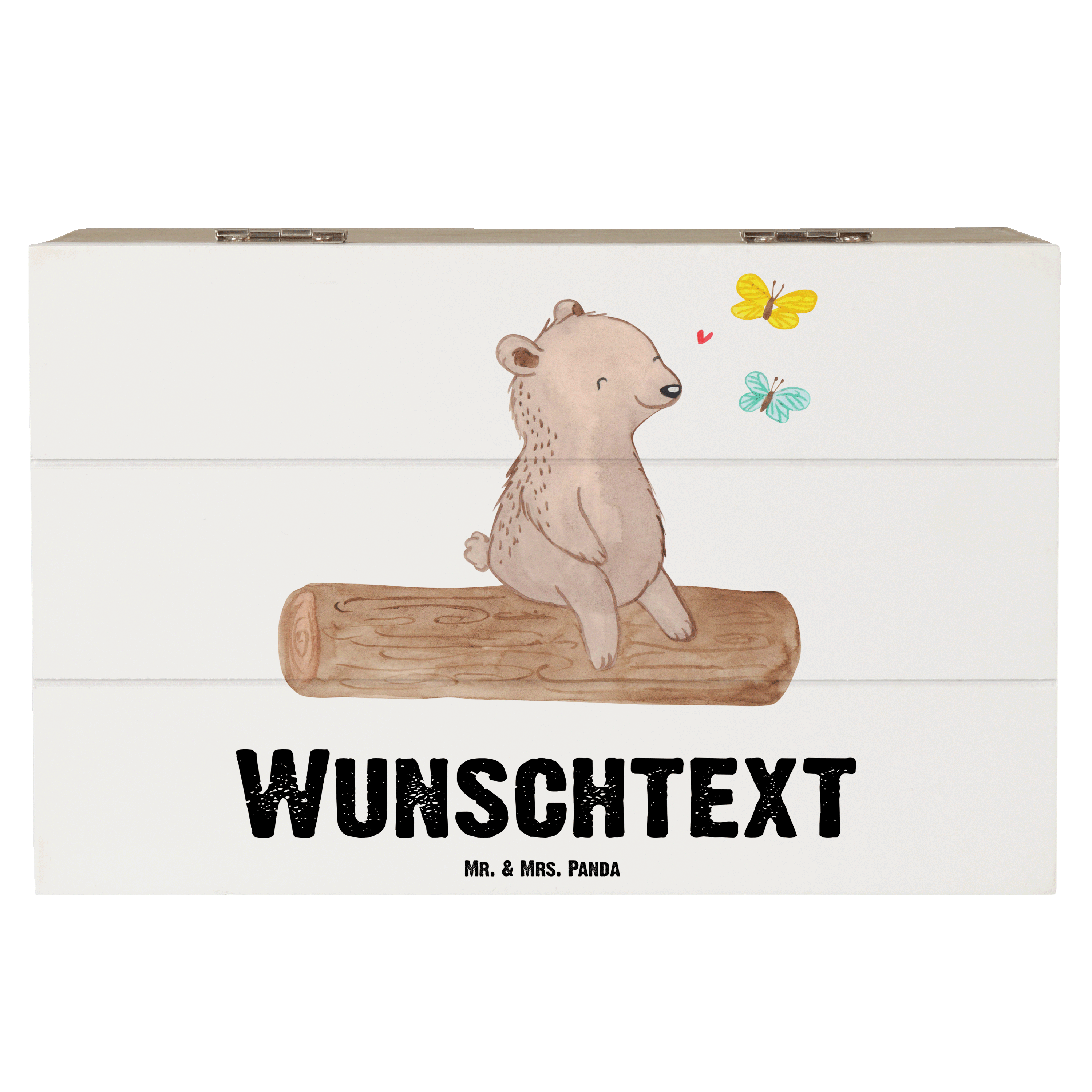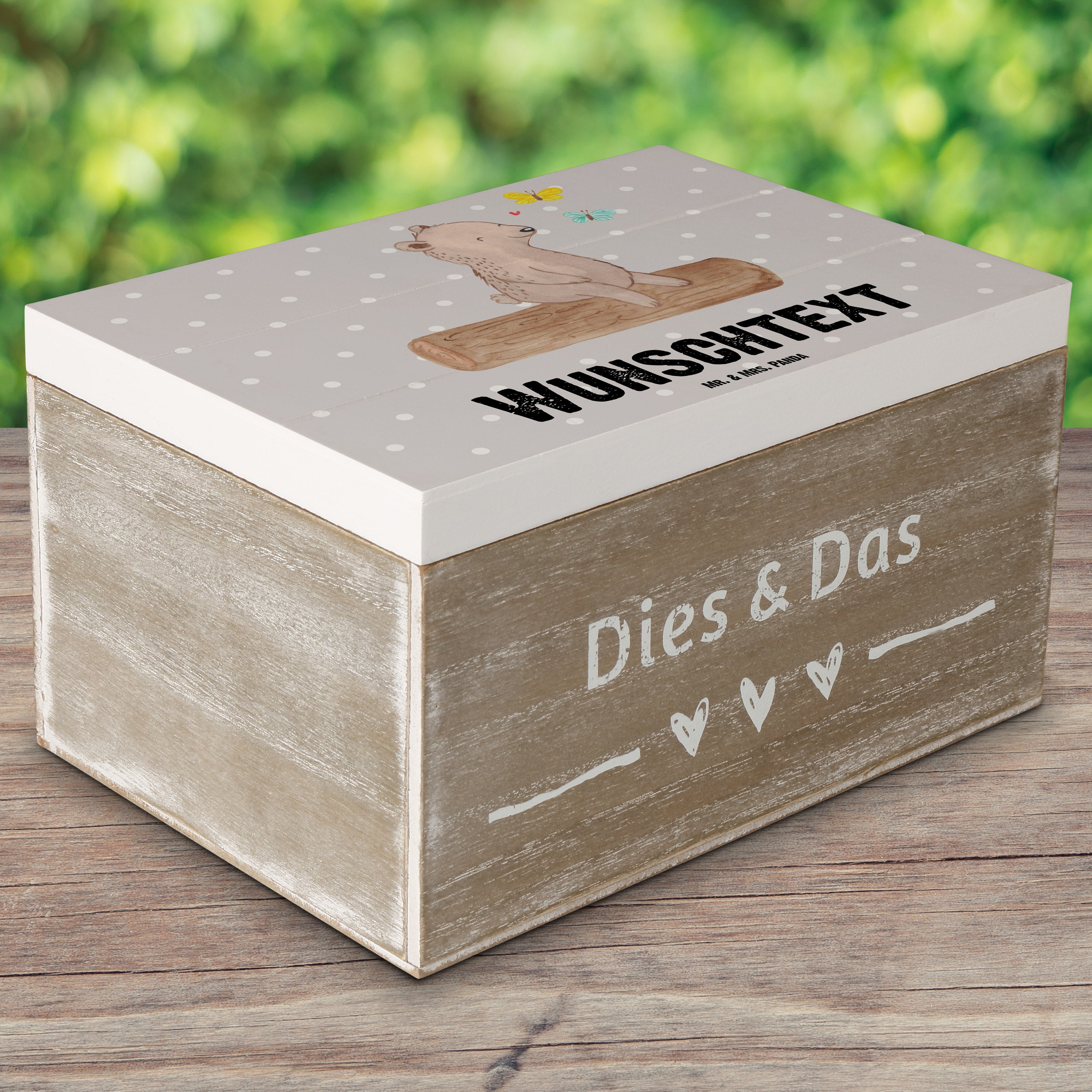 Personalisierte Holzkiste Bär Naturliebhaber Tage - Grau Pastell - 19 x 12 cm