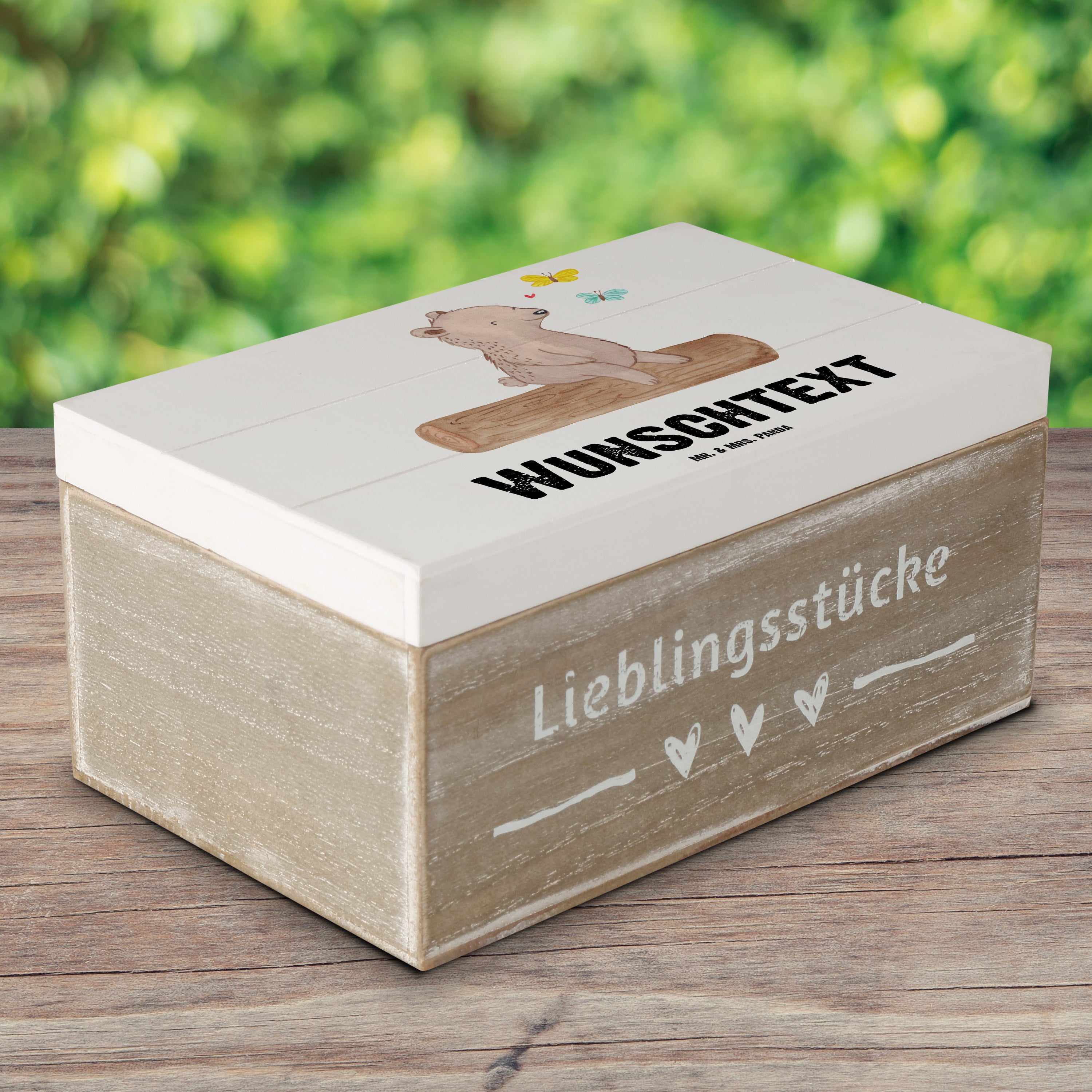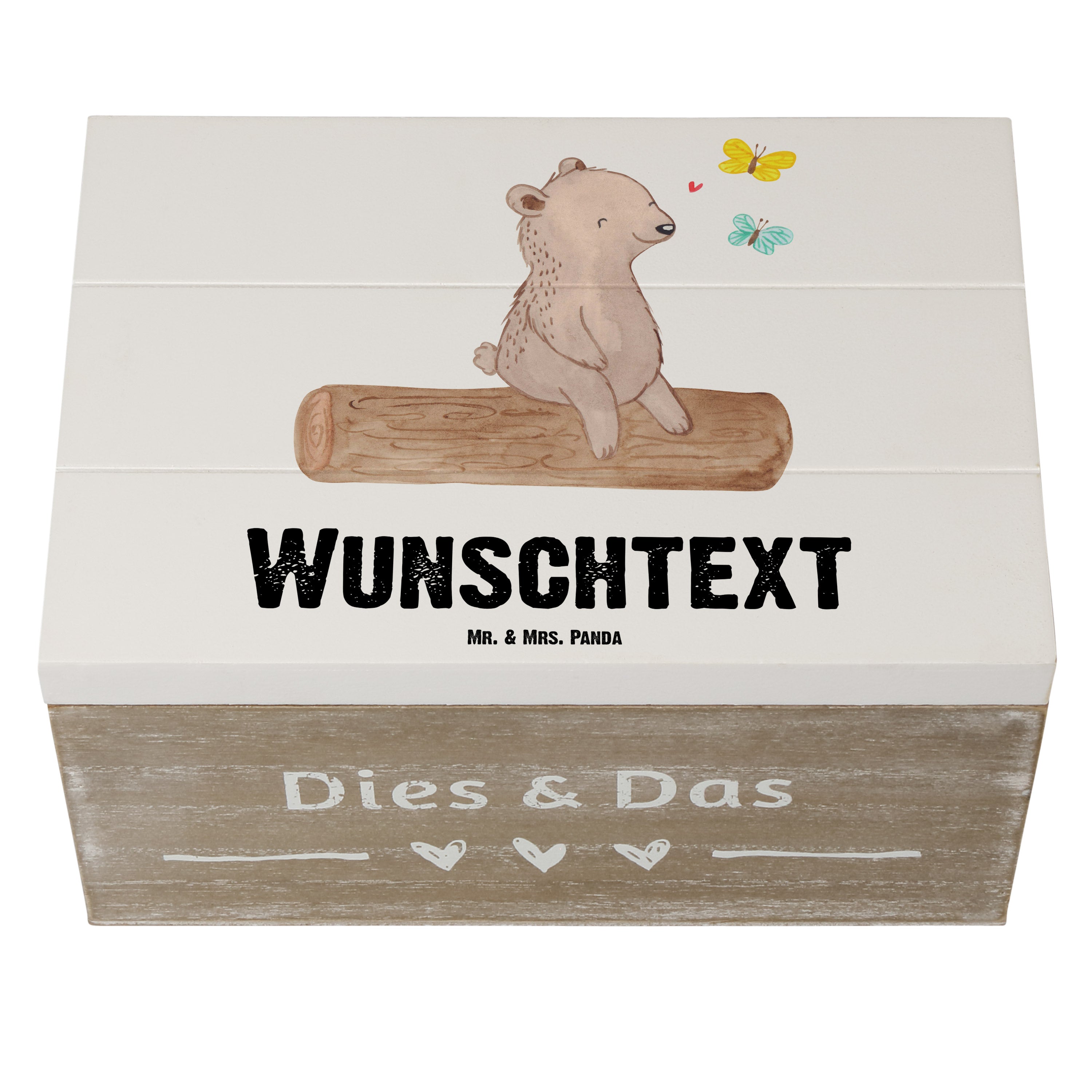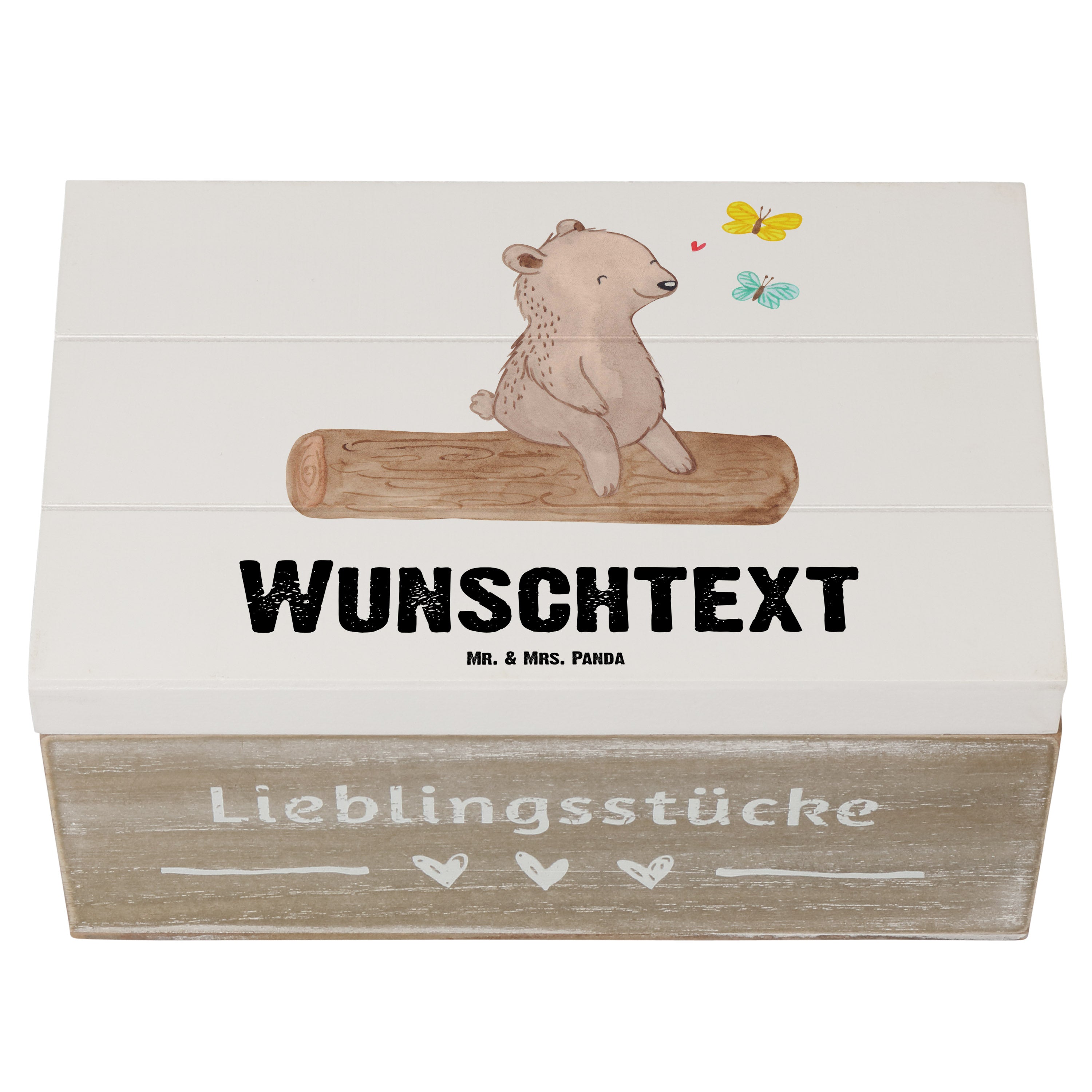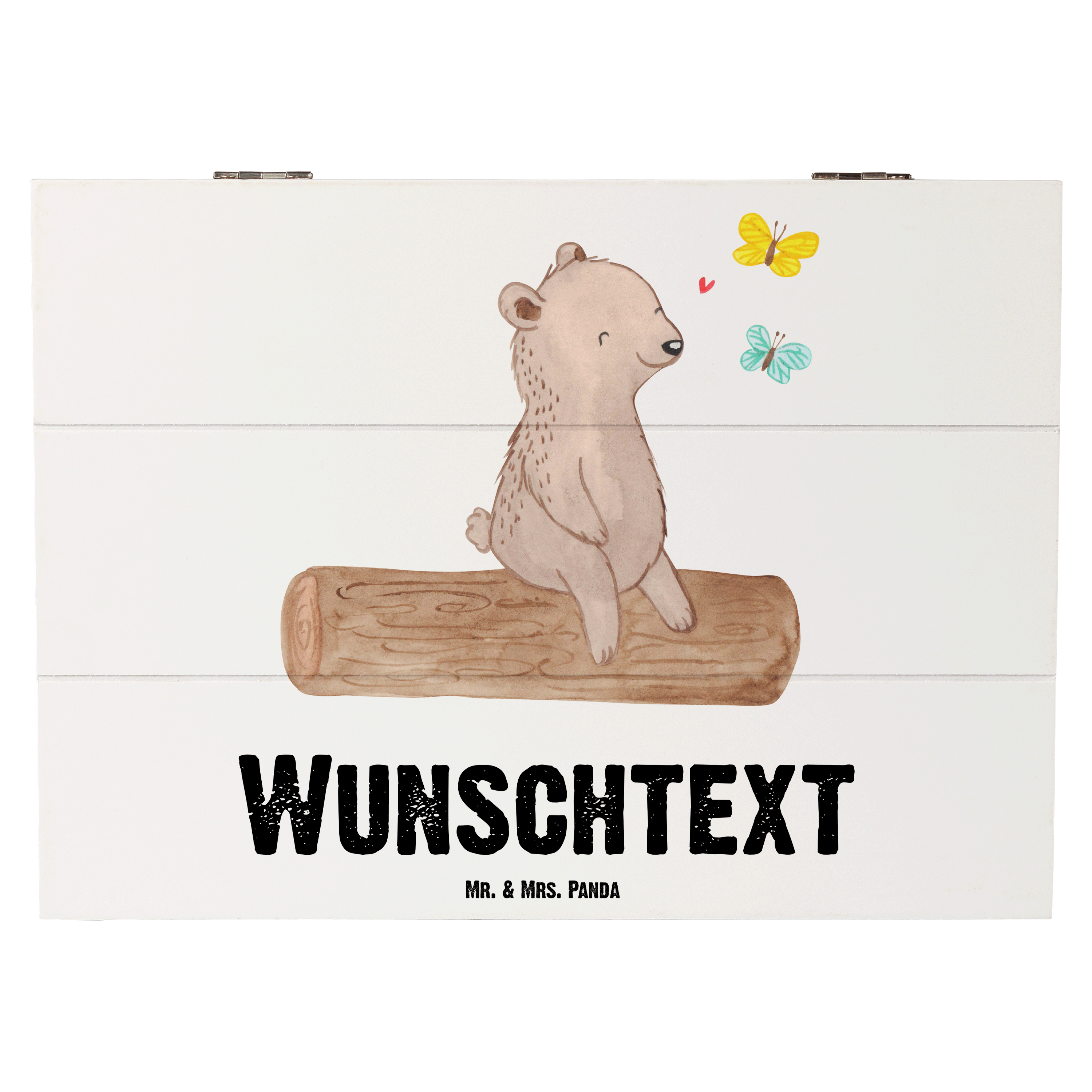 Personalisierte Holzkiste Bär Naturliebhaber Tage - Grau Pastell - 19 x 12 cm