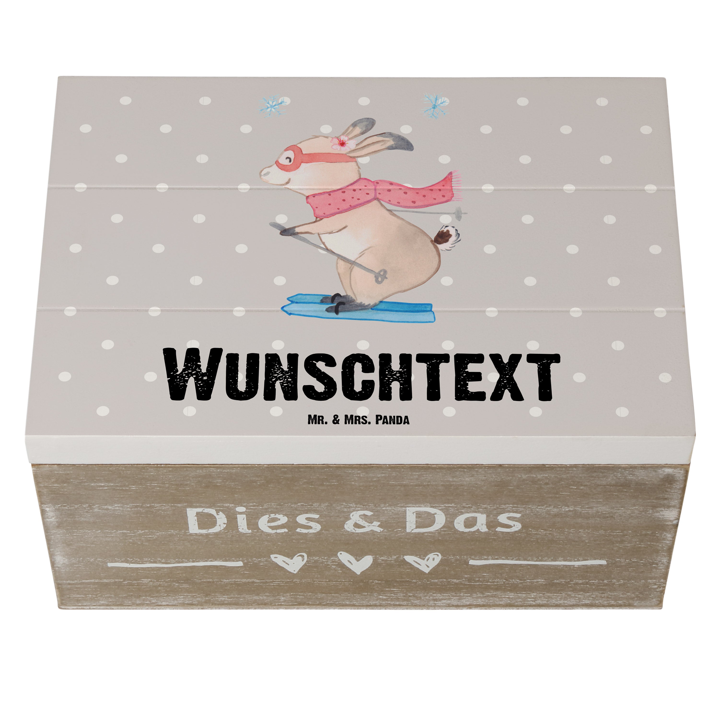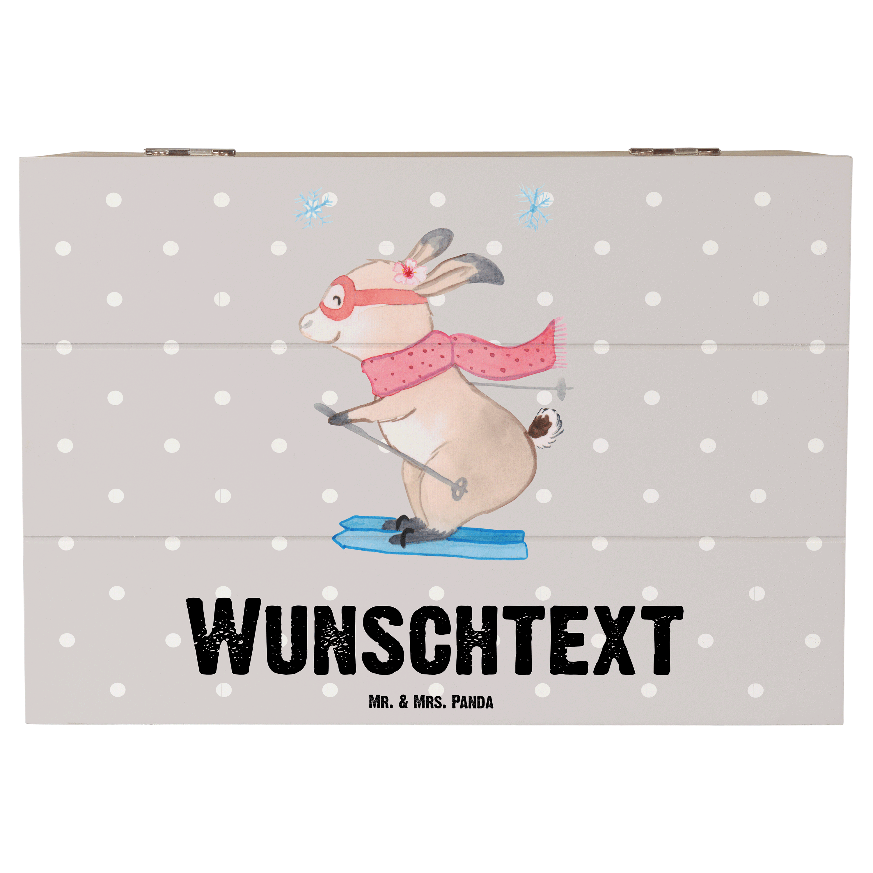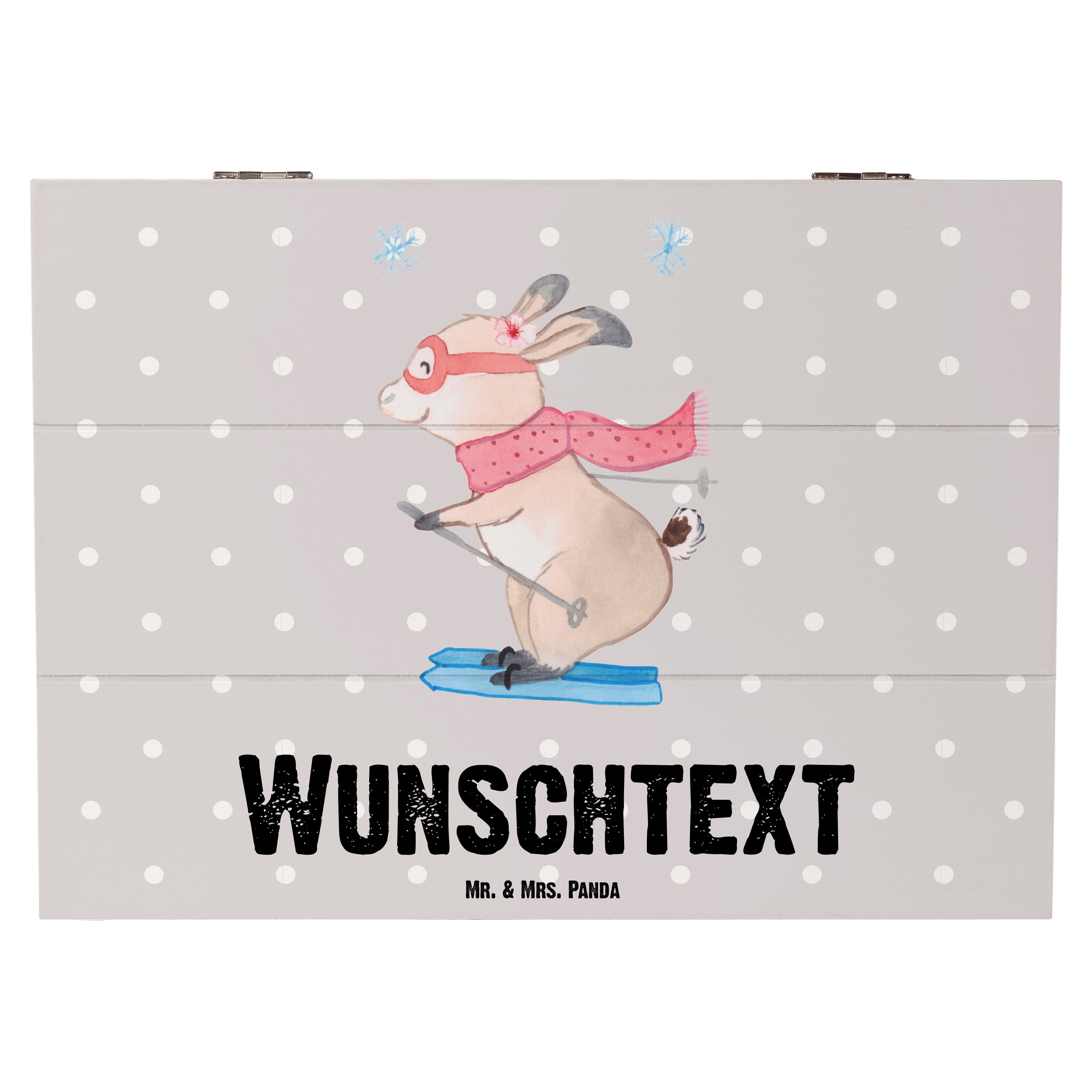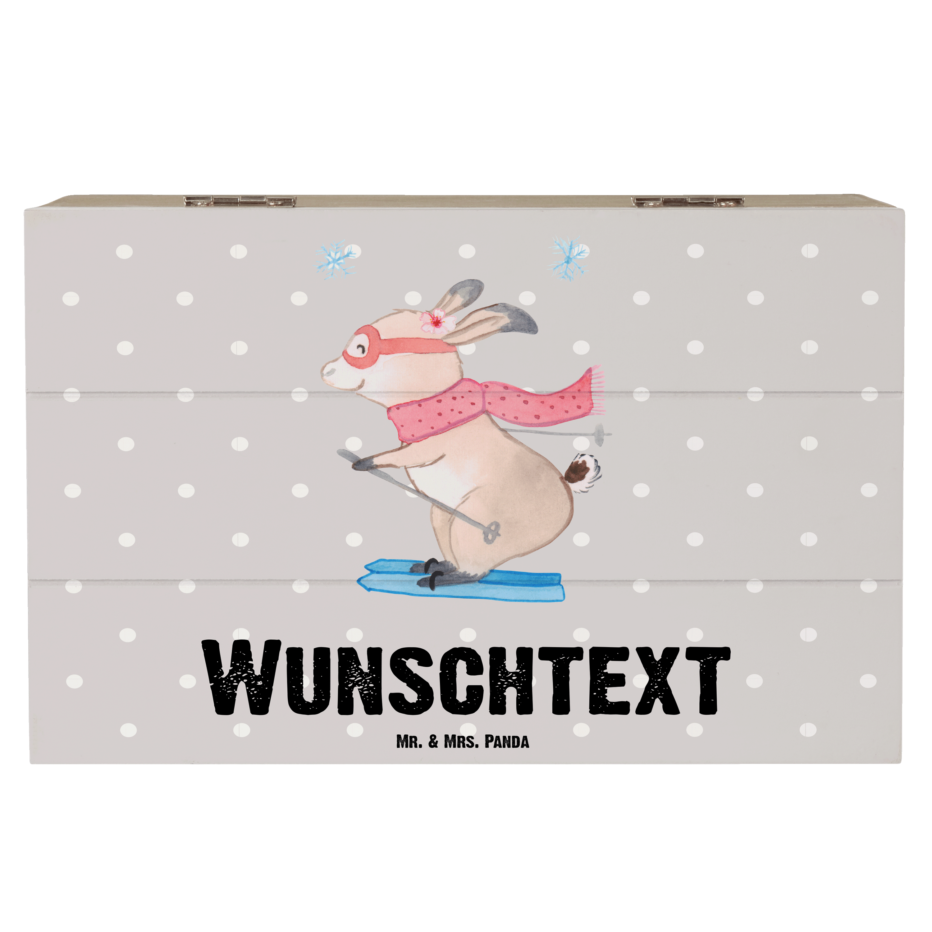 Personalisierte Holzkiste Bär Skifahren Tage - Grau Pastell - 19 x 12 cm