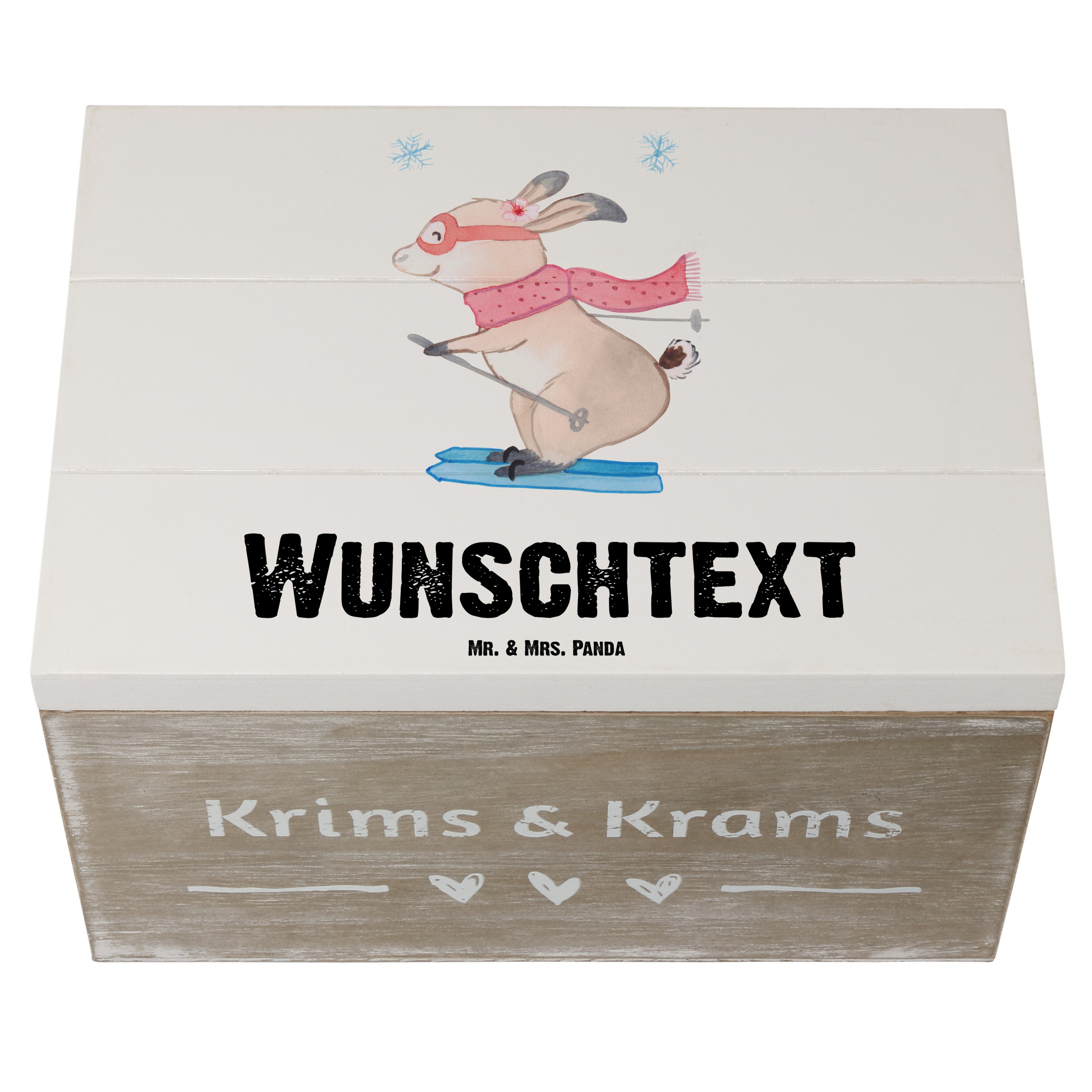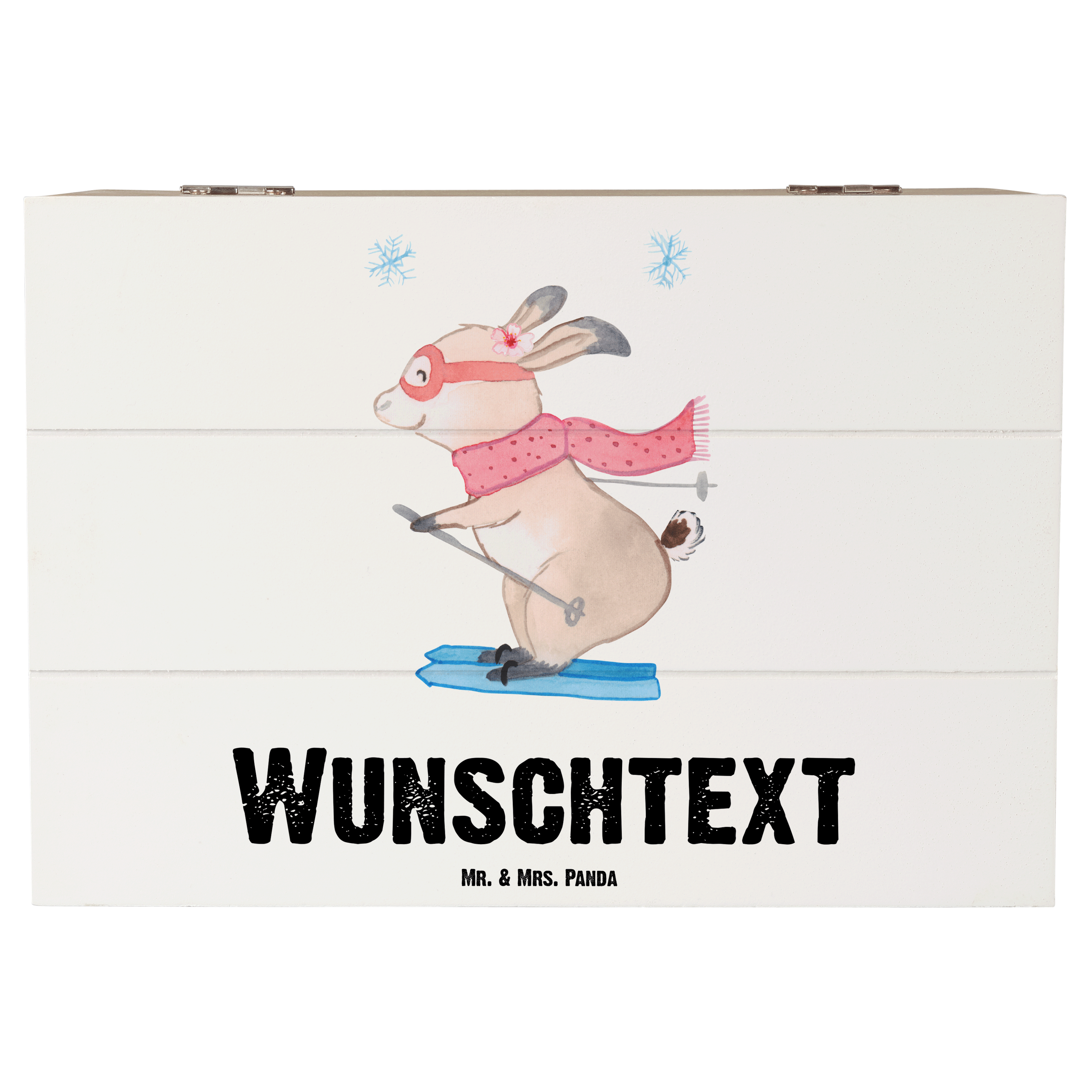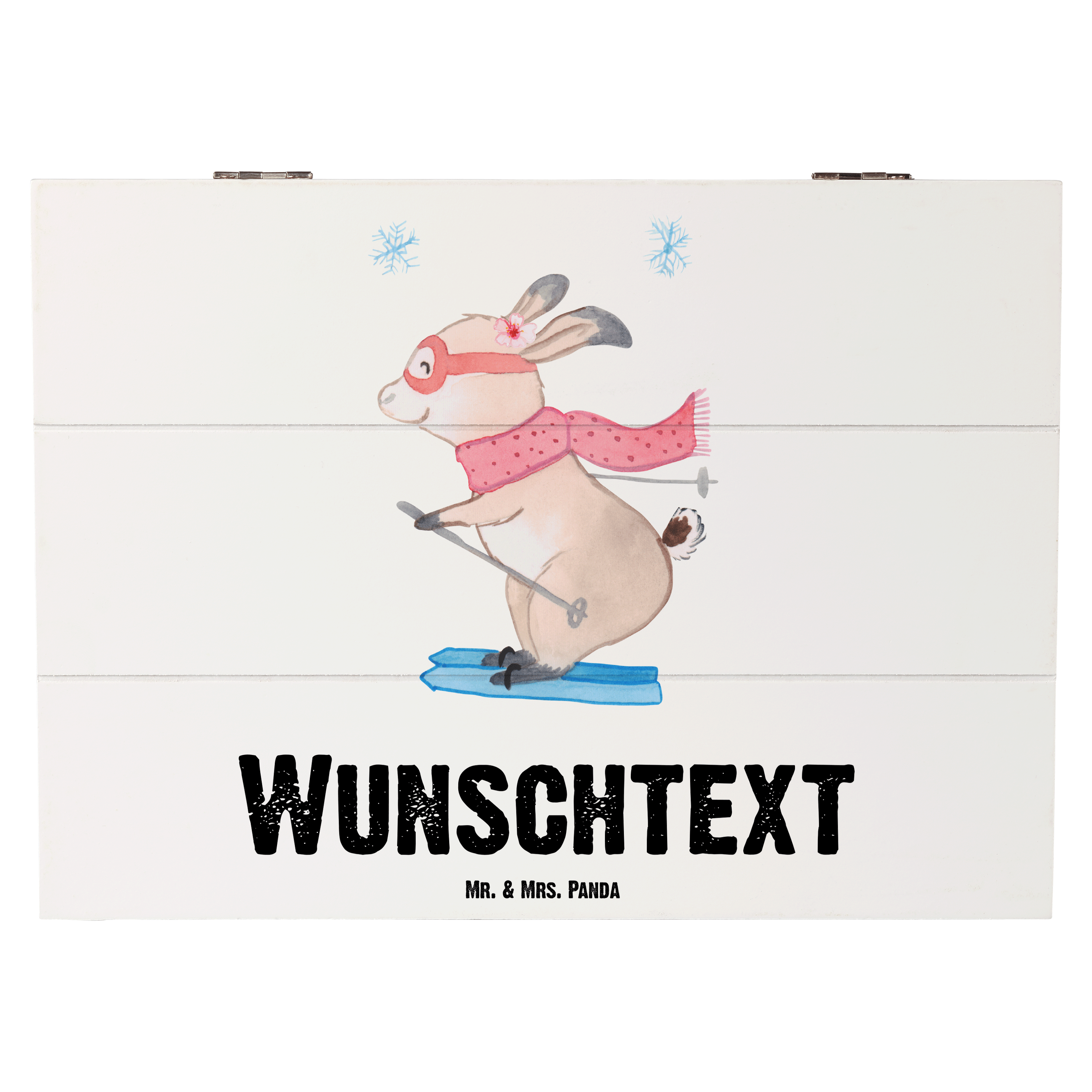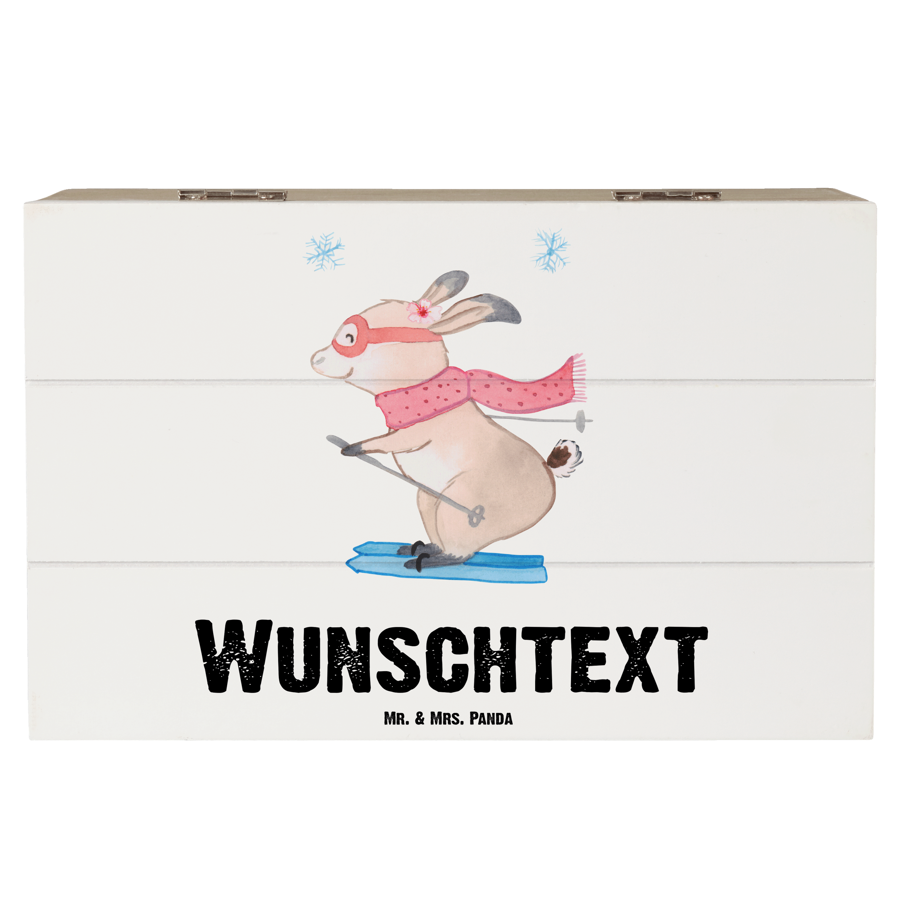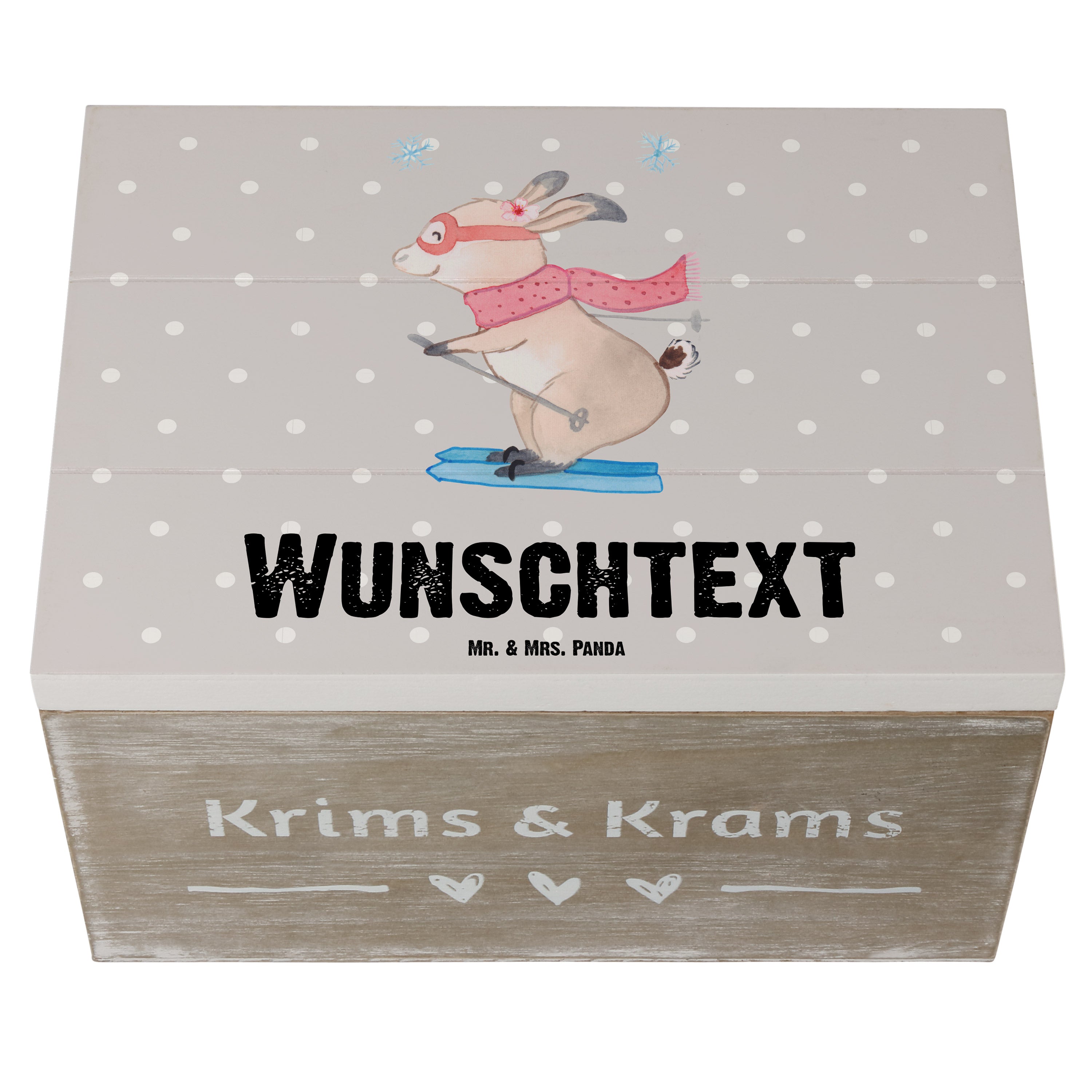 Personalisierte Holzkiste Bär Skifahren Tage - Grau Pastell - 19 x 12 cm
