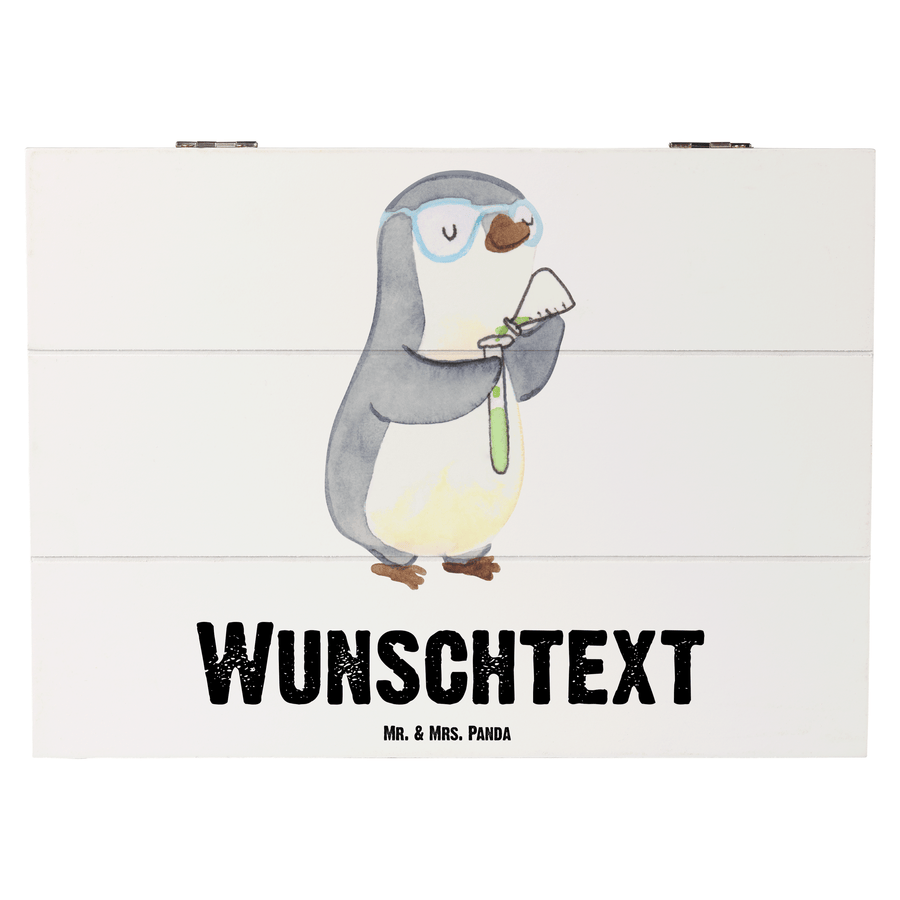 Personalisierte Holzkiste Chemiker mit Herz - 25 x 18 cm - Weiß