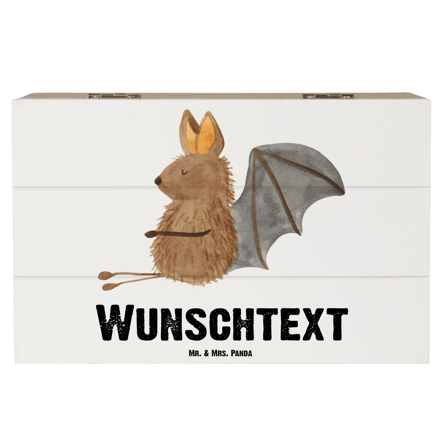 Personalisierte Holzkiste Fledermaus sitzend - Weiß - 19 x 12 cm