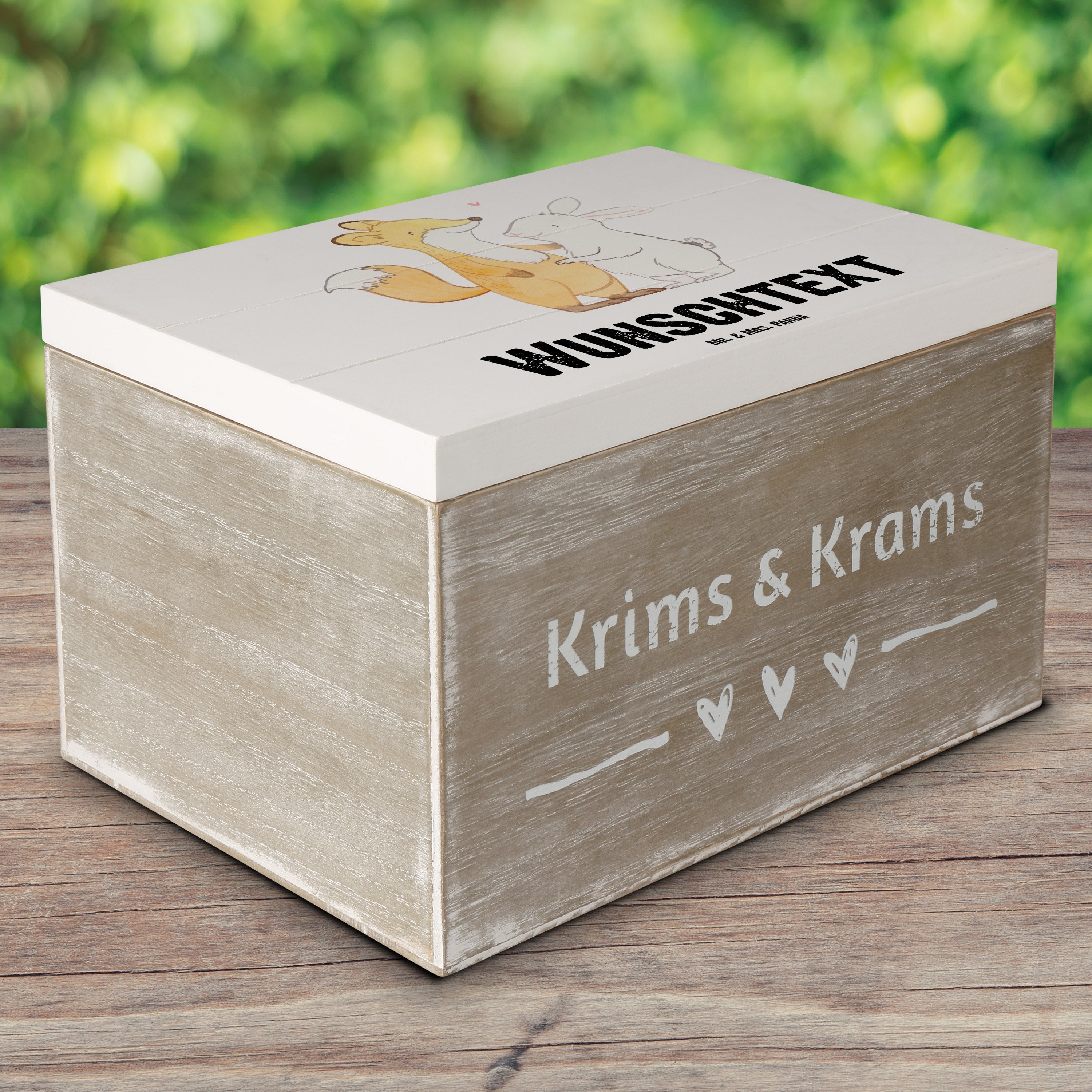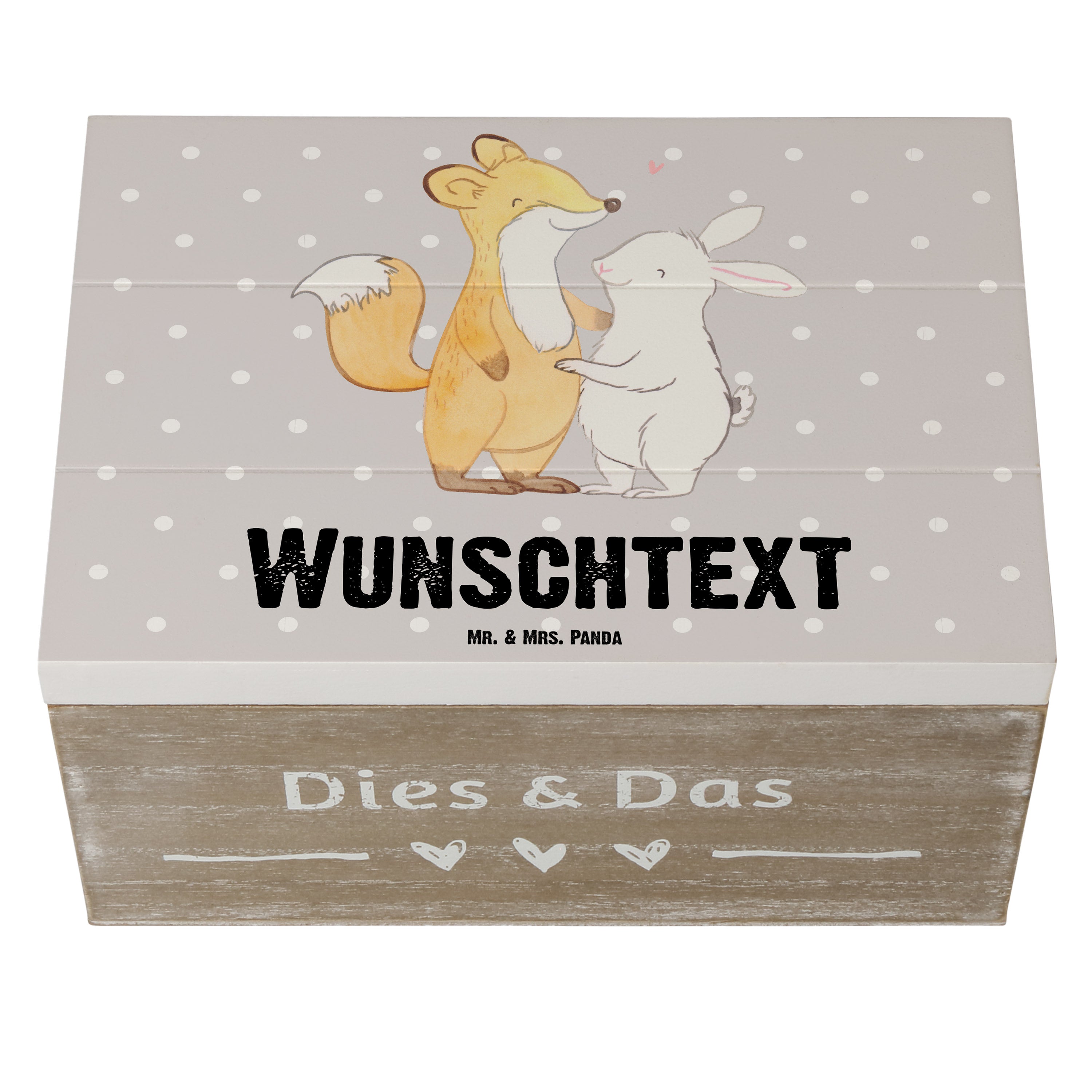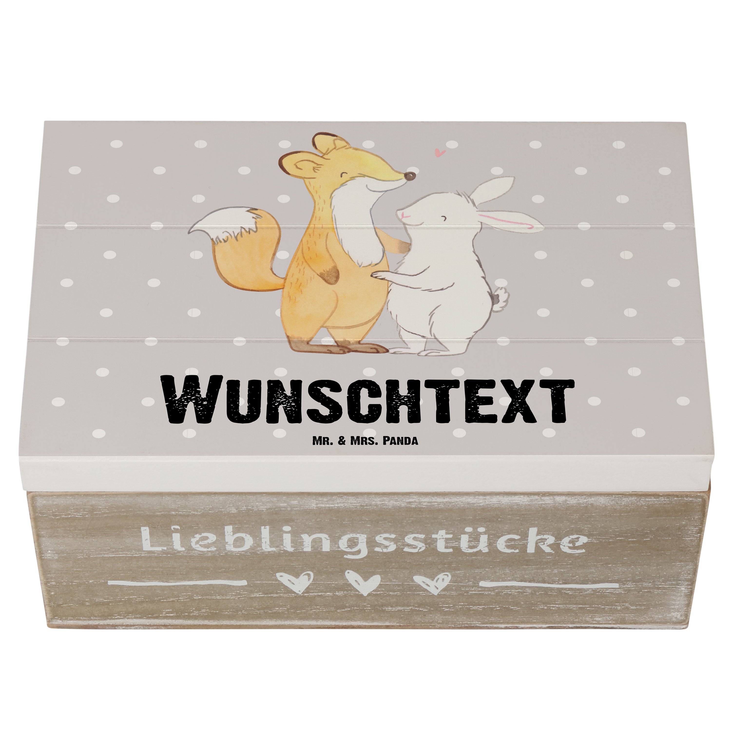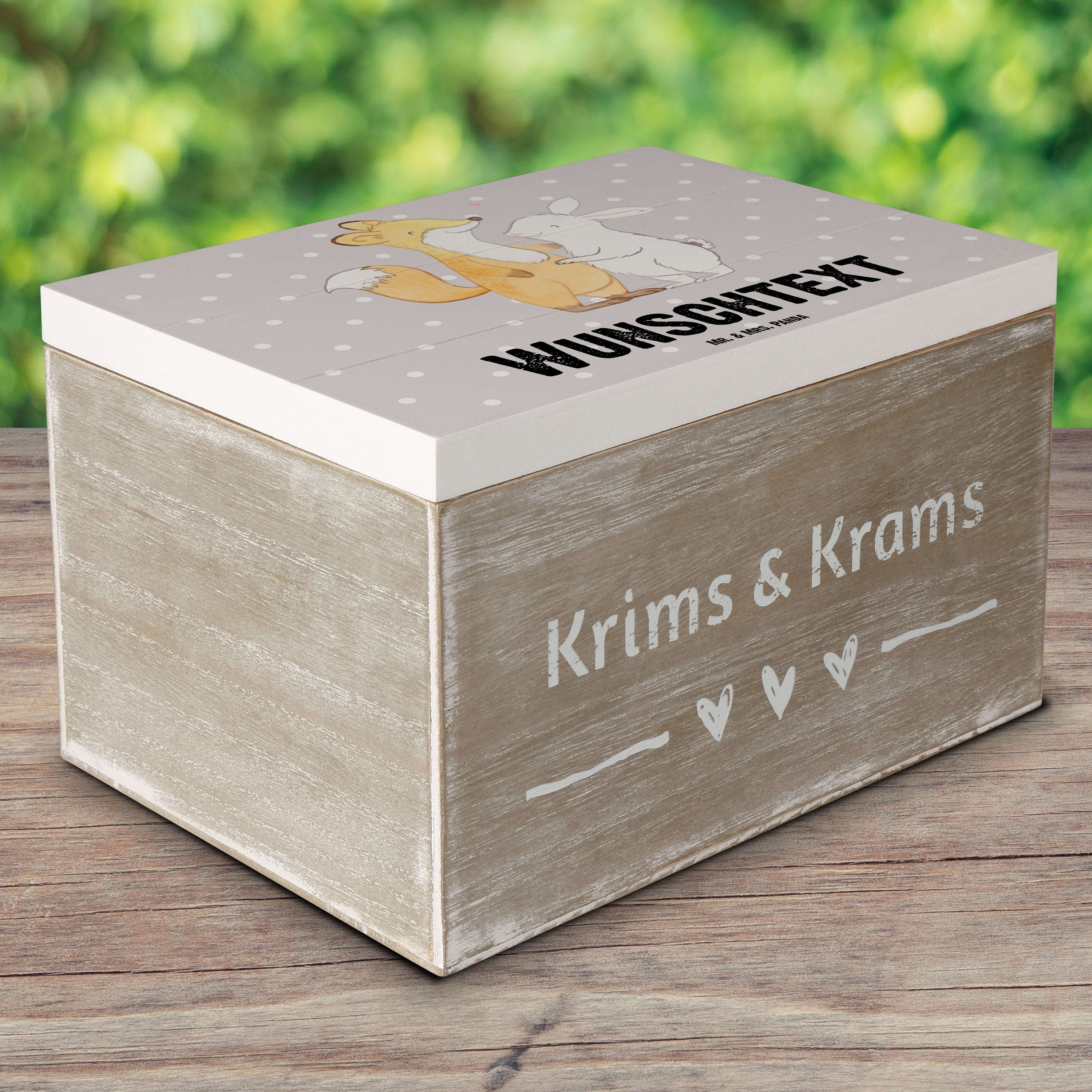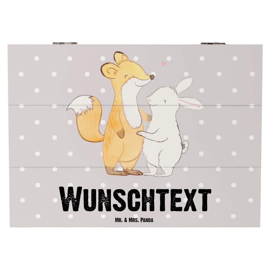 Personalisierte Holzkiste Fuchs Hase Freunde treffen Tage - 25 x 18 cm - Grau Pastell