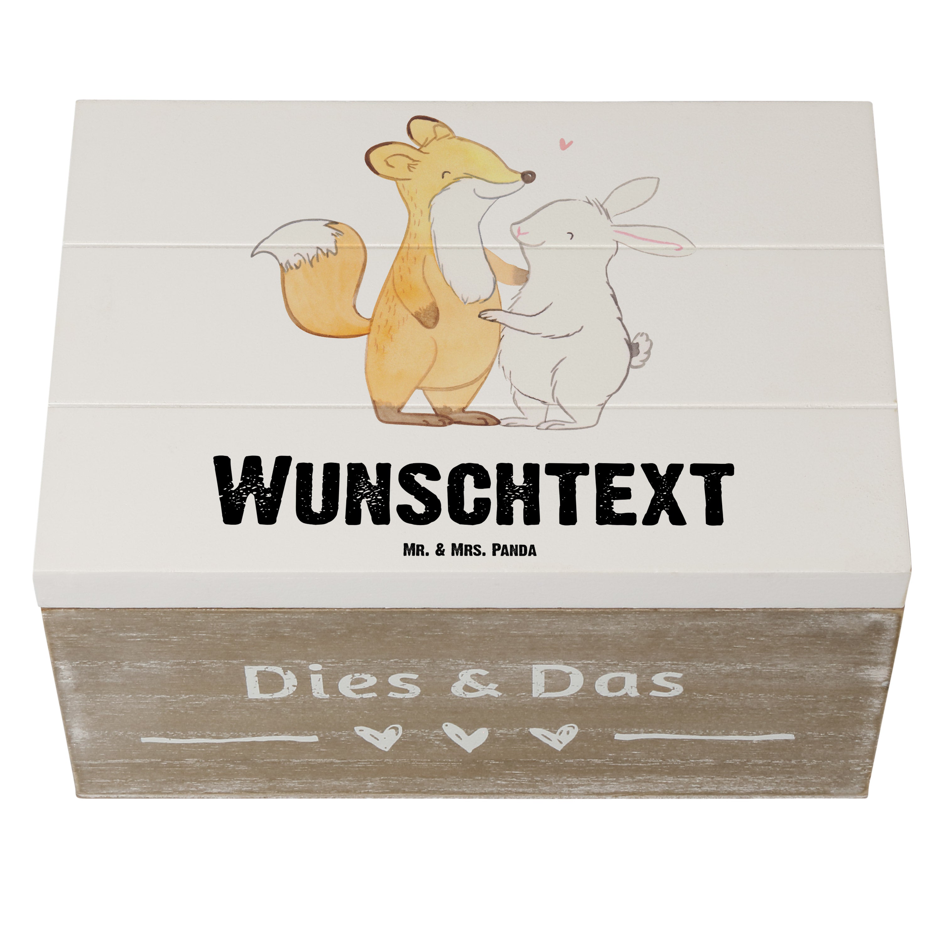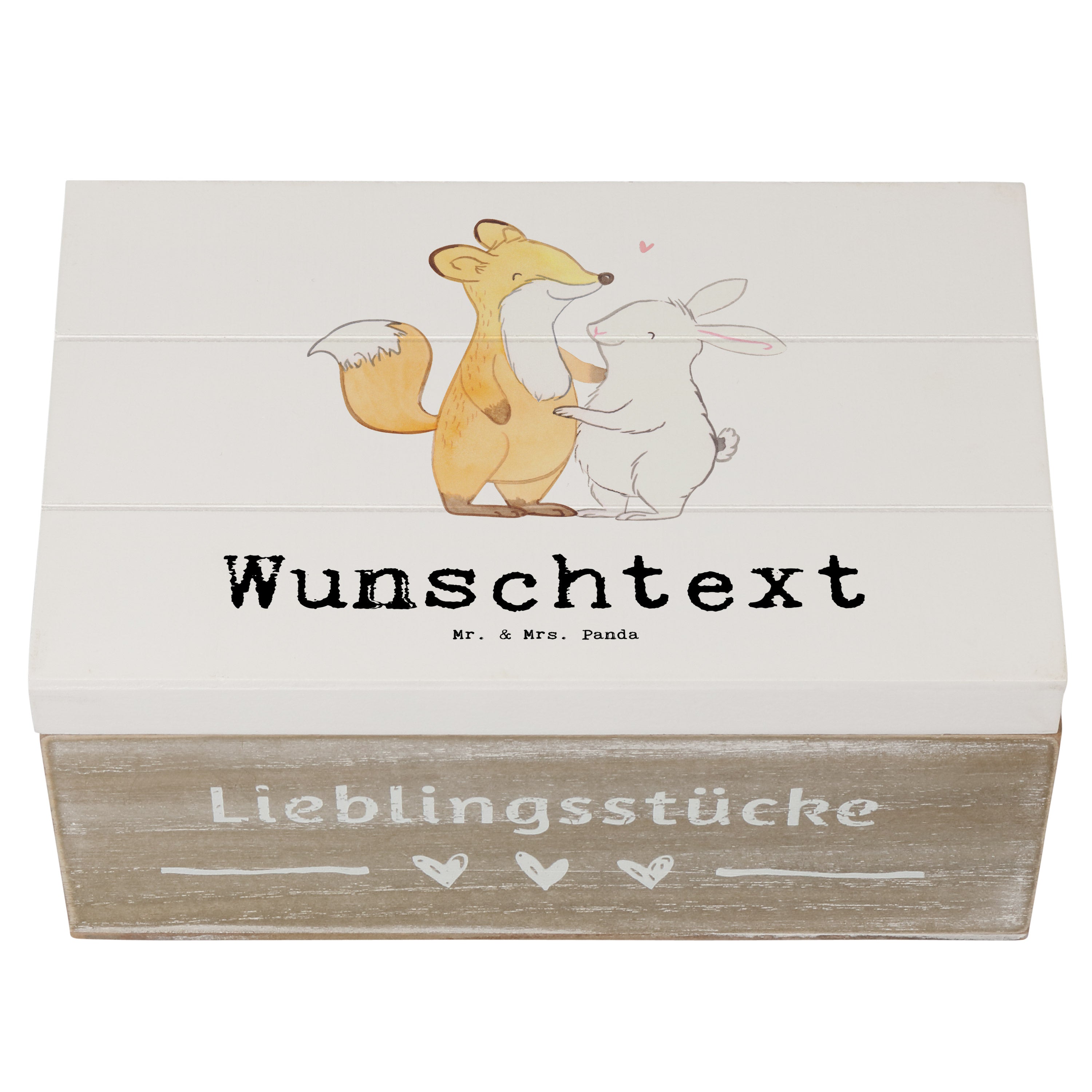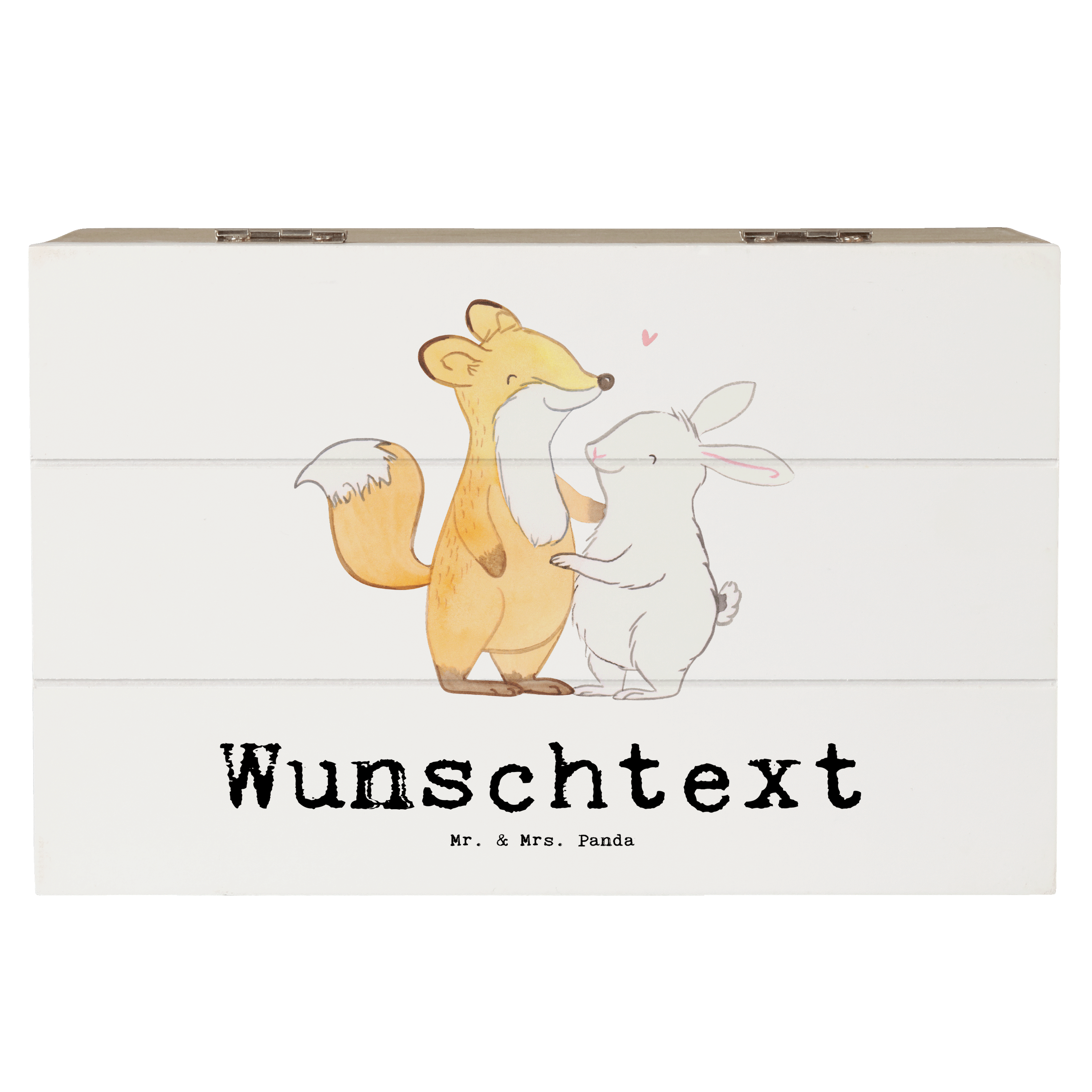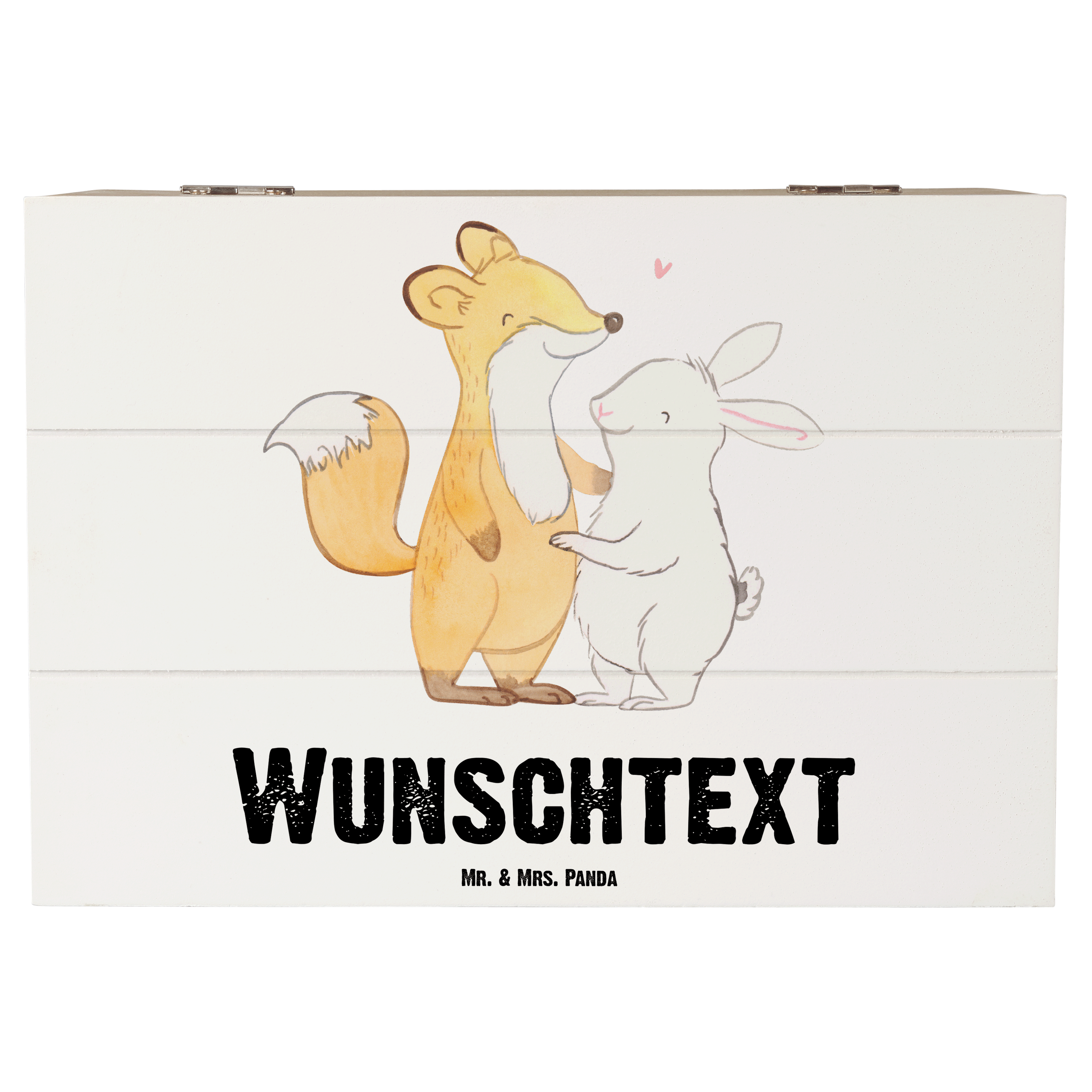 Personalisierte Holzkiste Fuchs Hase Freunde treffen Tage - 25 x 18 cm - Grau Pastell