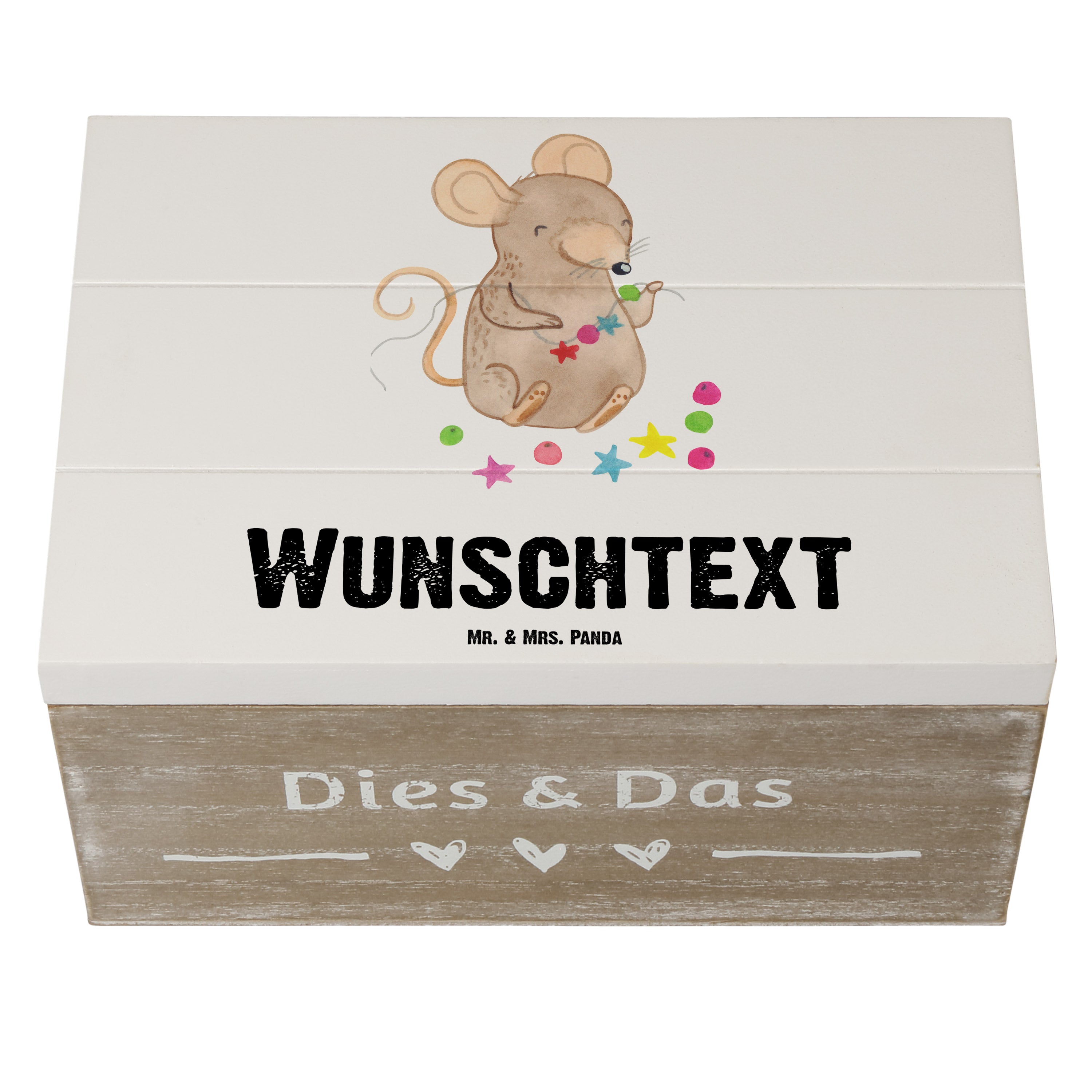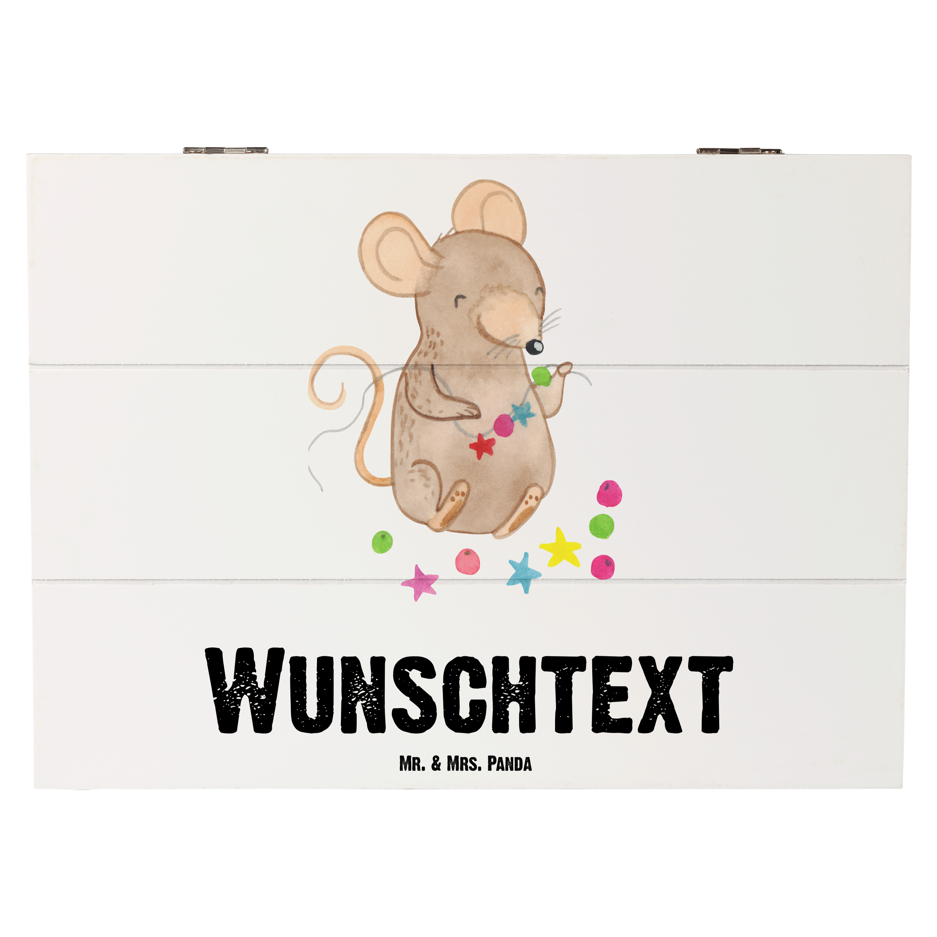 Personalisierte Holzkiste Maus Schmuck selber machen Tage - Weiß - 25x18cm Personalisierte Holzkiste