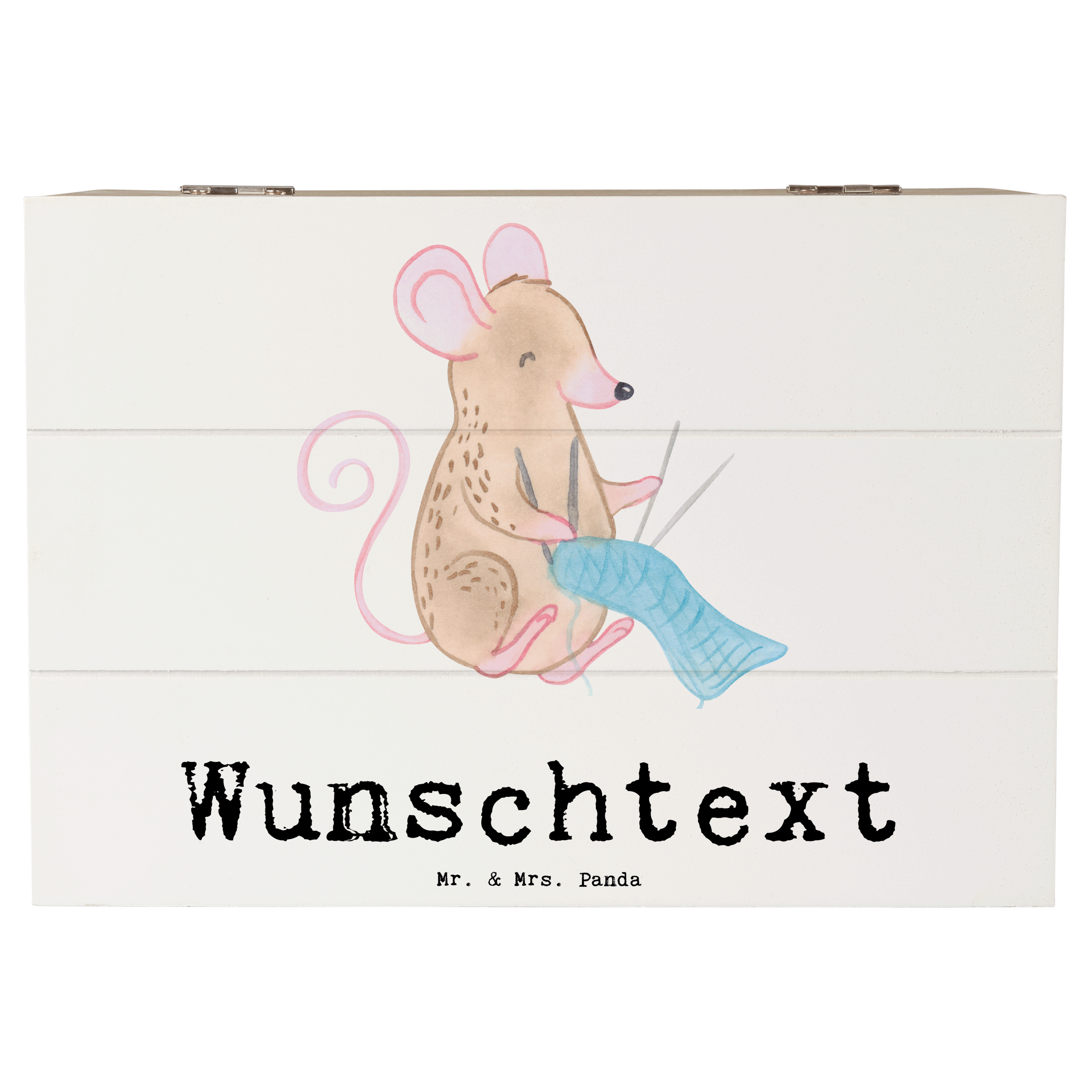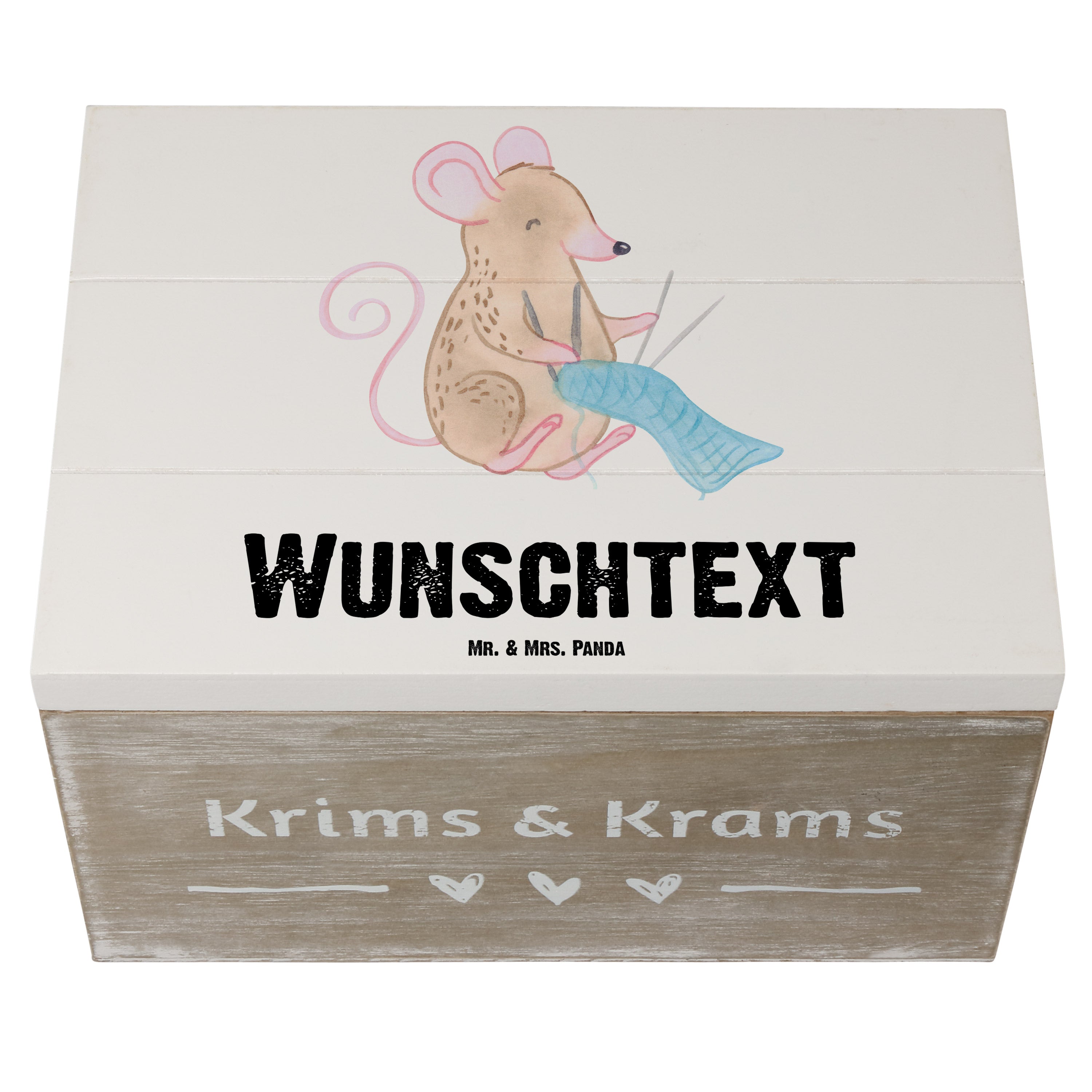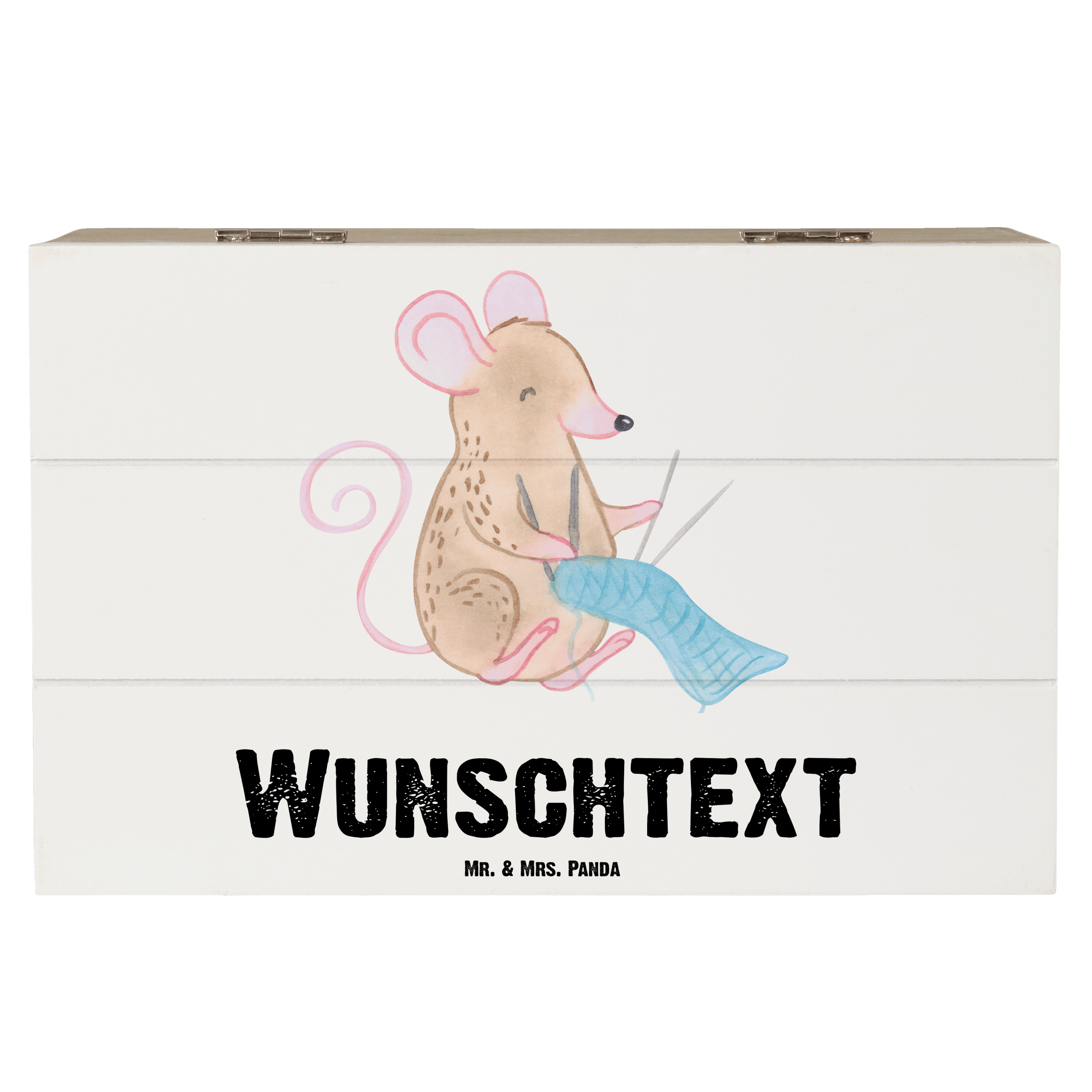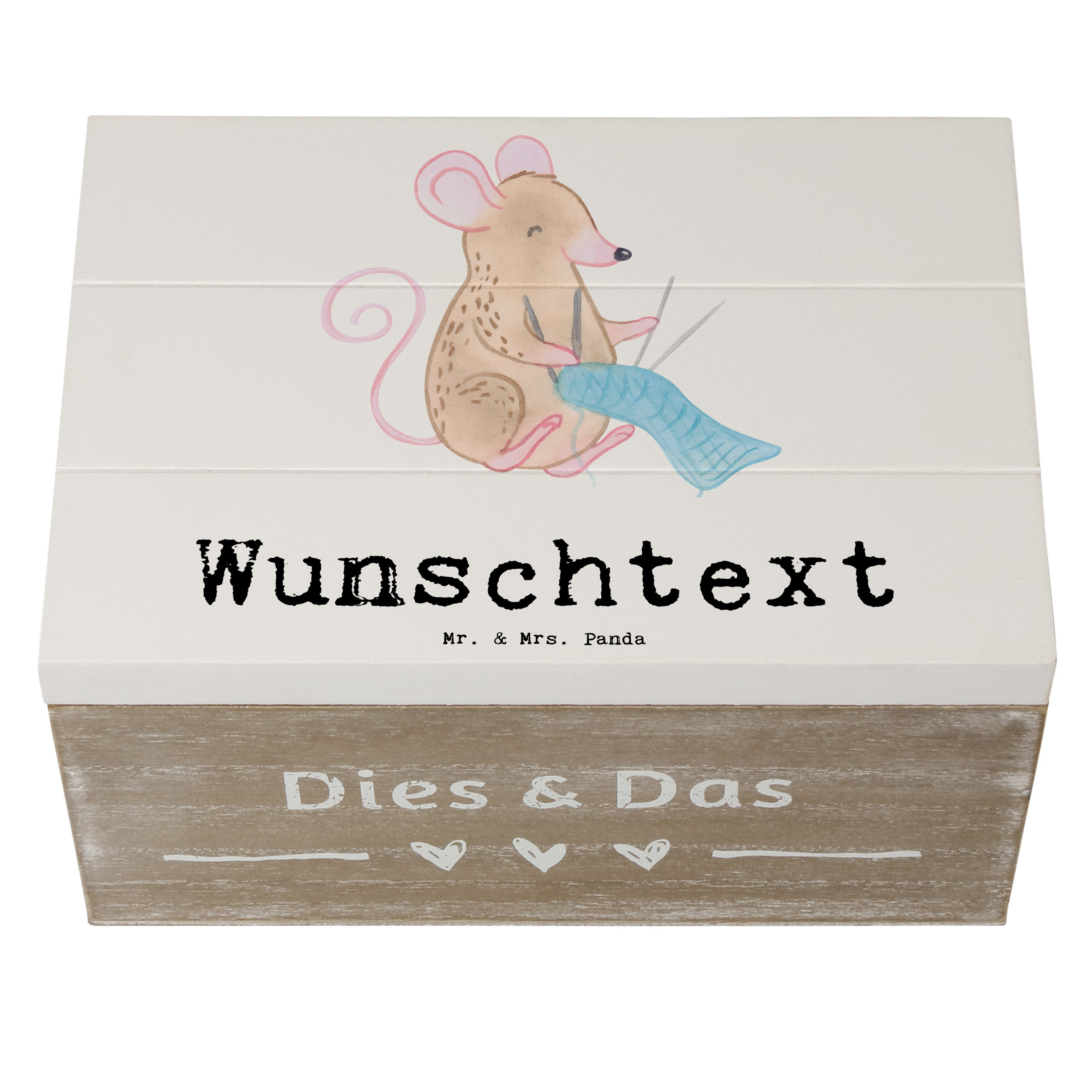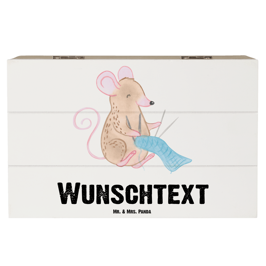 Personalisierte Holzkiste Maus Stricken Tage - Weiß - 19 x 12 cm