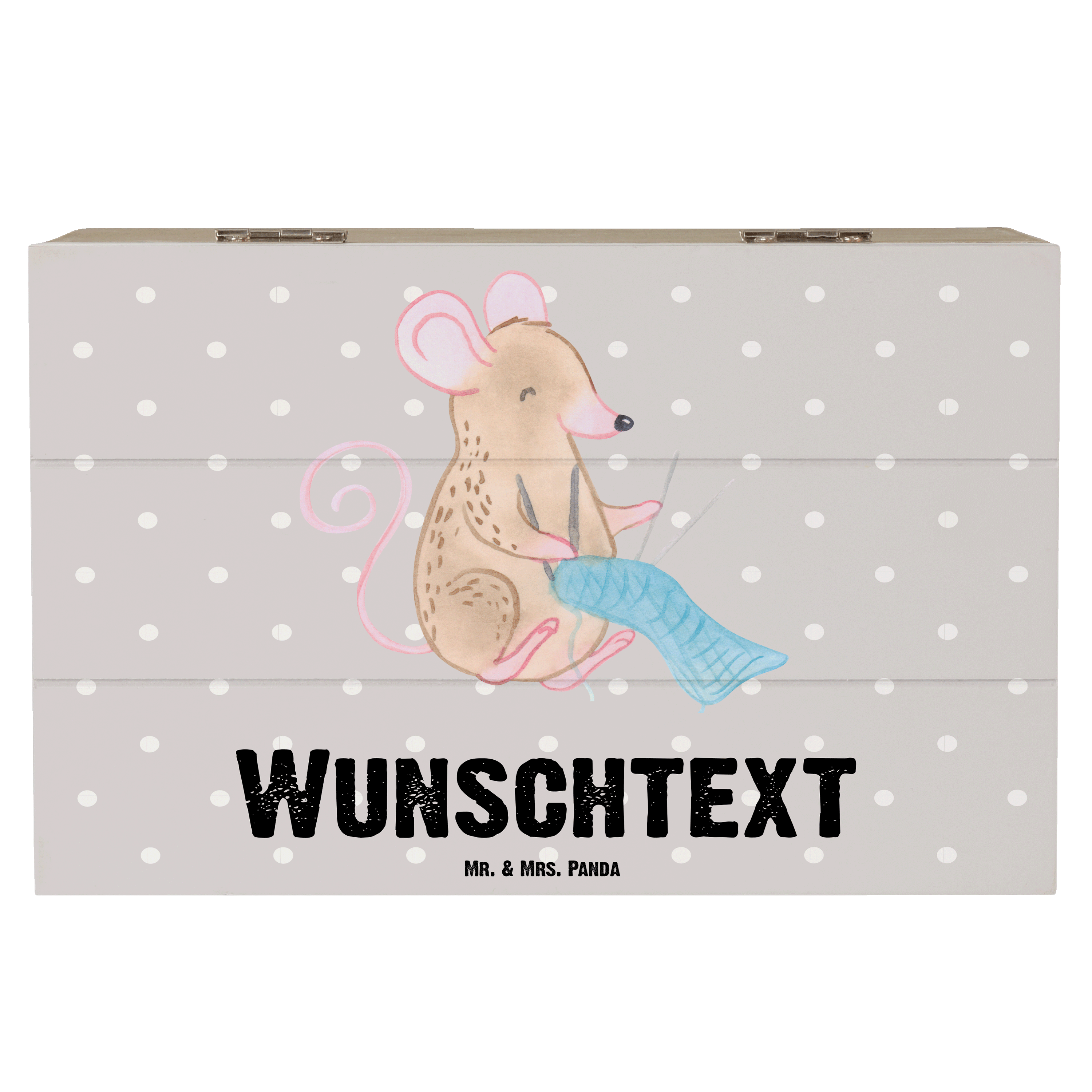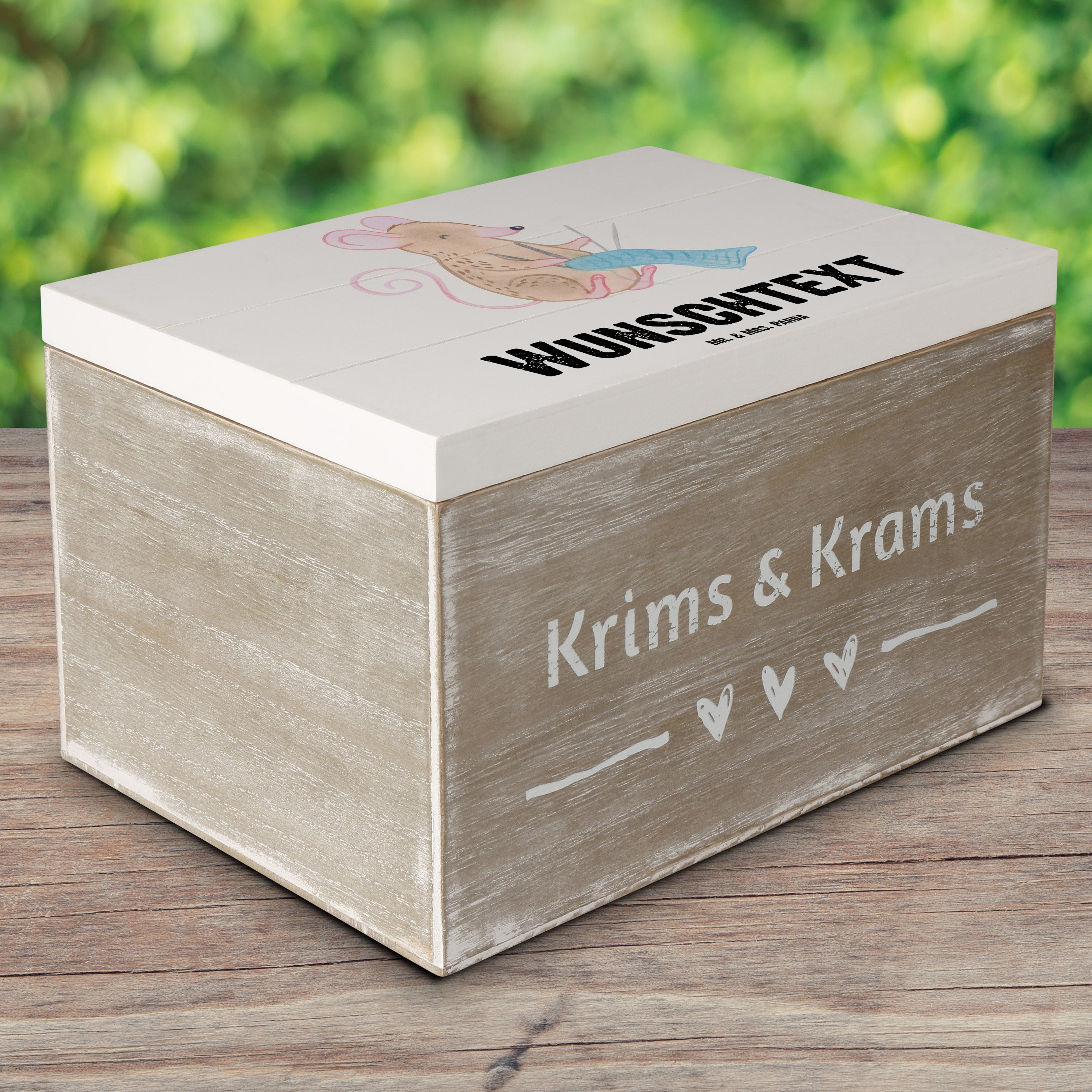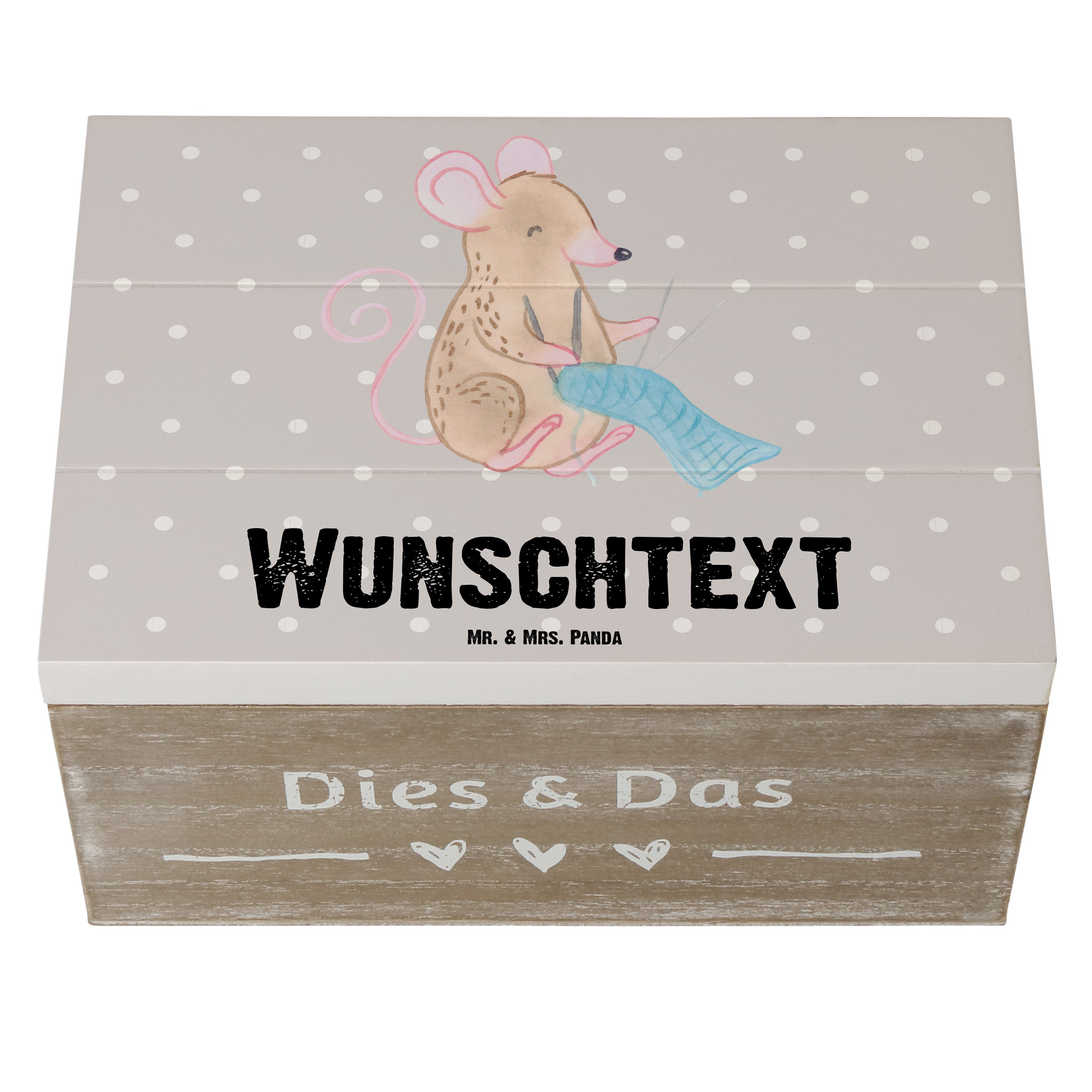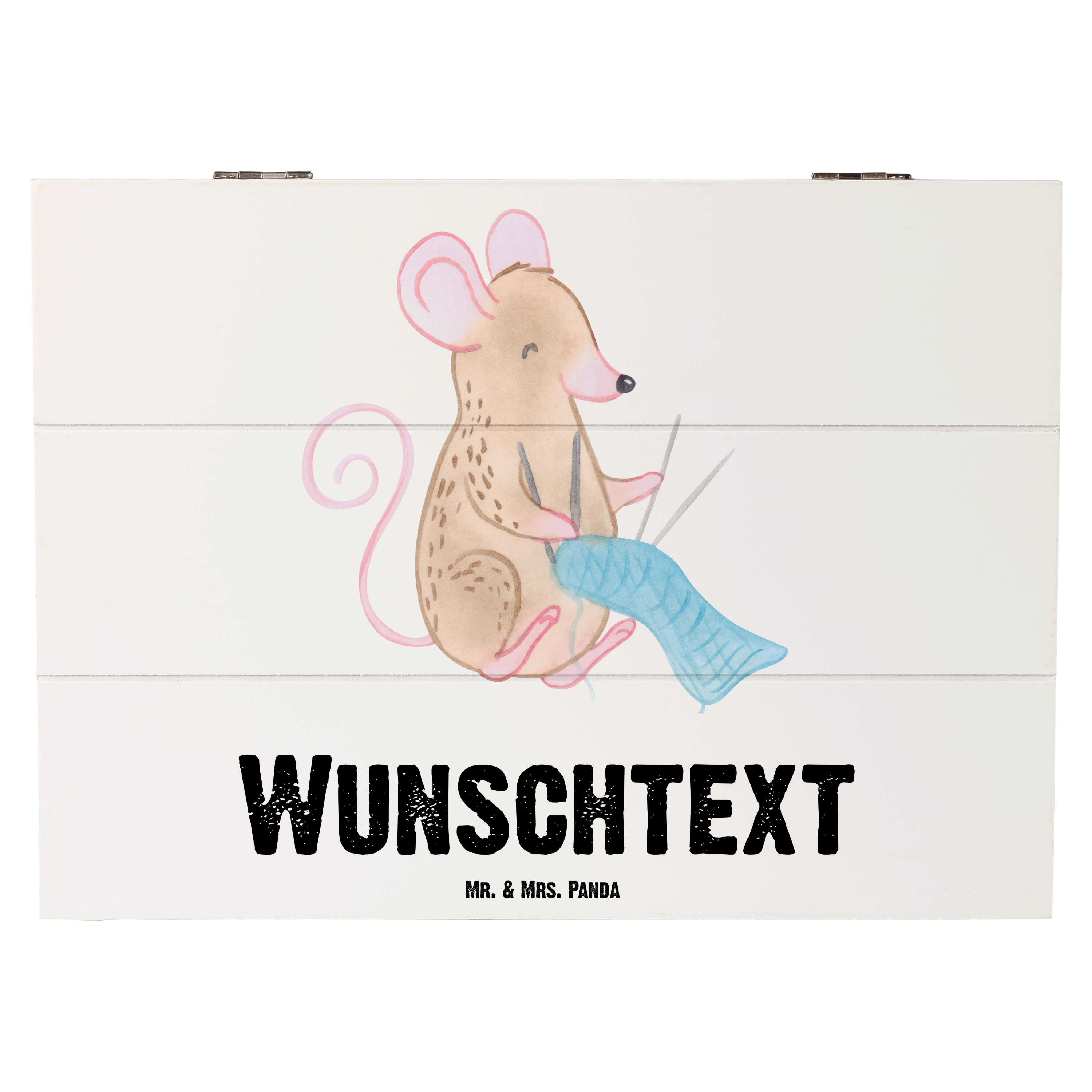 Personalisierte Holzkiste Maus Stricken Tage - Weiß - 19 x 12 cm