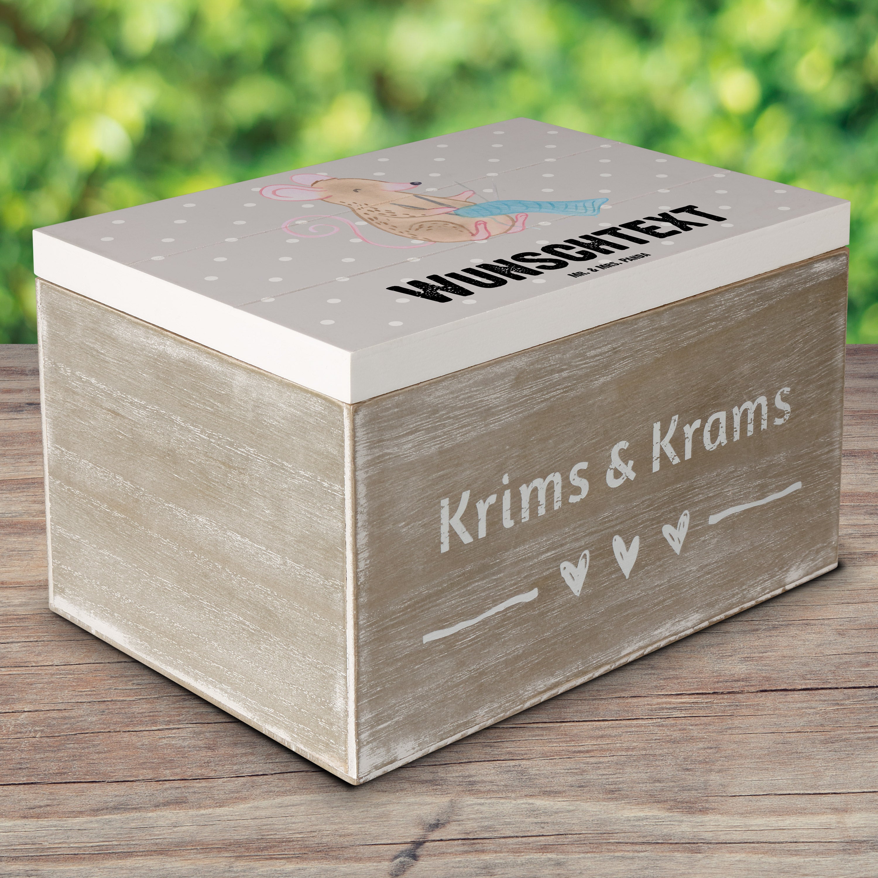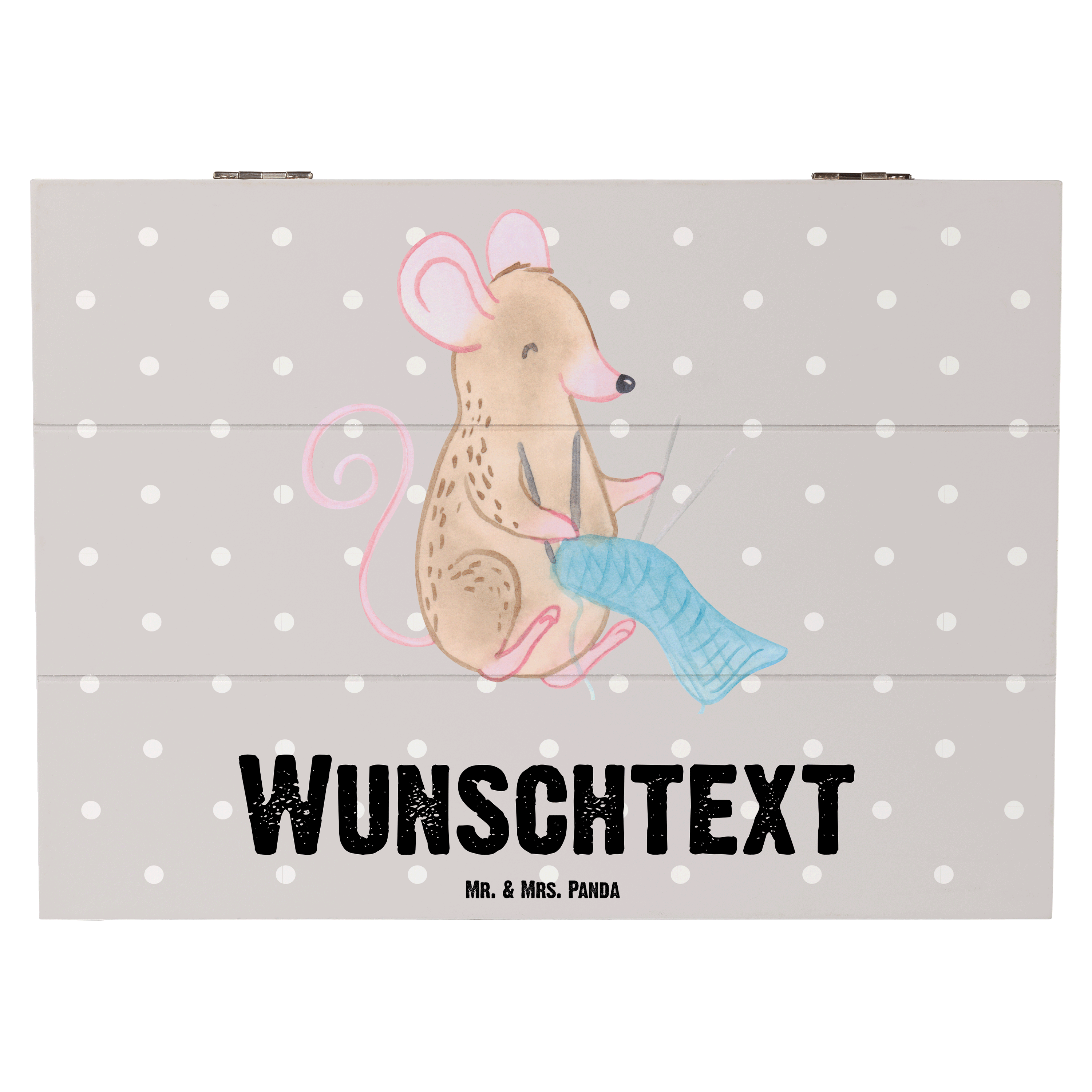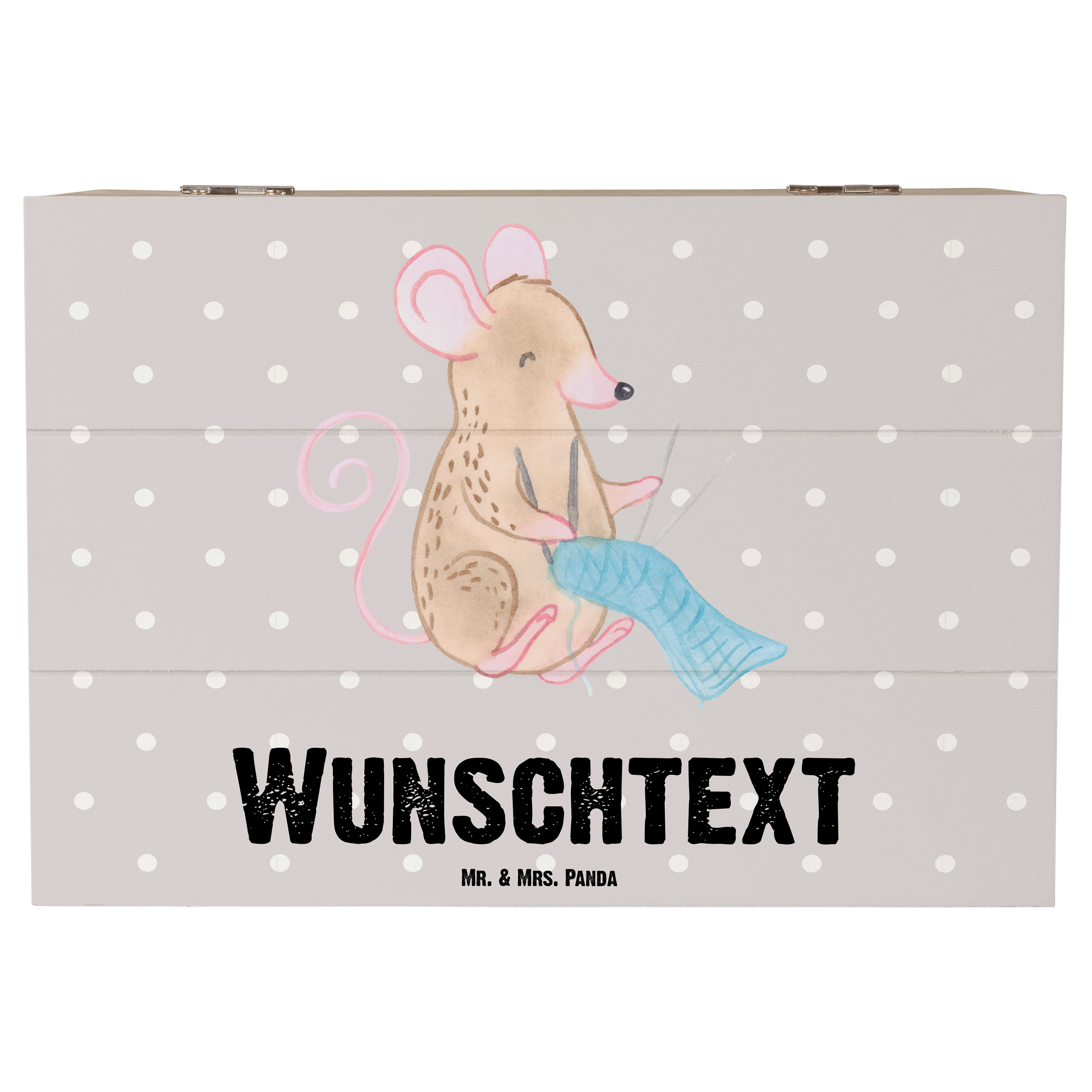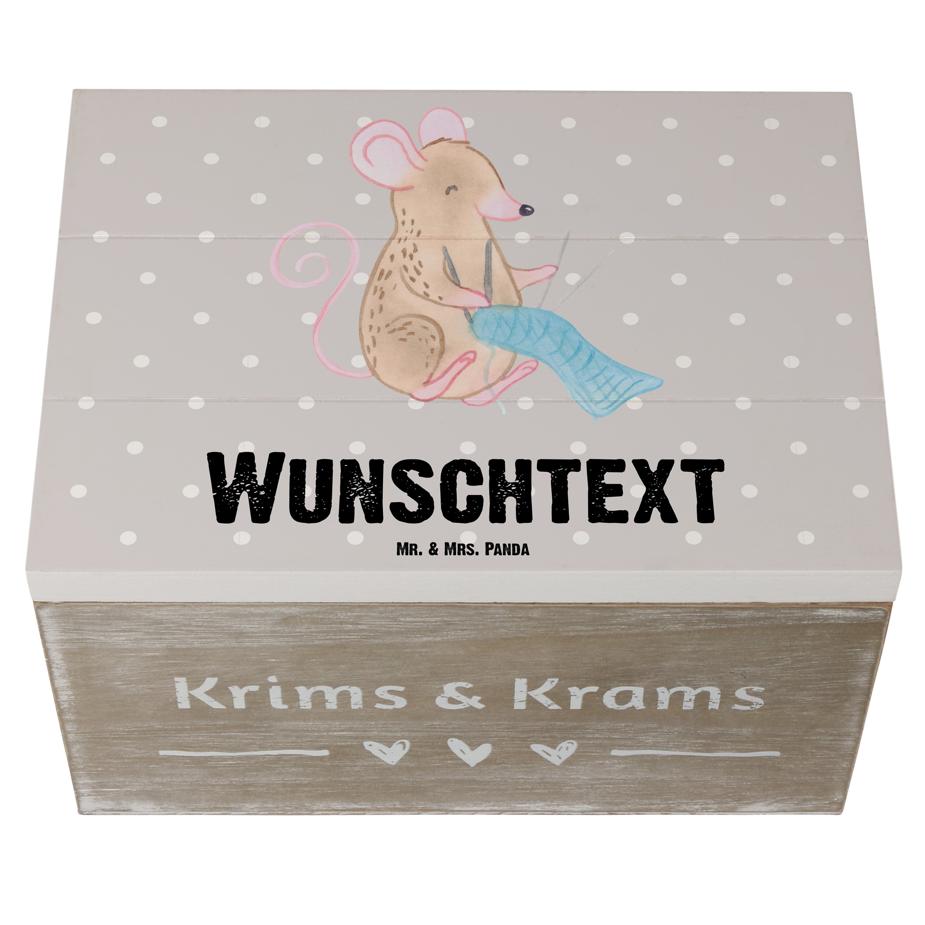 Personalisierte Holzkiste Maus Stricken Tage - Weiß - 19 x 12 cm