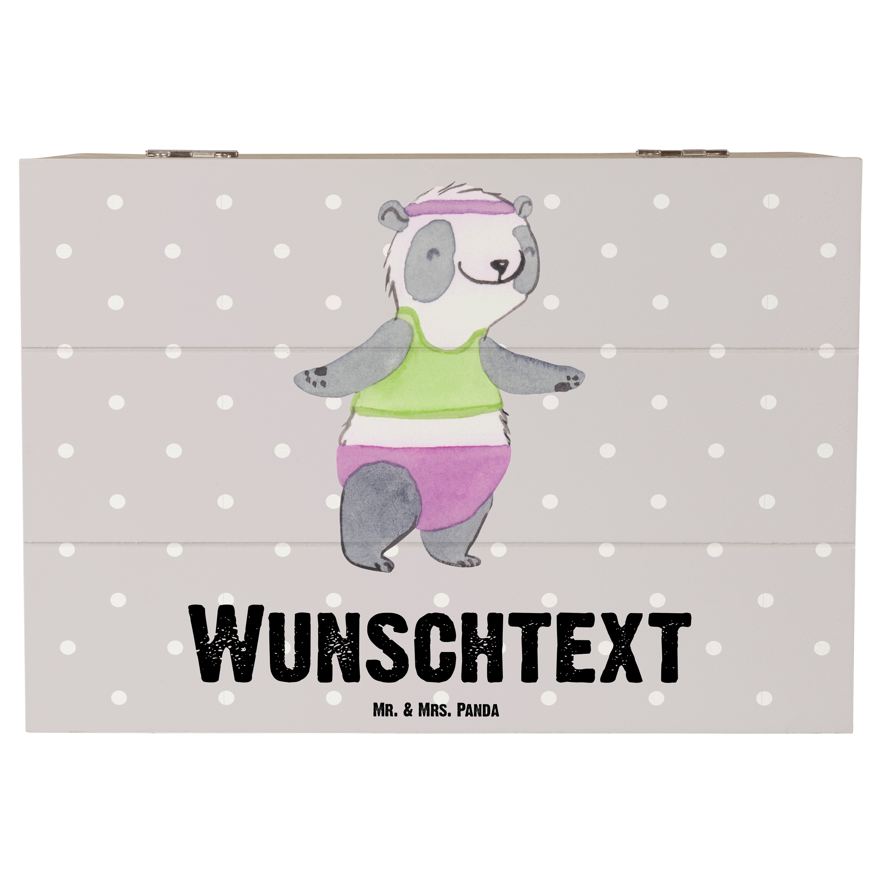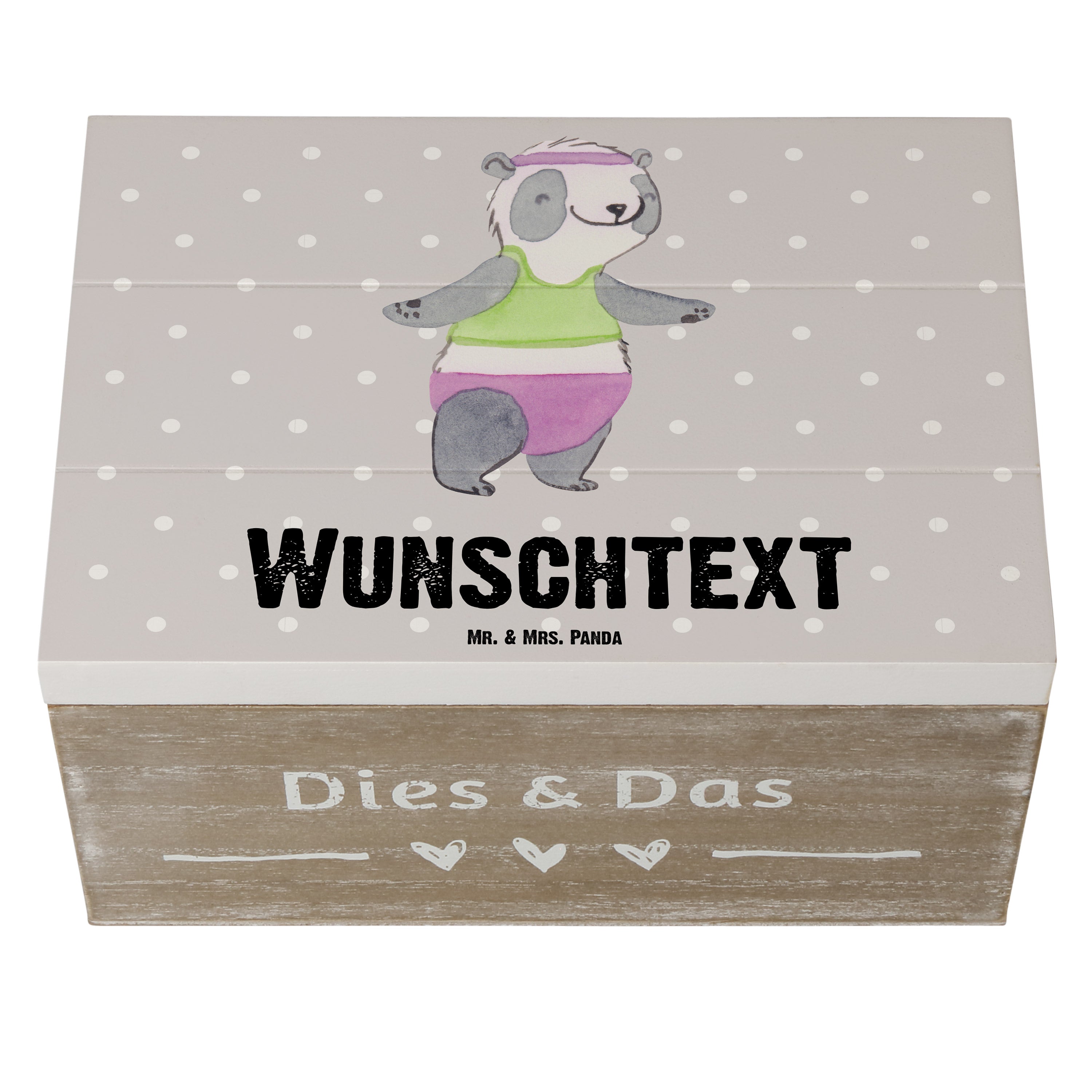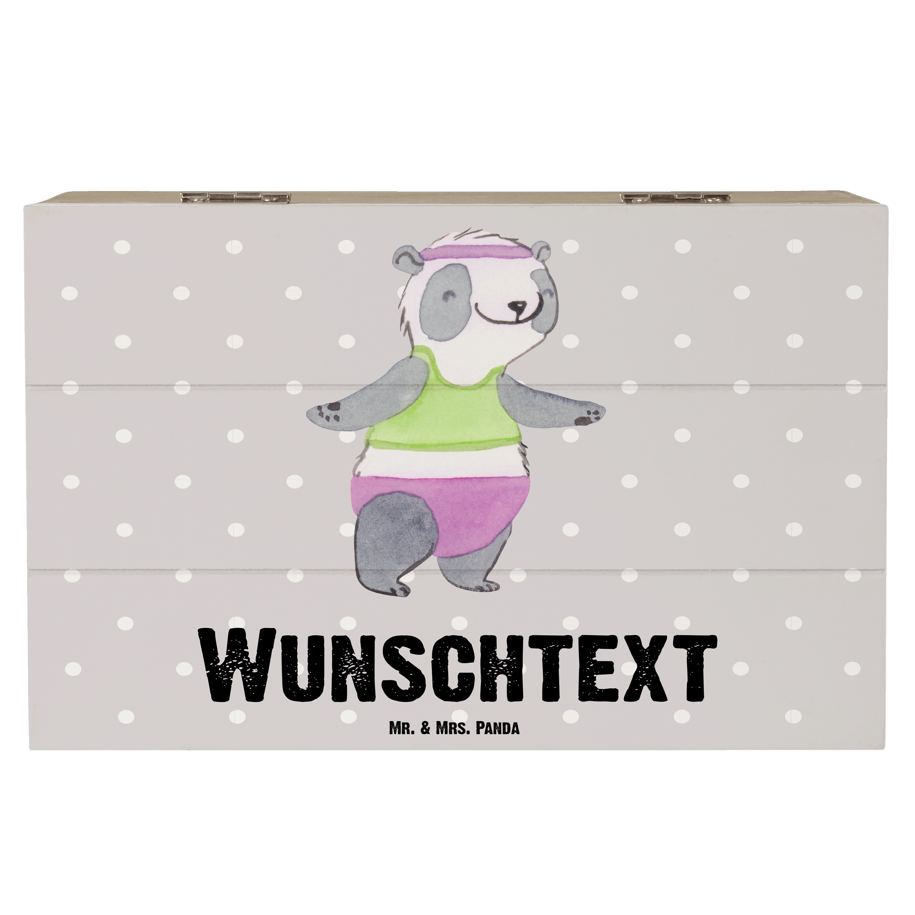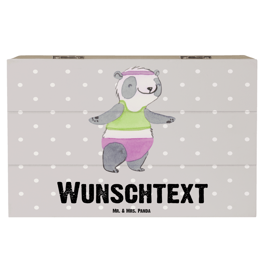 Personalisierte Holzkiste Panda Aerobic Tage - Grau Pastell - 19 x 12 cm