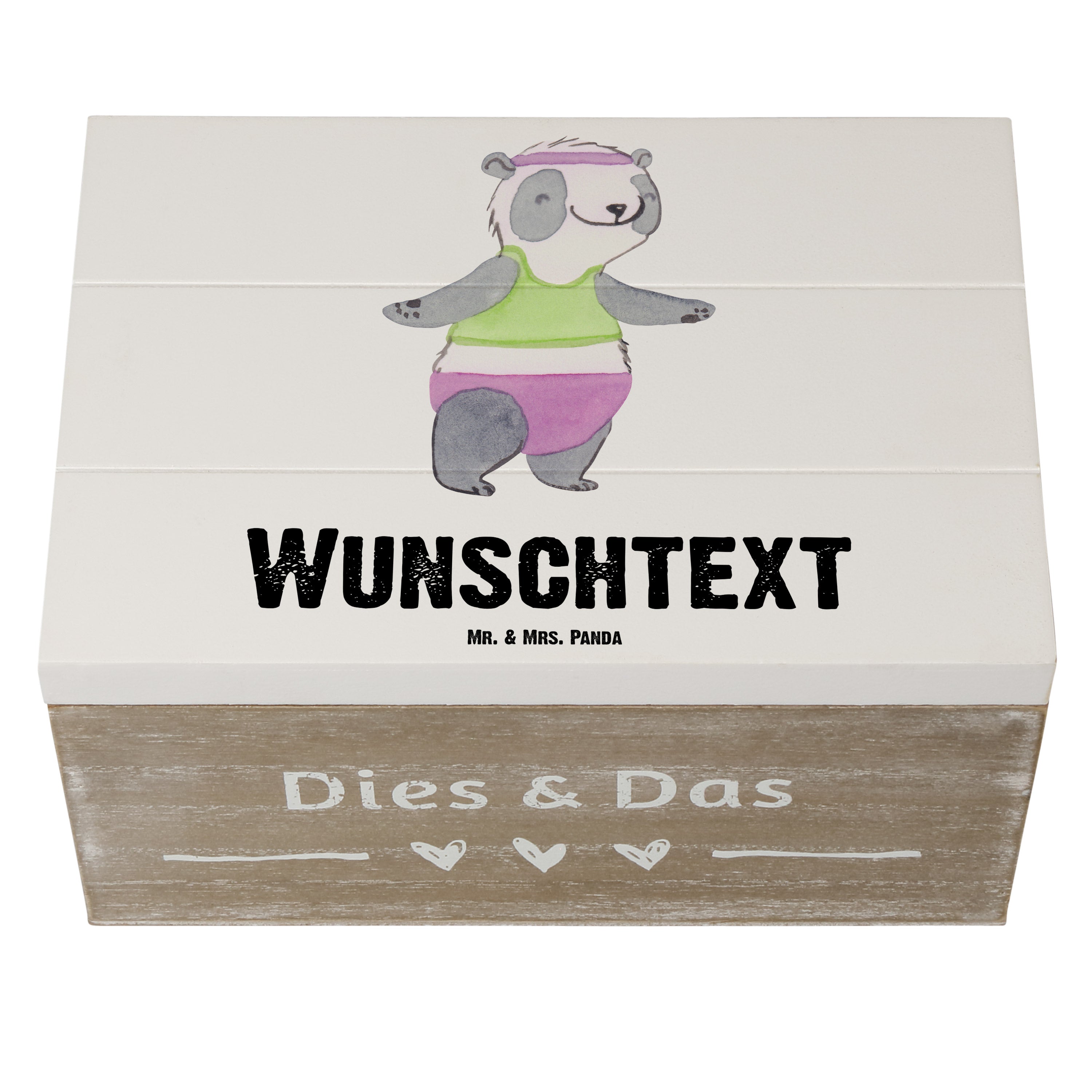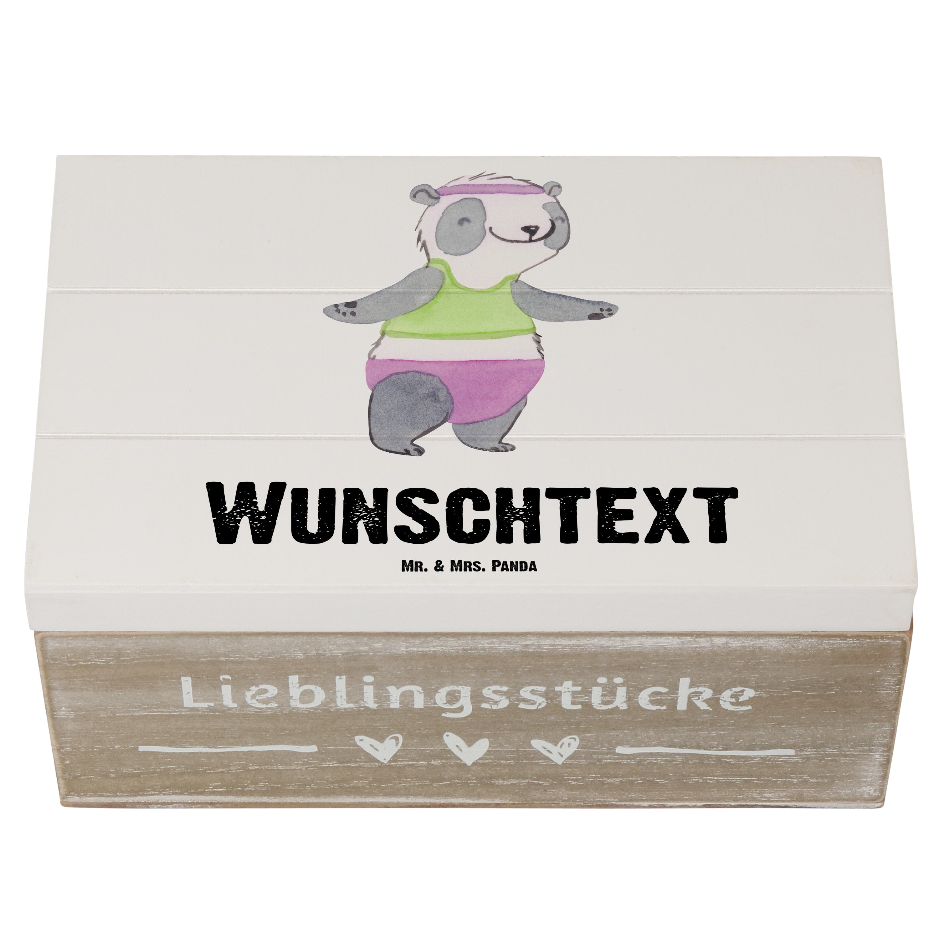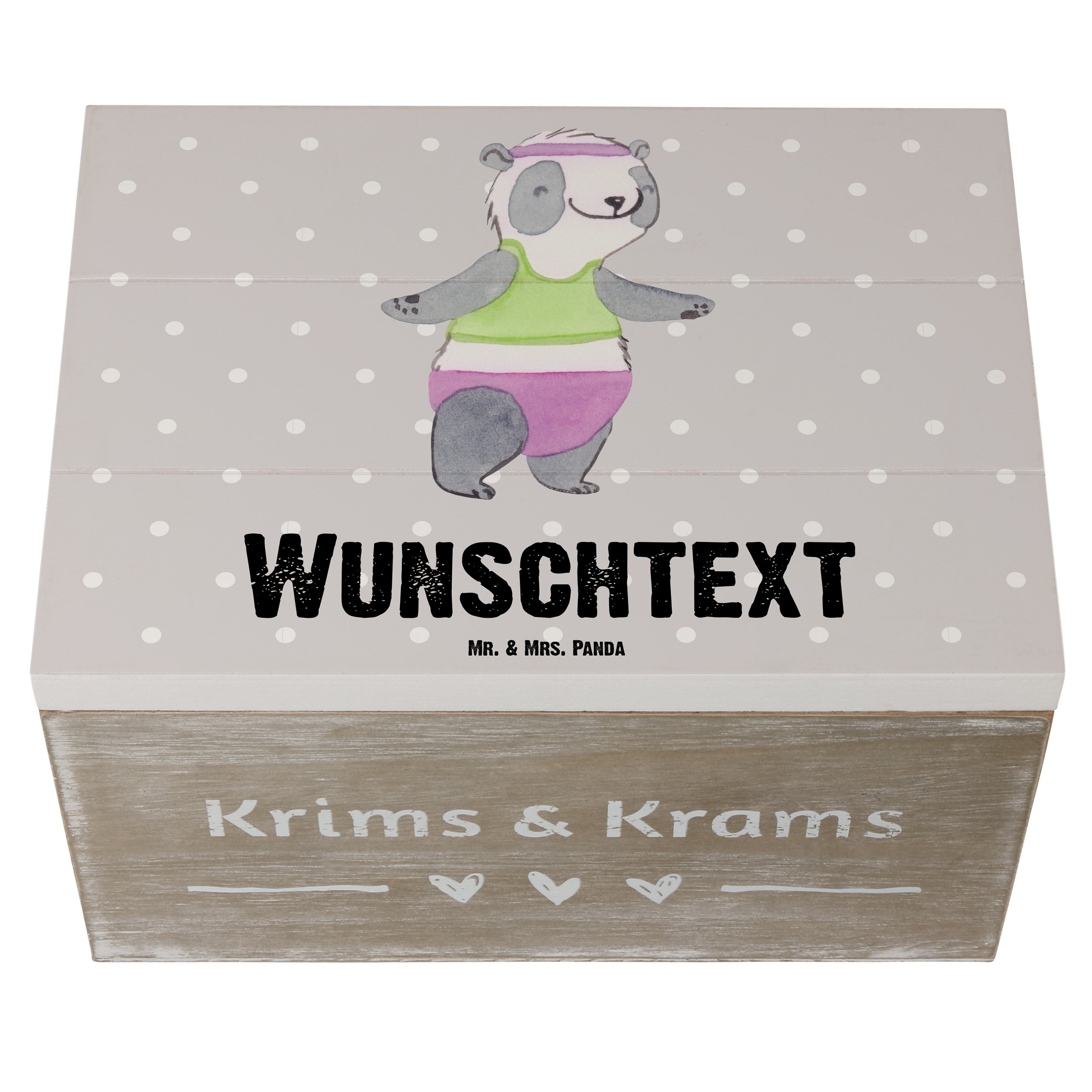 Personalisierte Holzkiste Panda Aerobic Tage - Grau Pastell - 19 x 12 cm