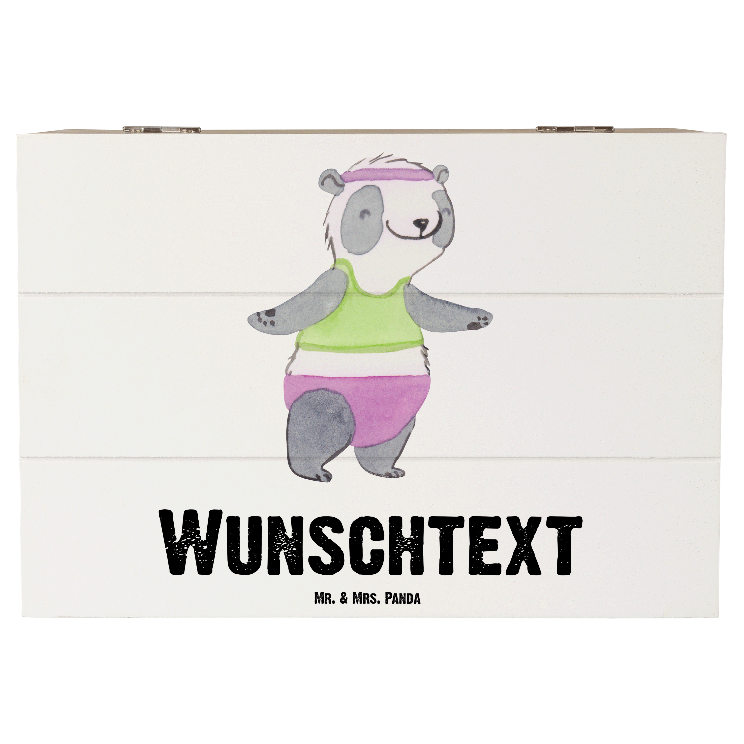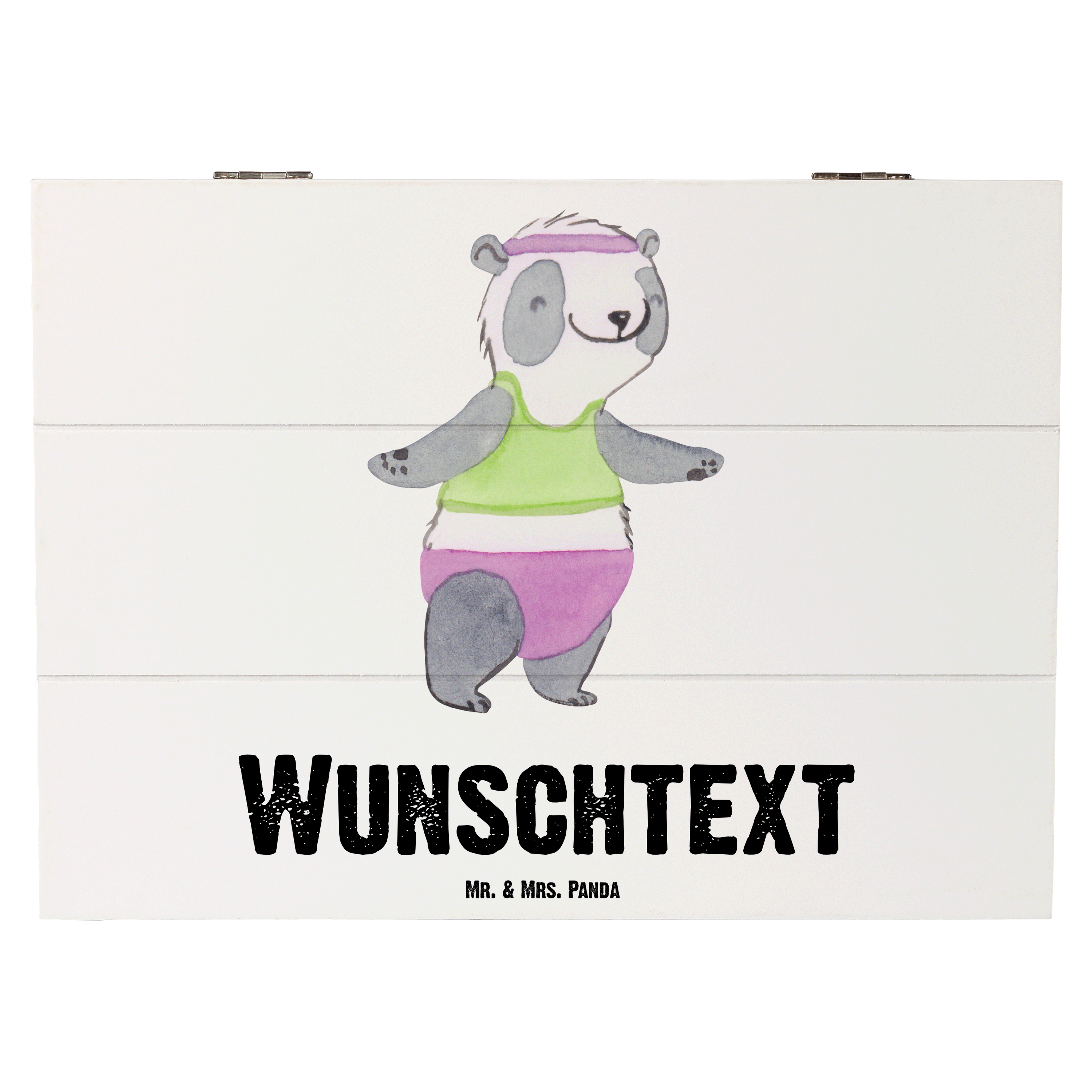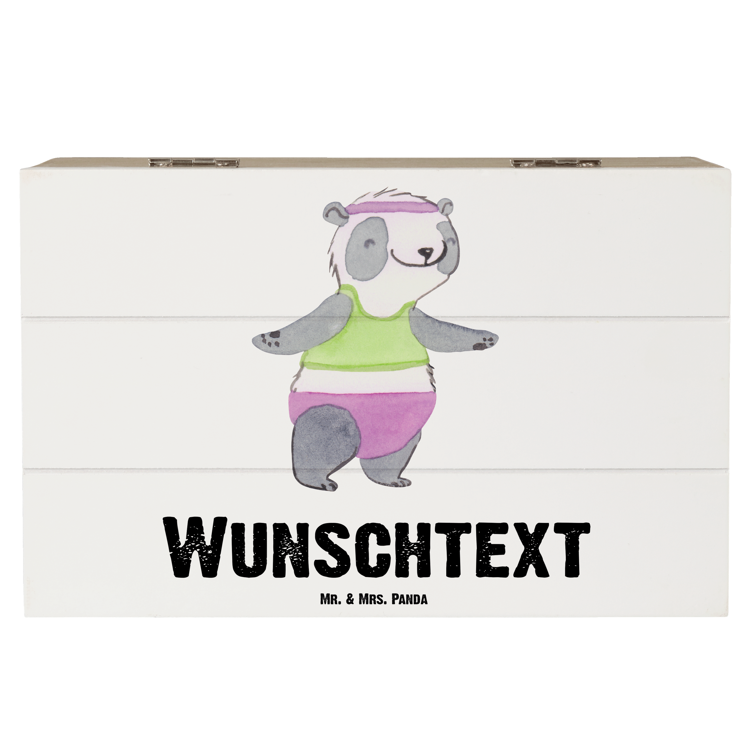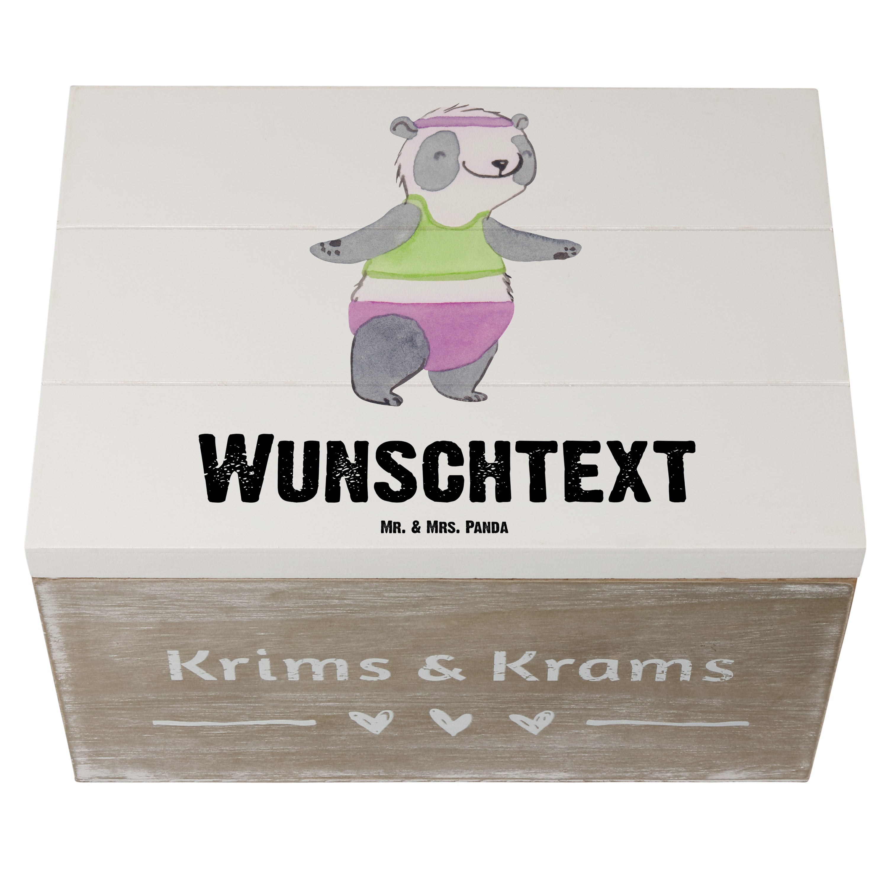 Personalisierte Holzkiste Panda Aerobic Tage - Grau Pastell - 19 x 12 cm
