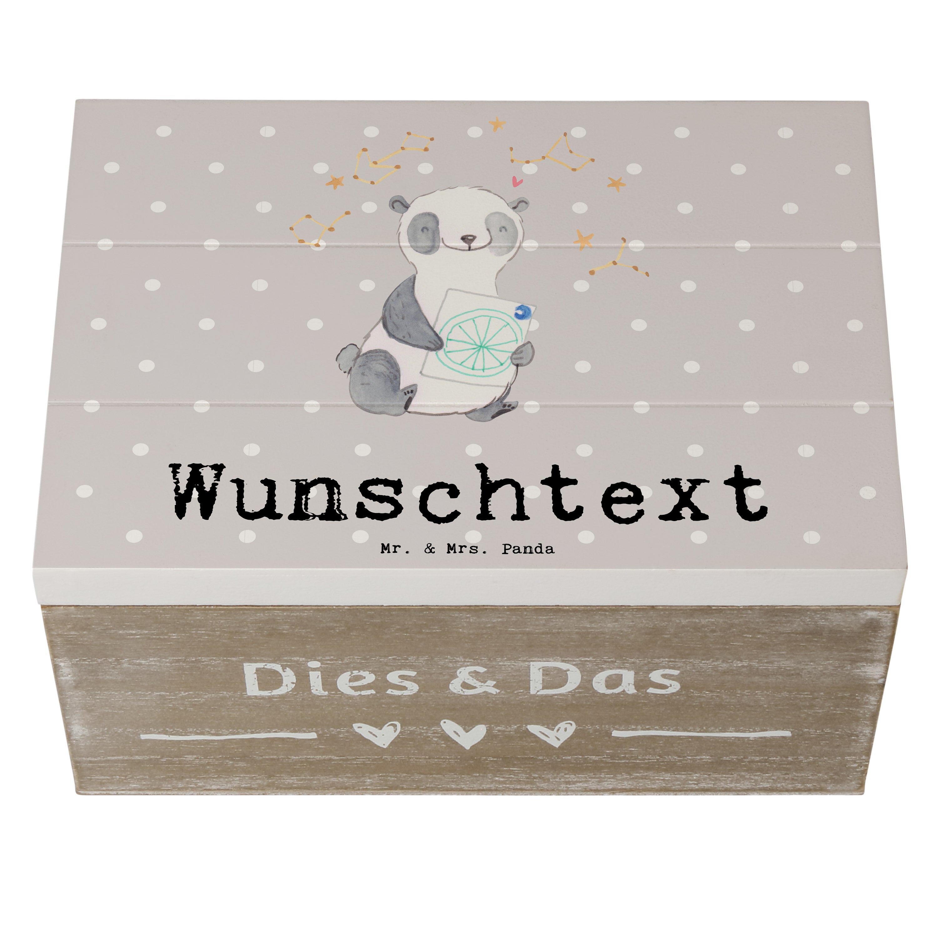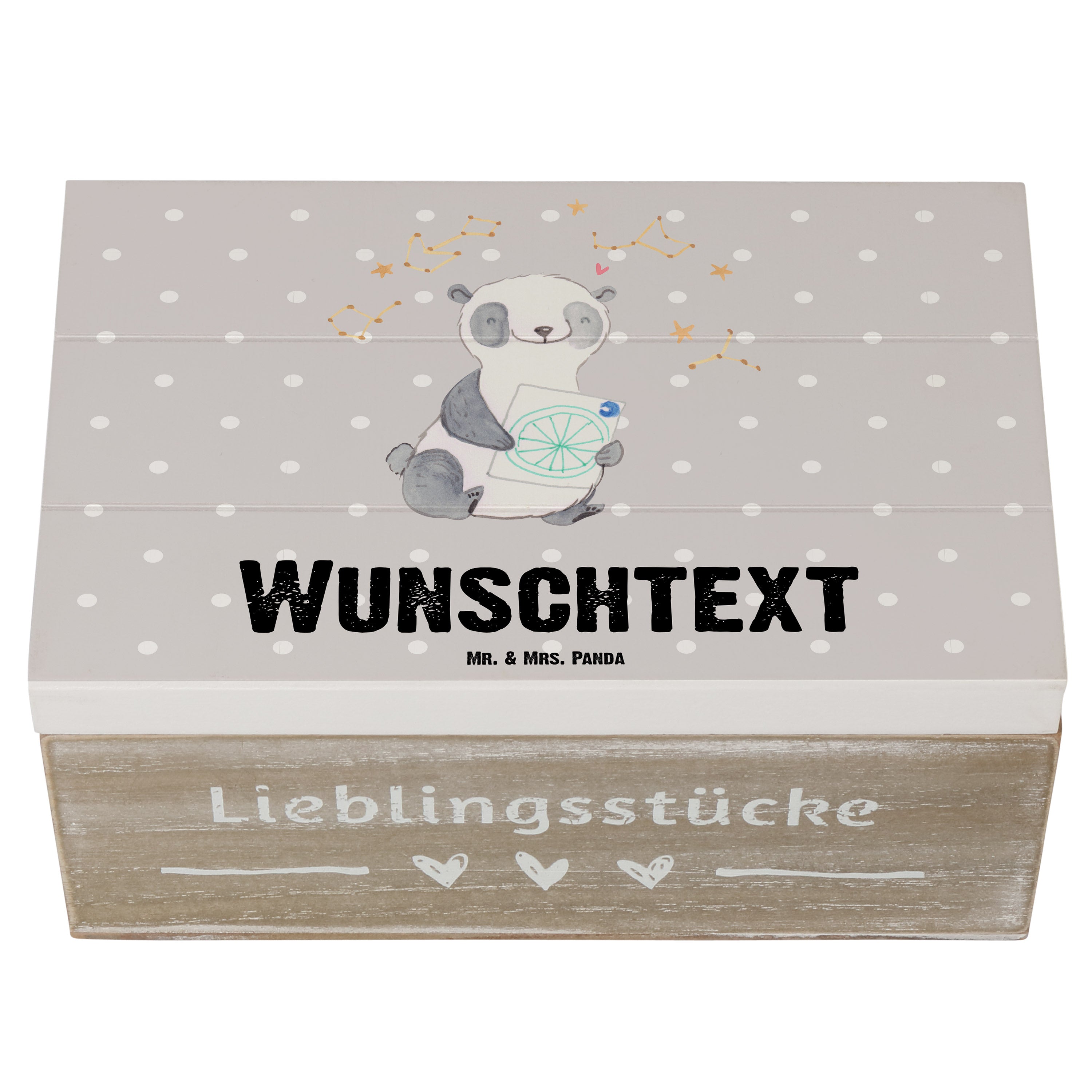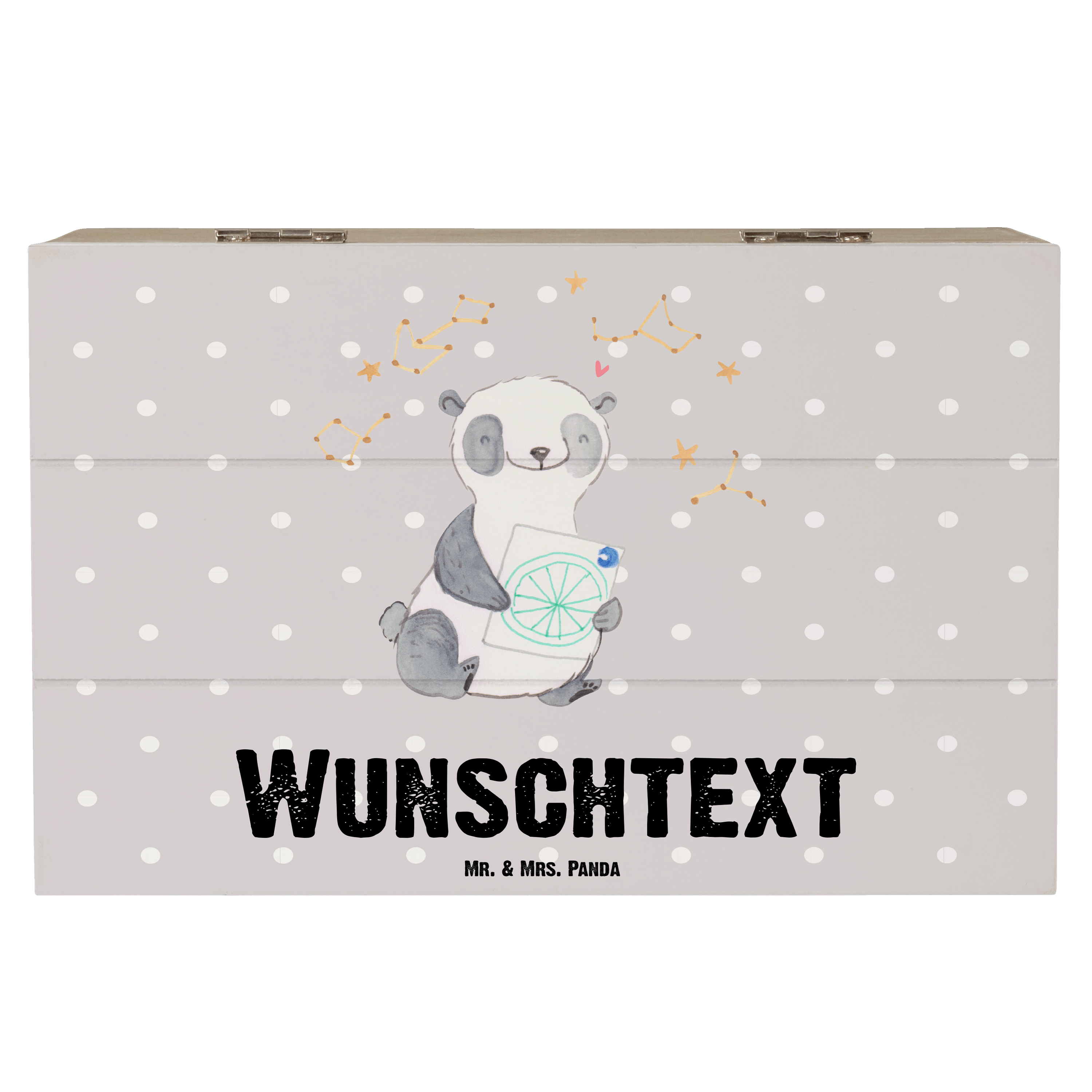 Personalisierte Holzkiste Panda Astrologie Tage - Grau Pastell - 19 x 12 cm