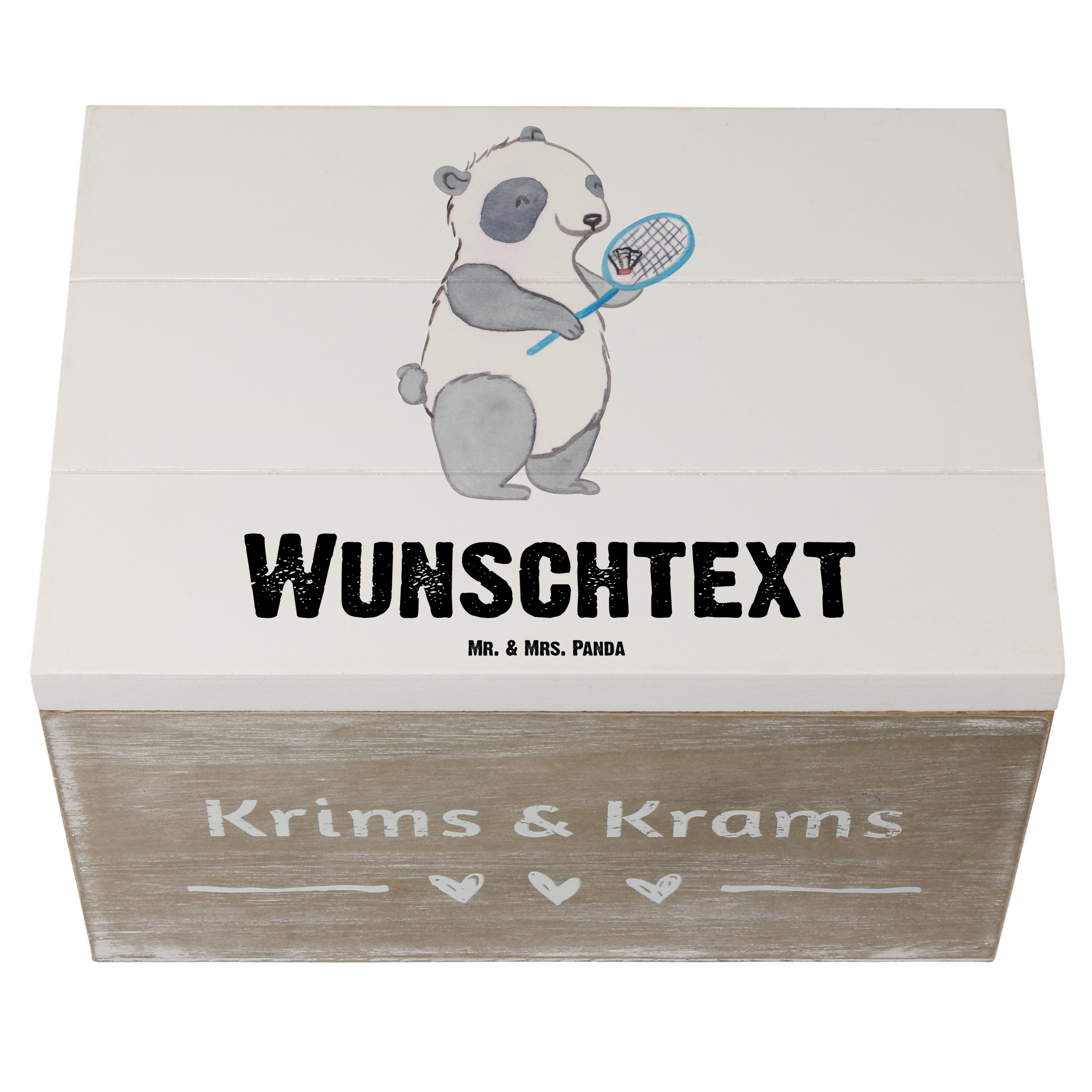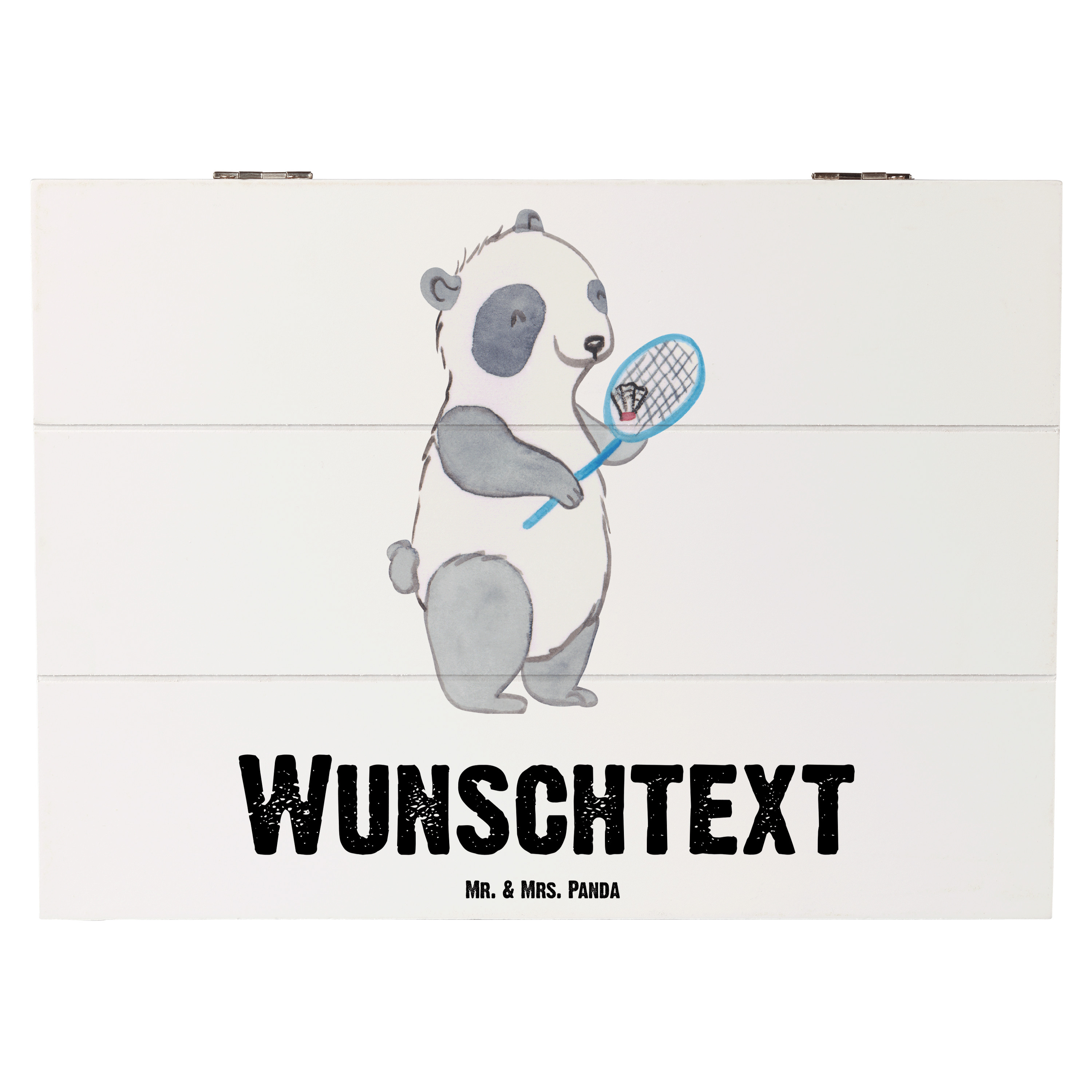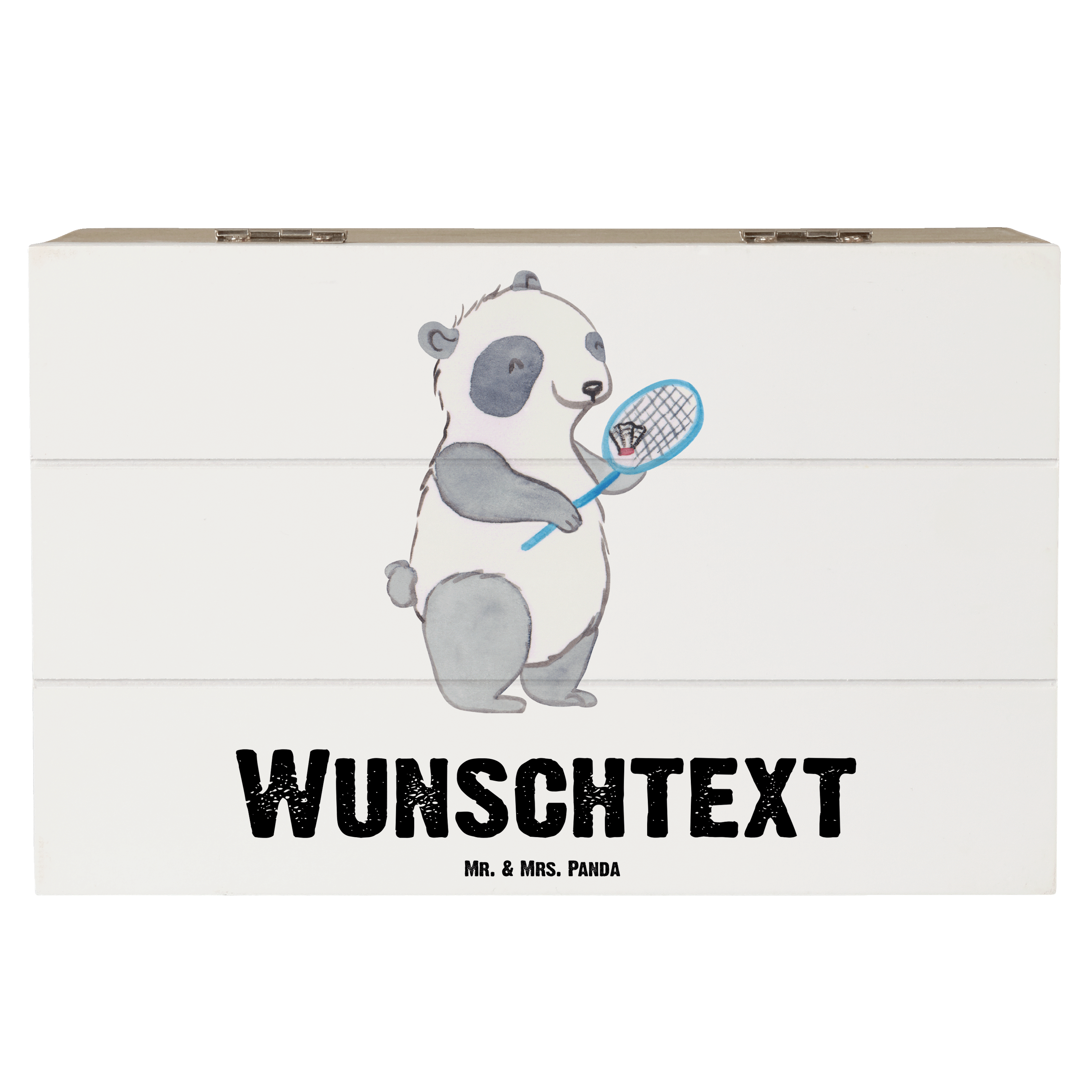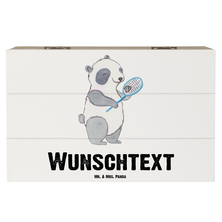 Personalisierte Holzkiste Panda Badminton Tage - Weiß - 19 x 12 cm