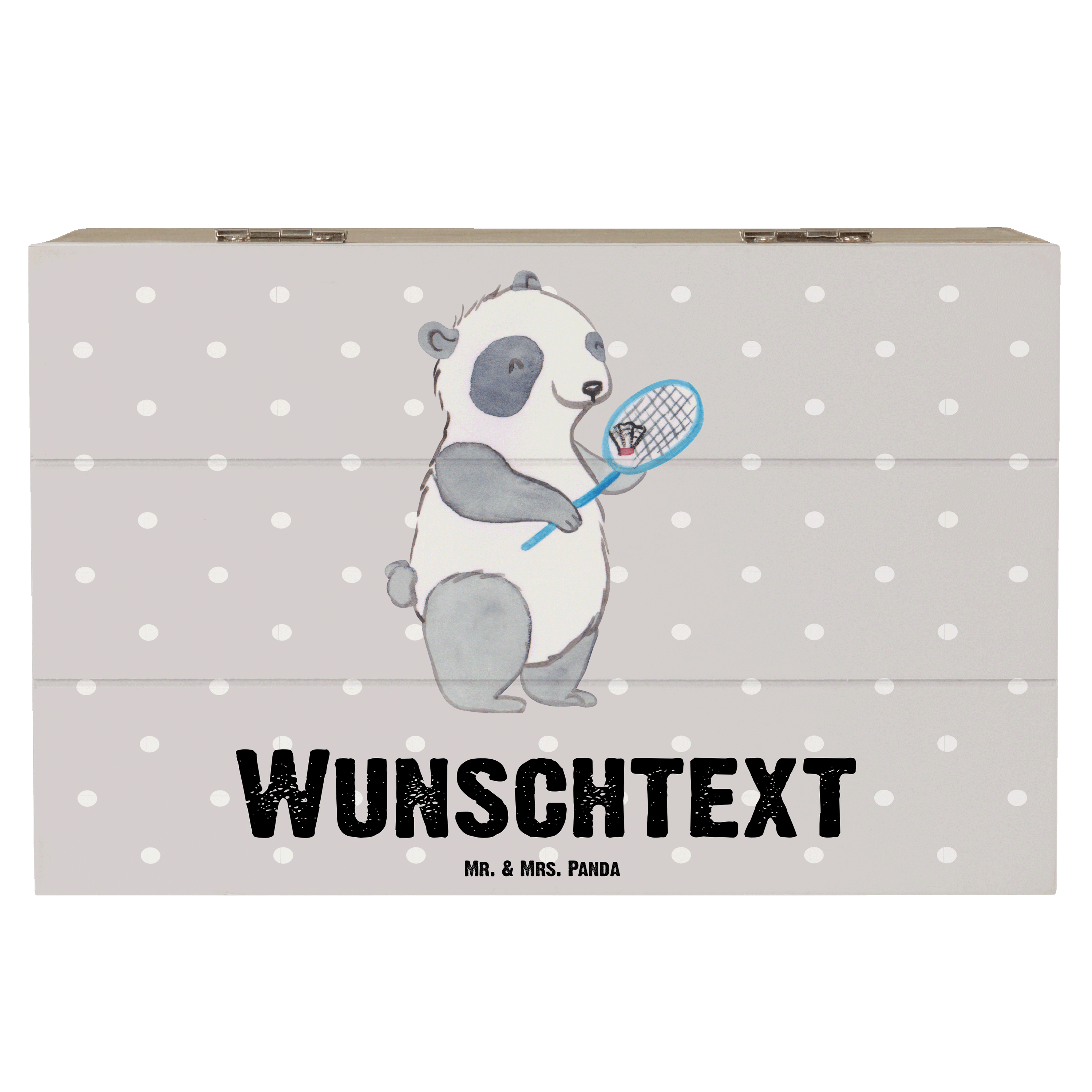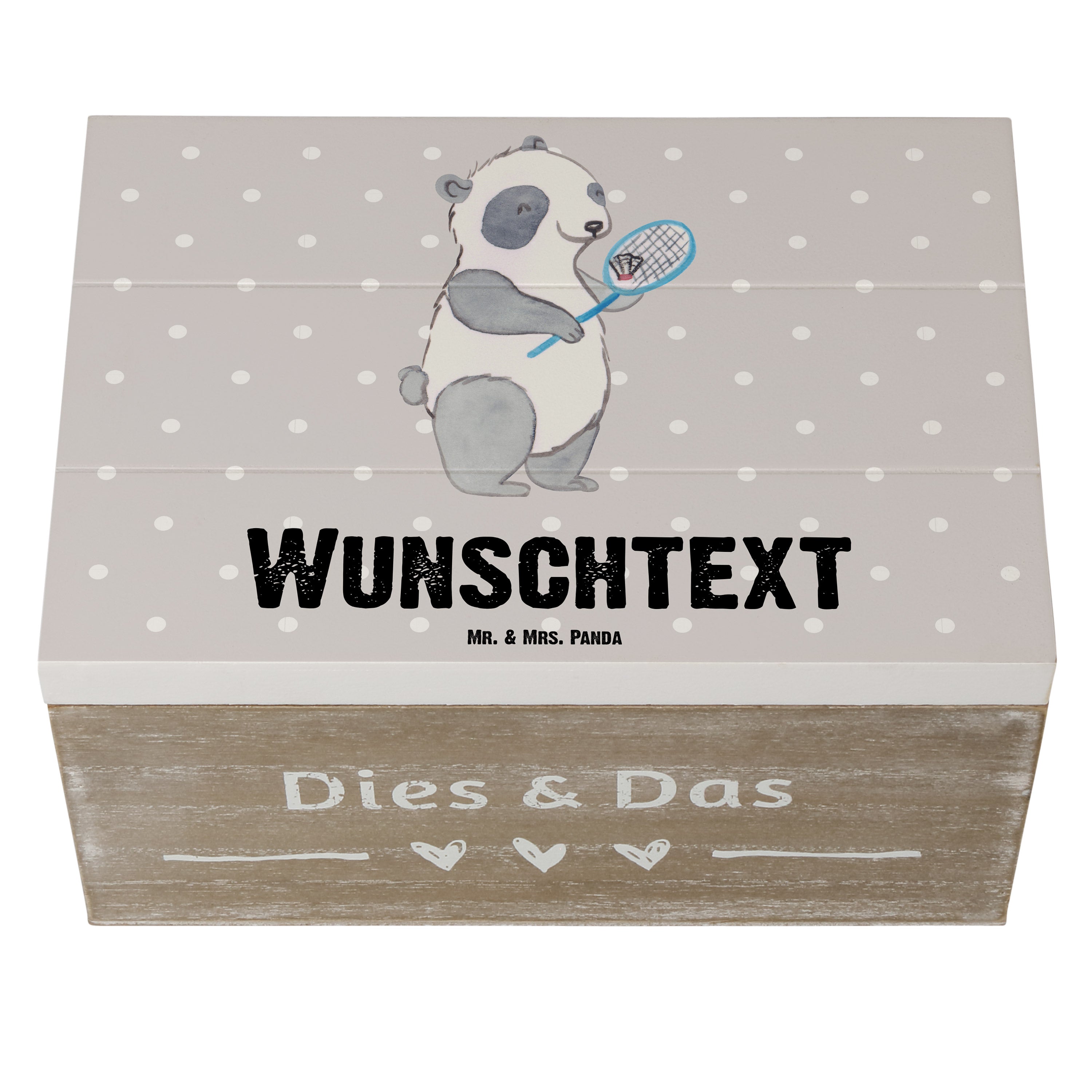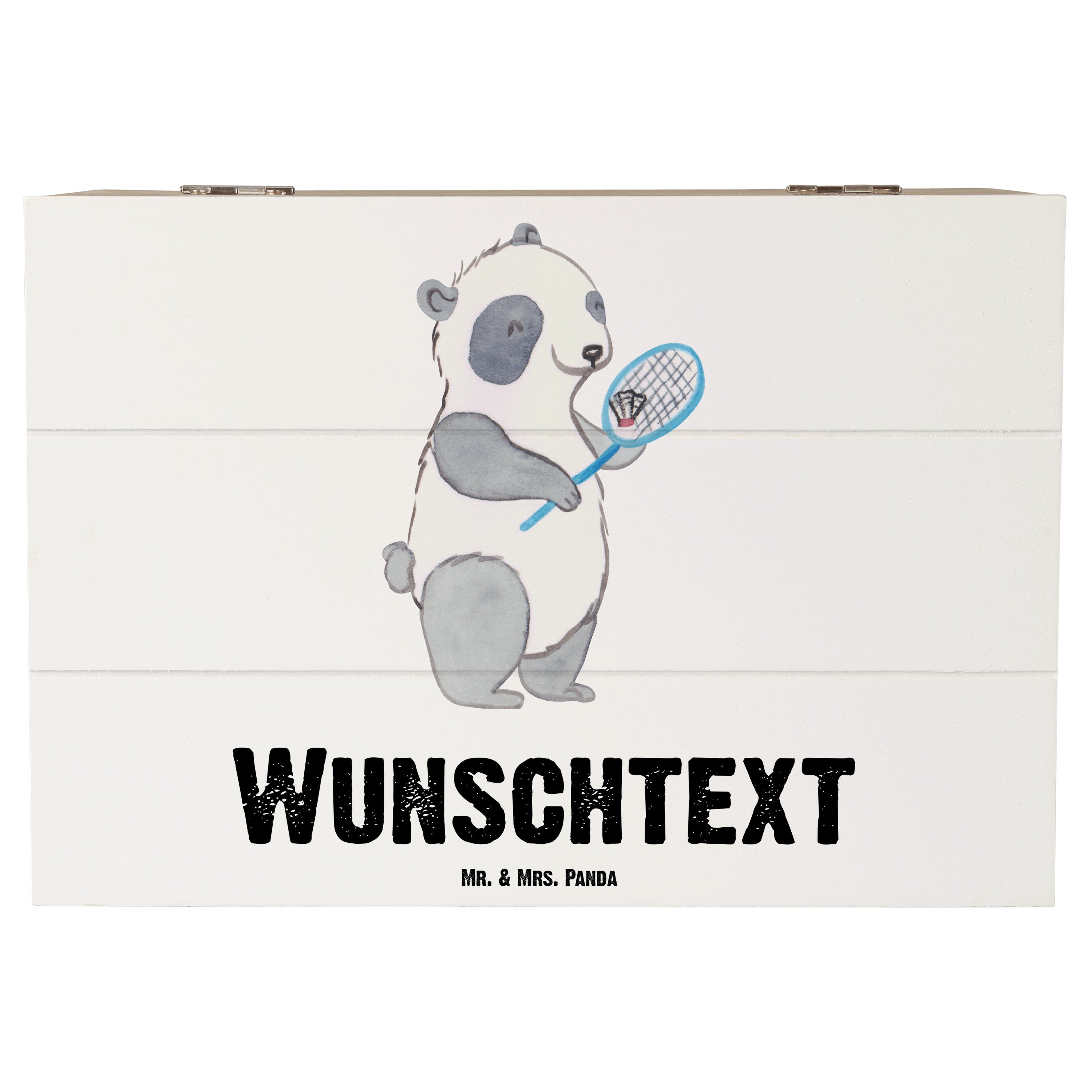 Personalisierte Holzkiste Panda Badminton Tage - Weiß - 19 x 12 cm