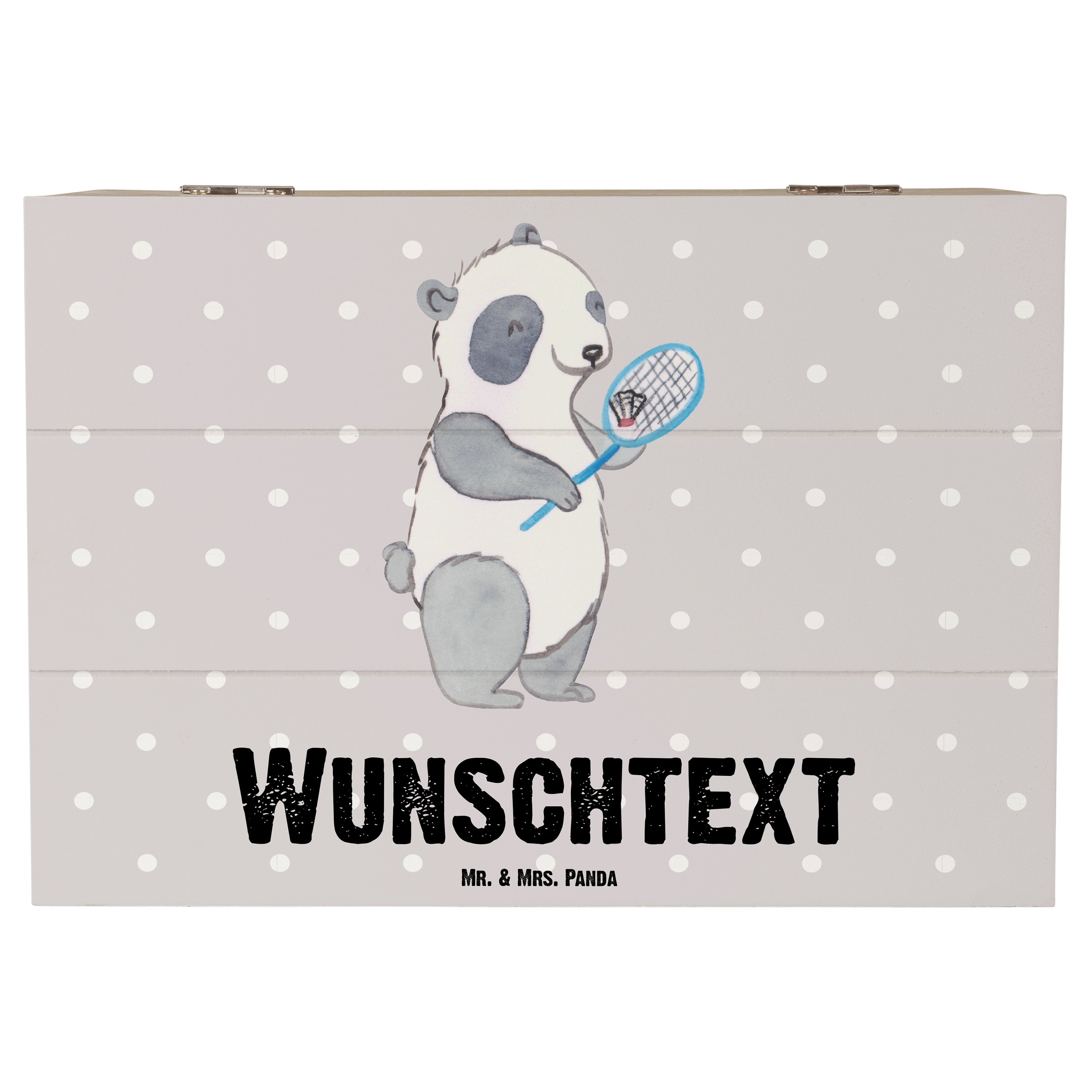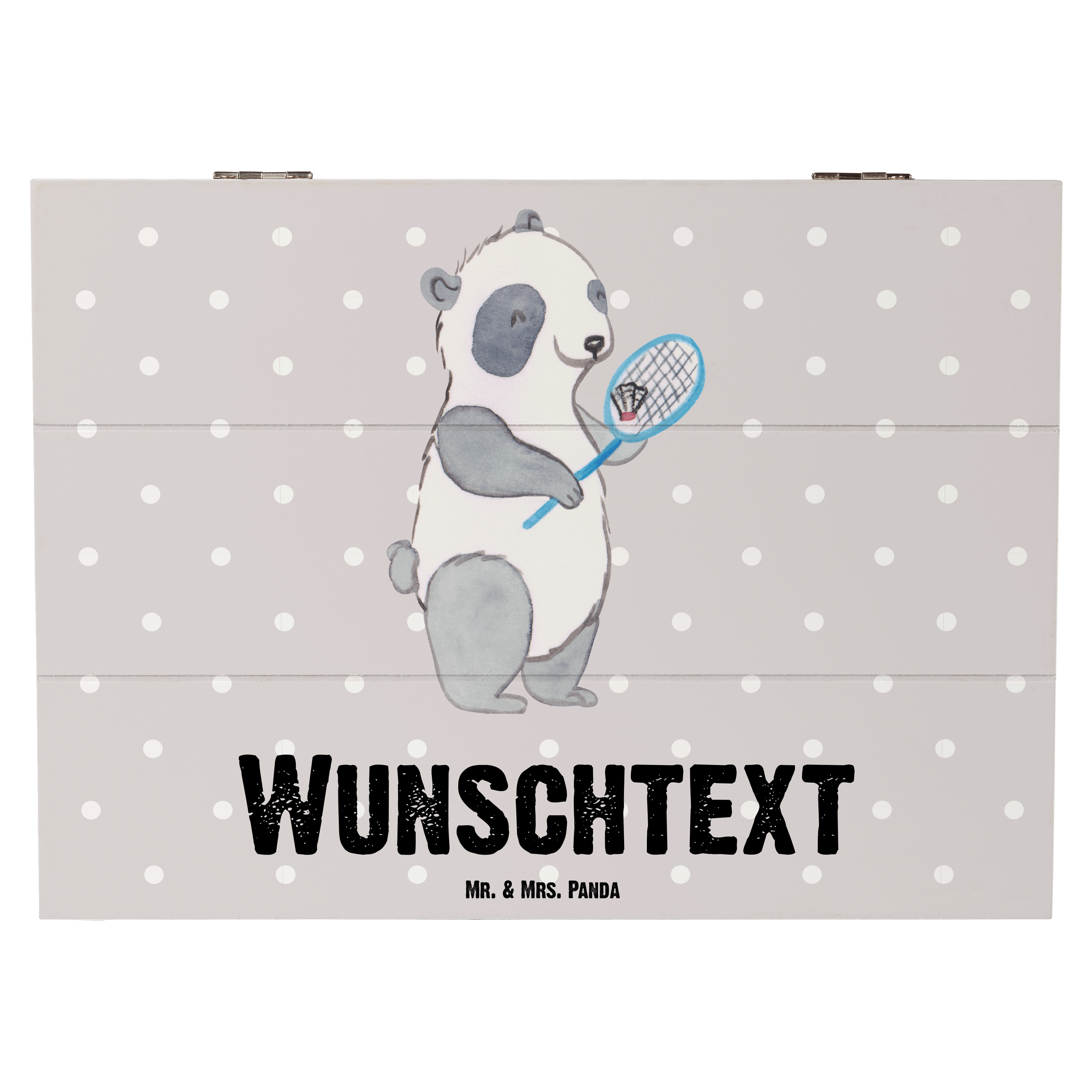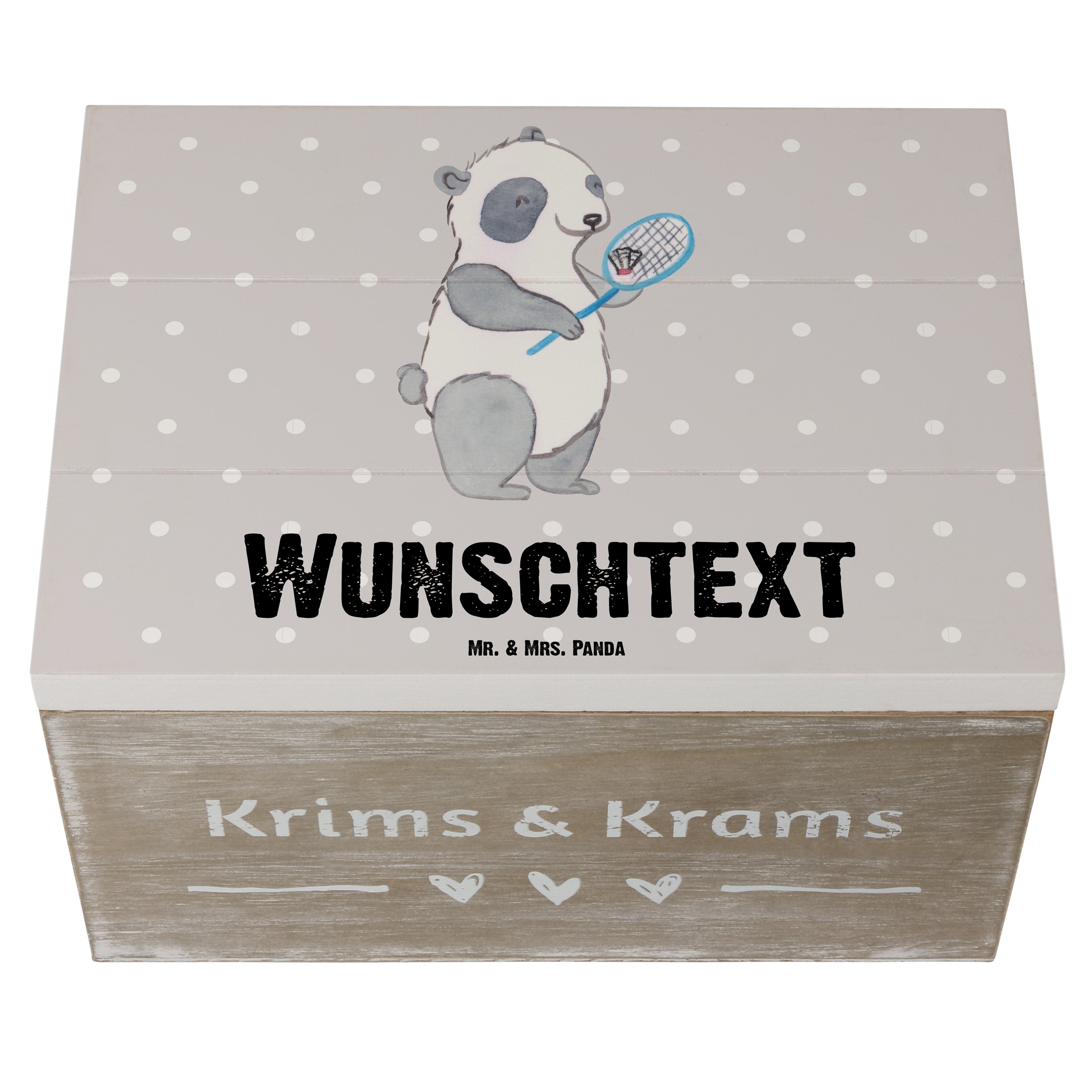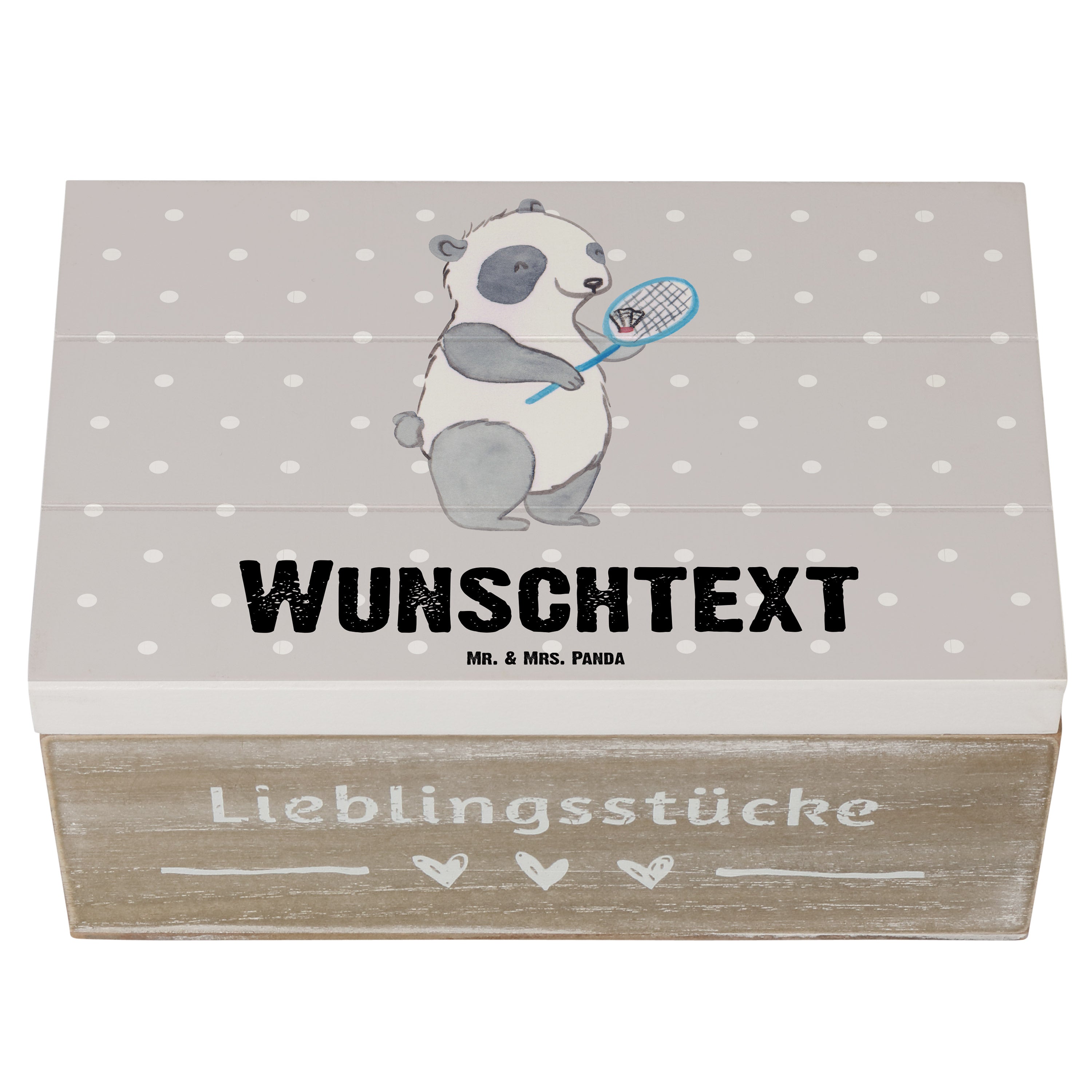 Personalisierte Holzkiste Panda Badminton Tage - Weiß - 19 x 12 cm