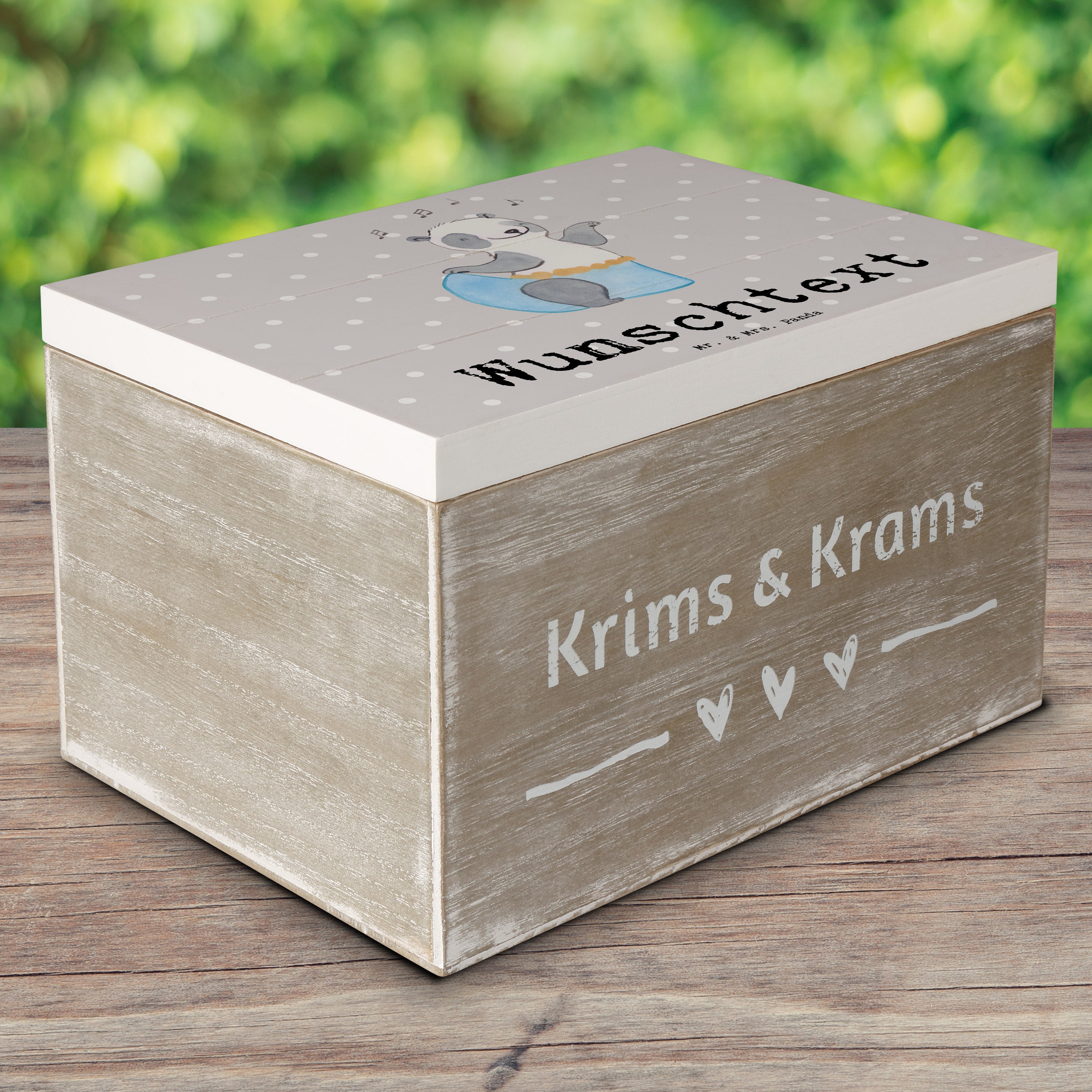 Personalisierte Holzkiste Panda Bauchtanz Tage - Grau Pastell - 19 x 12 cm