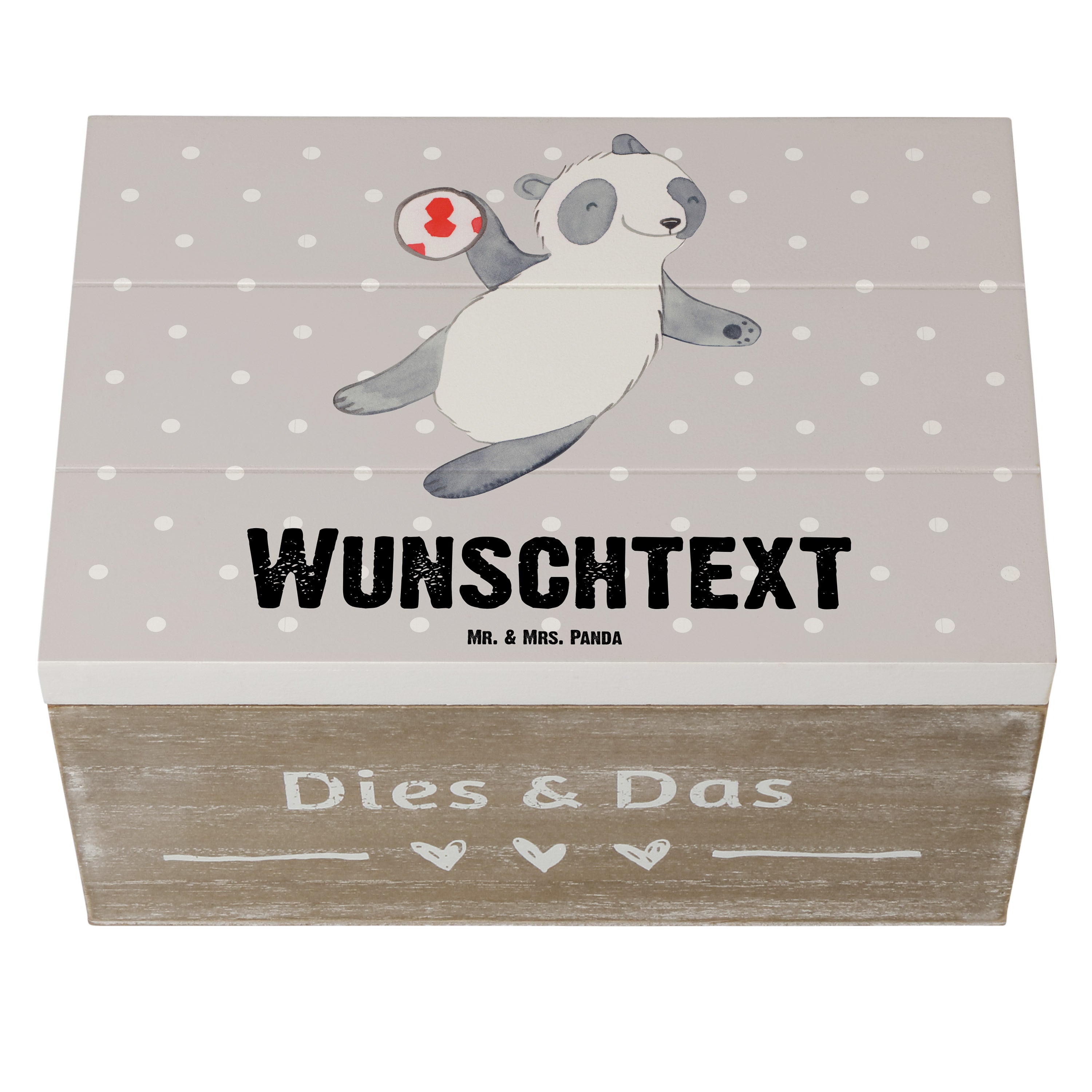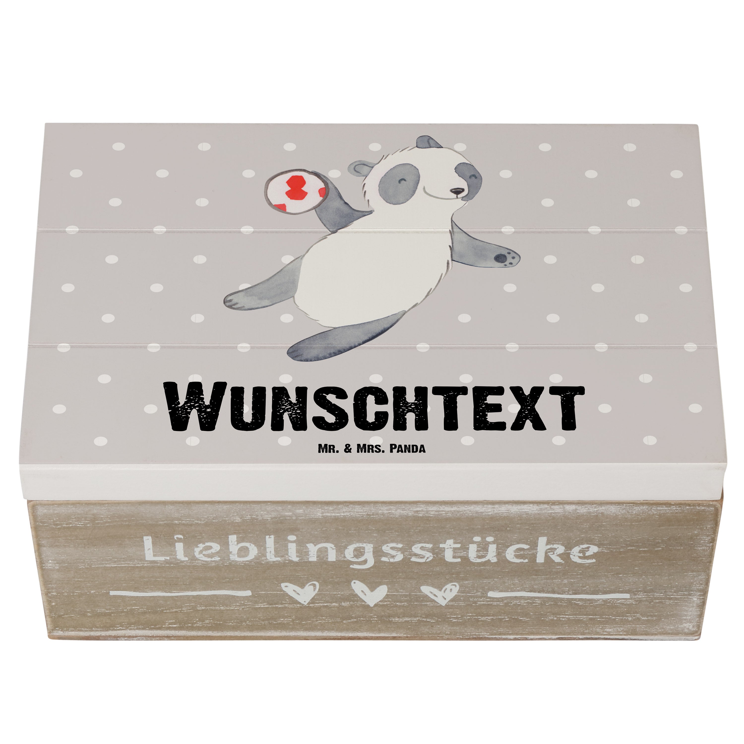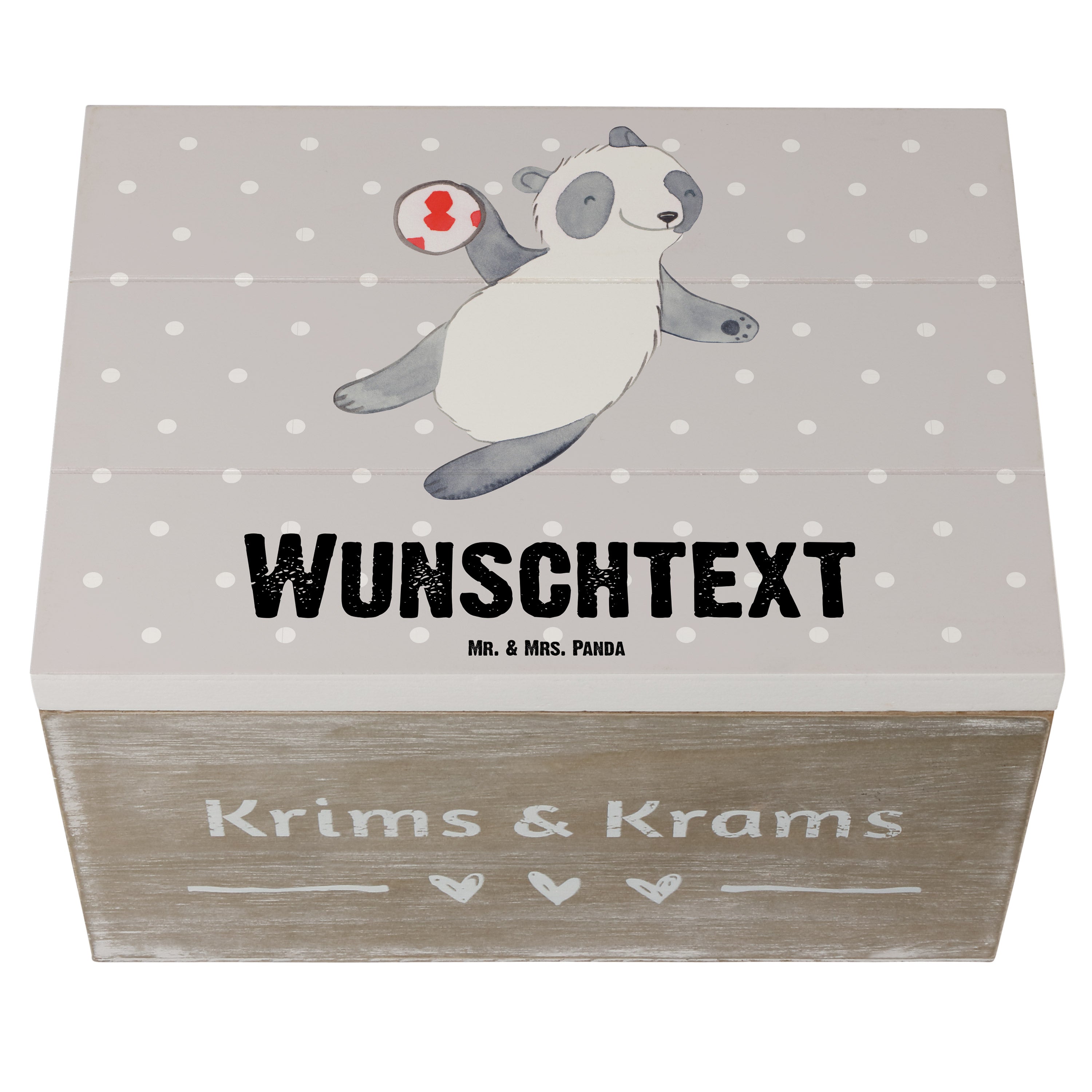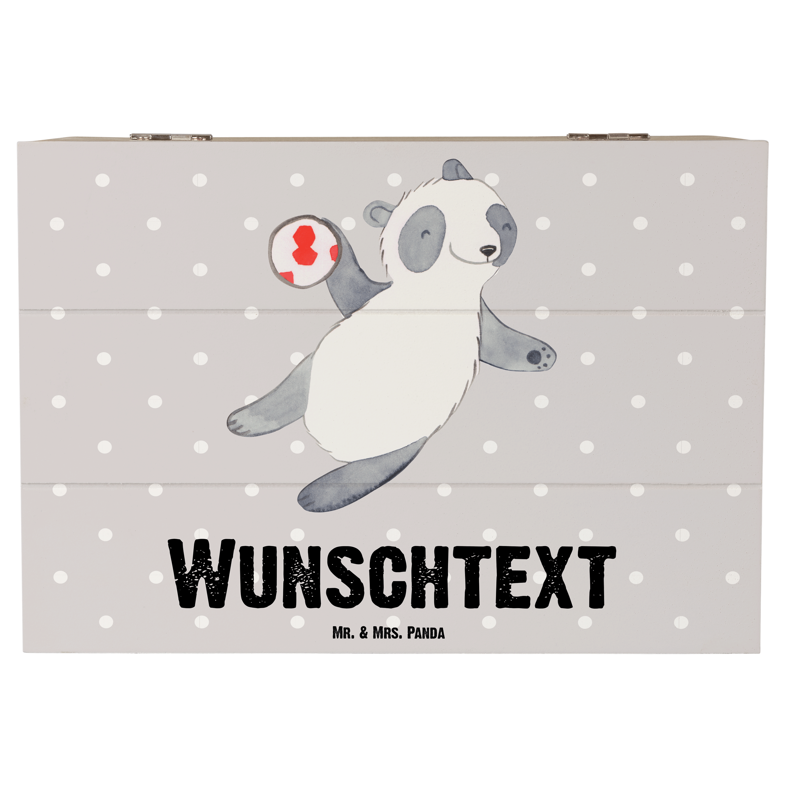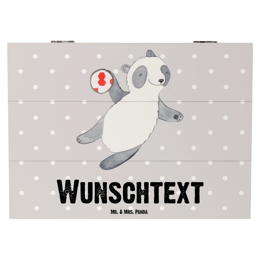 Personalisierte Holzkiste Panda Handball spielen Tage - 25 x 18 cm - Grau Pastell