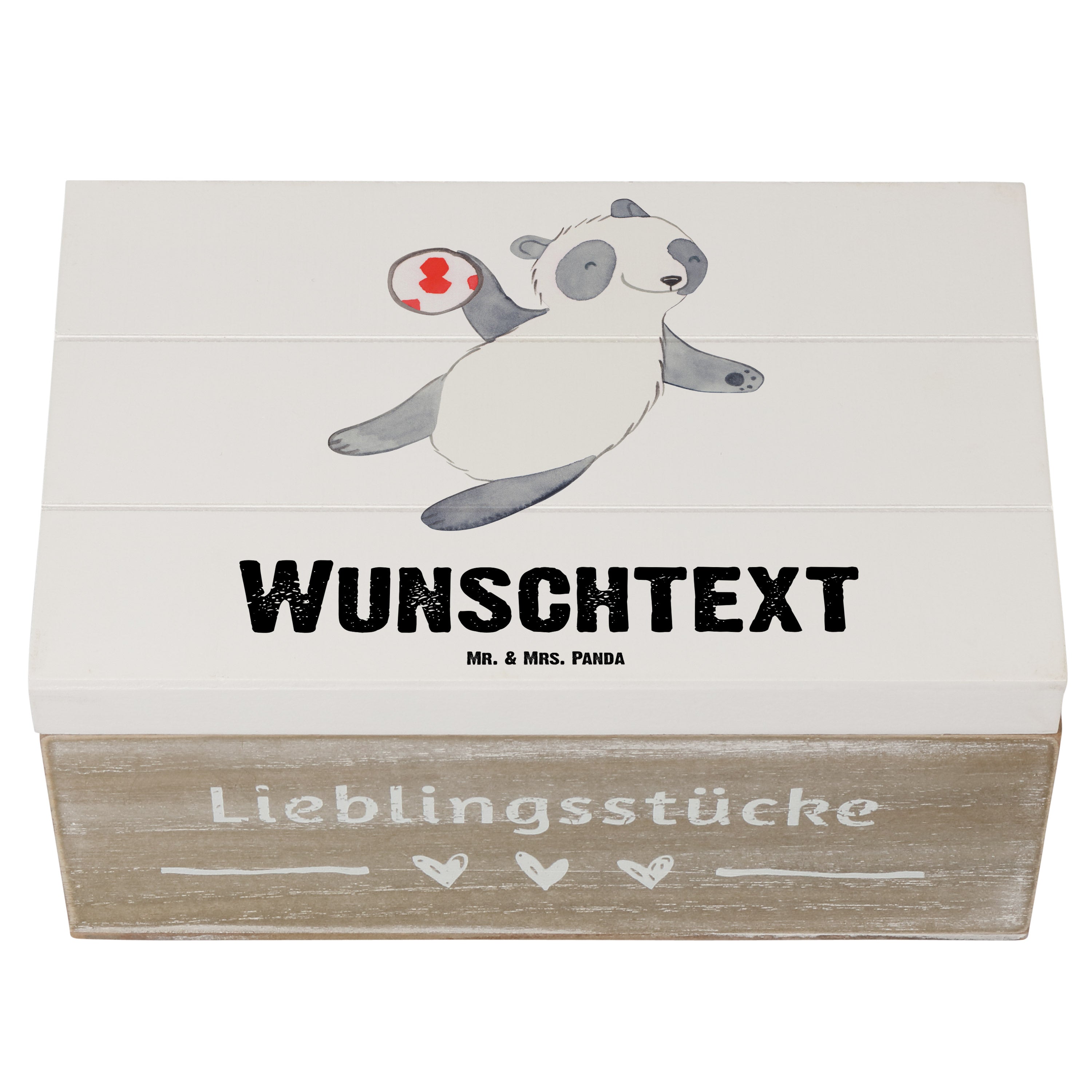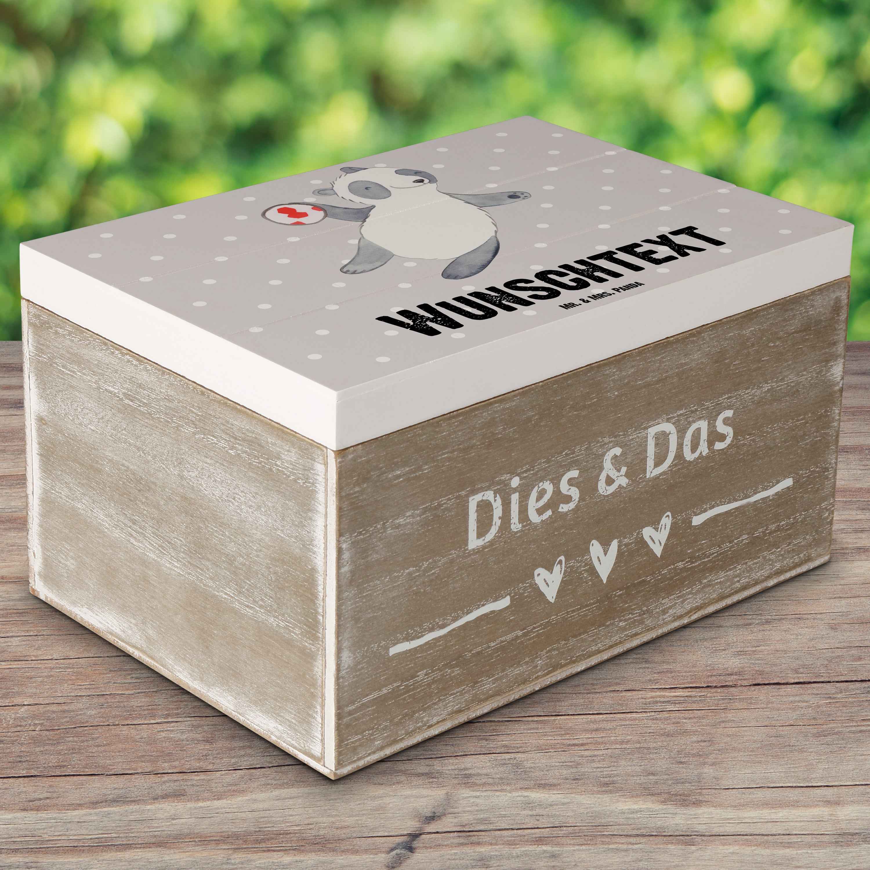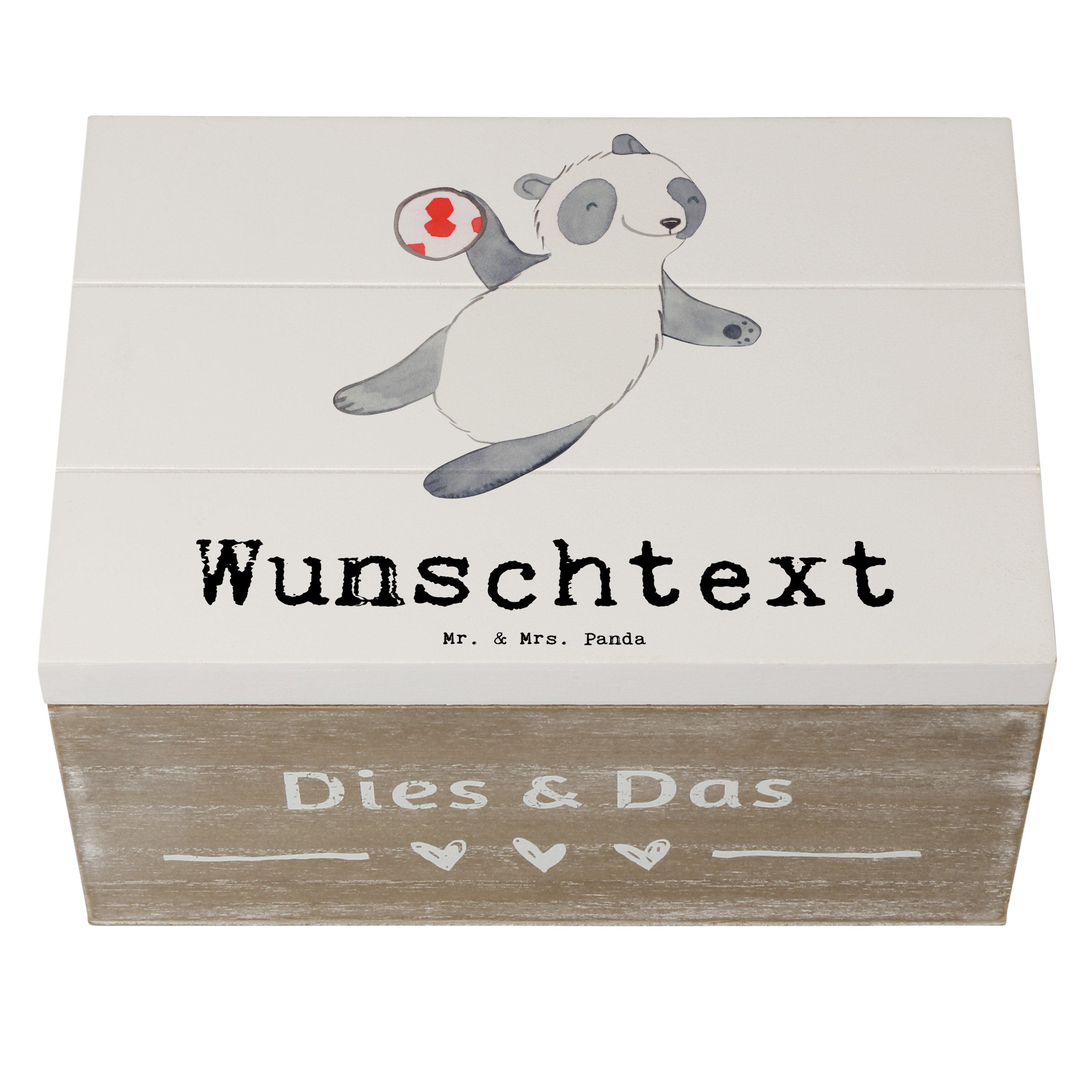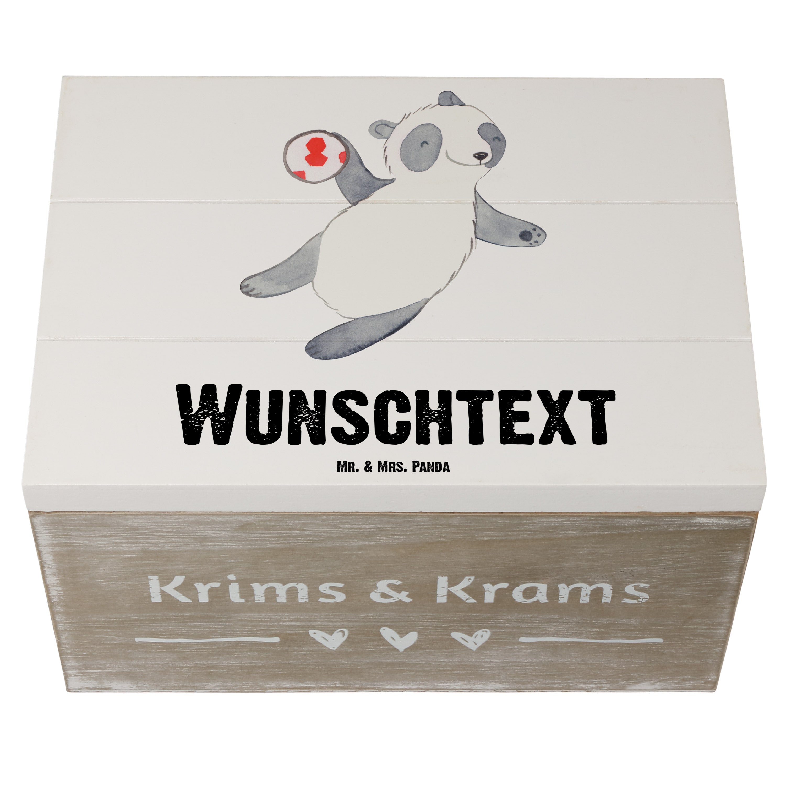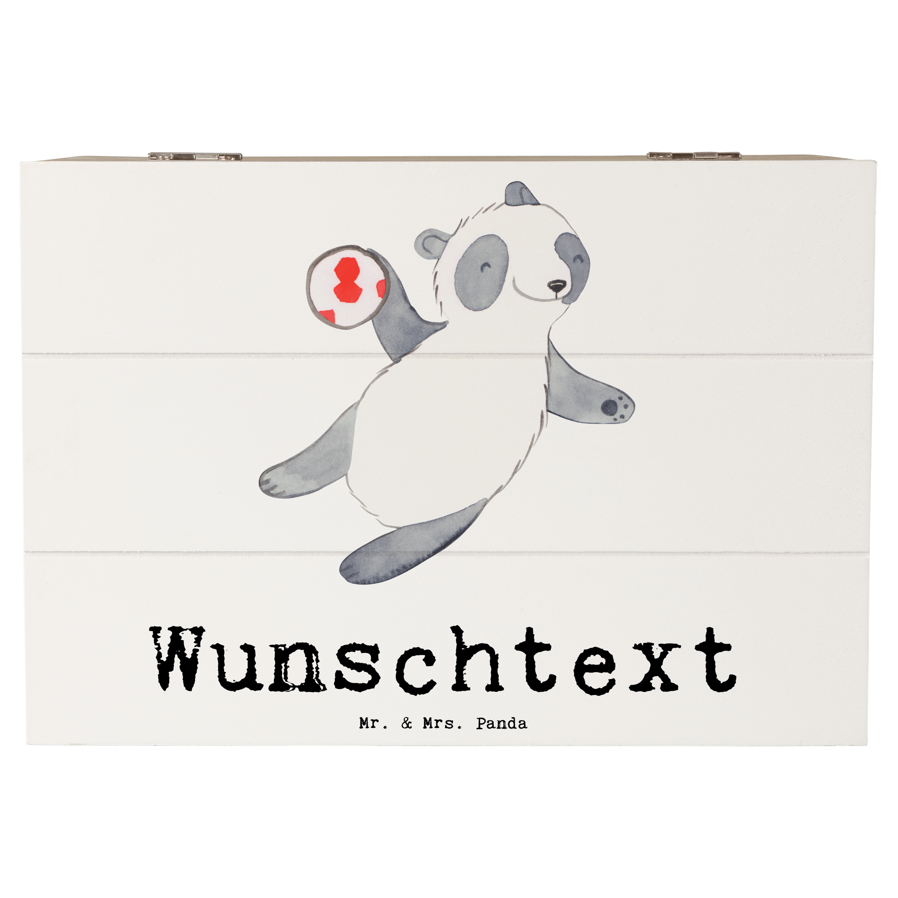 Personalisierte Holzkiste Panda Handball spielen Tage - 25 x 18 cm - Grau Pastell