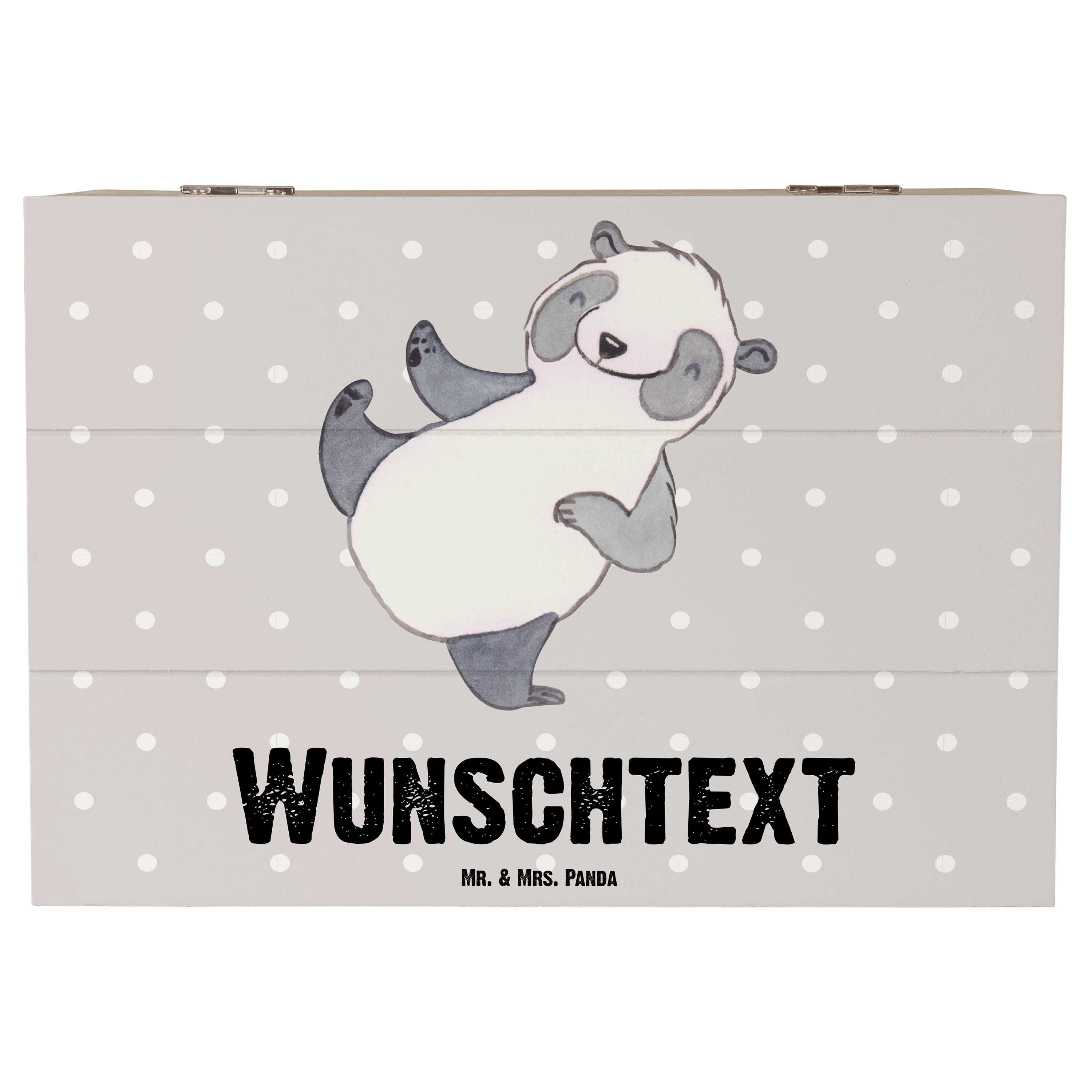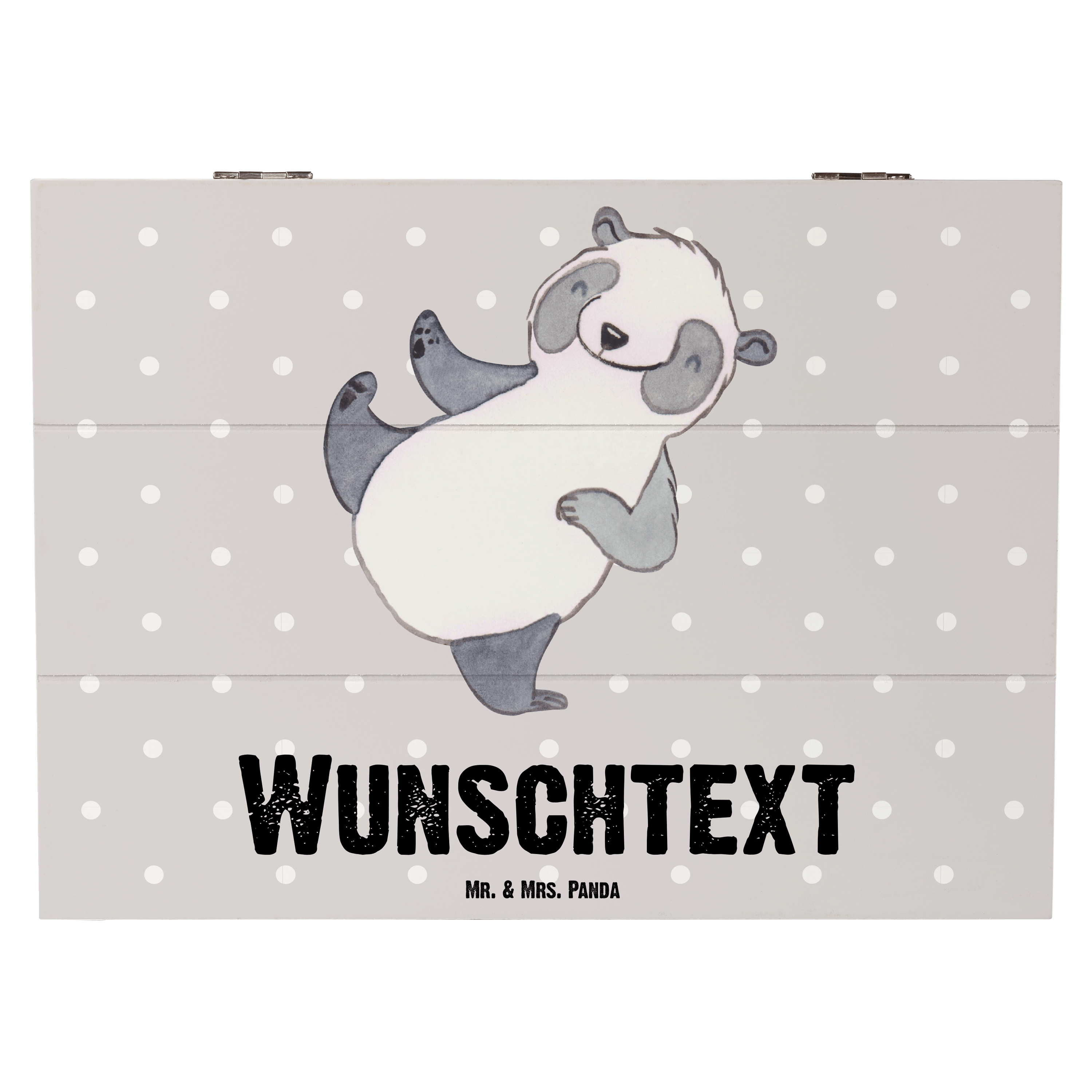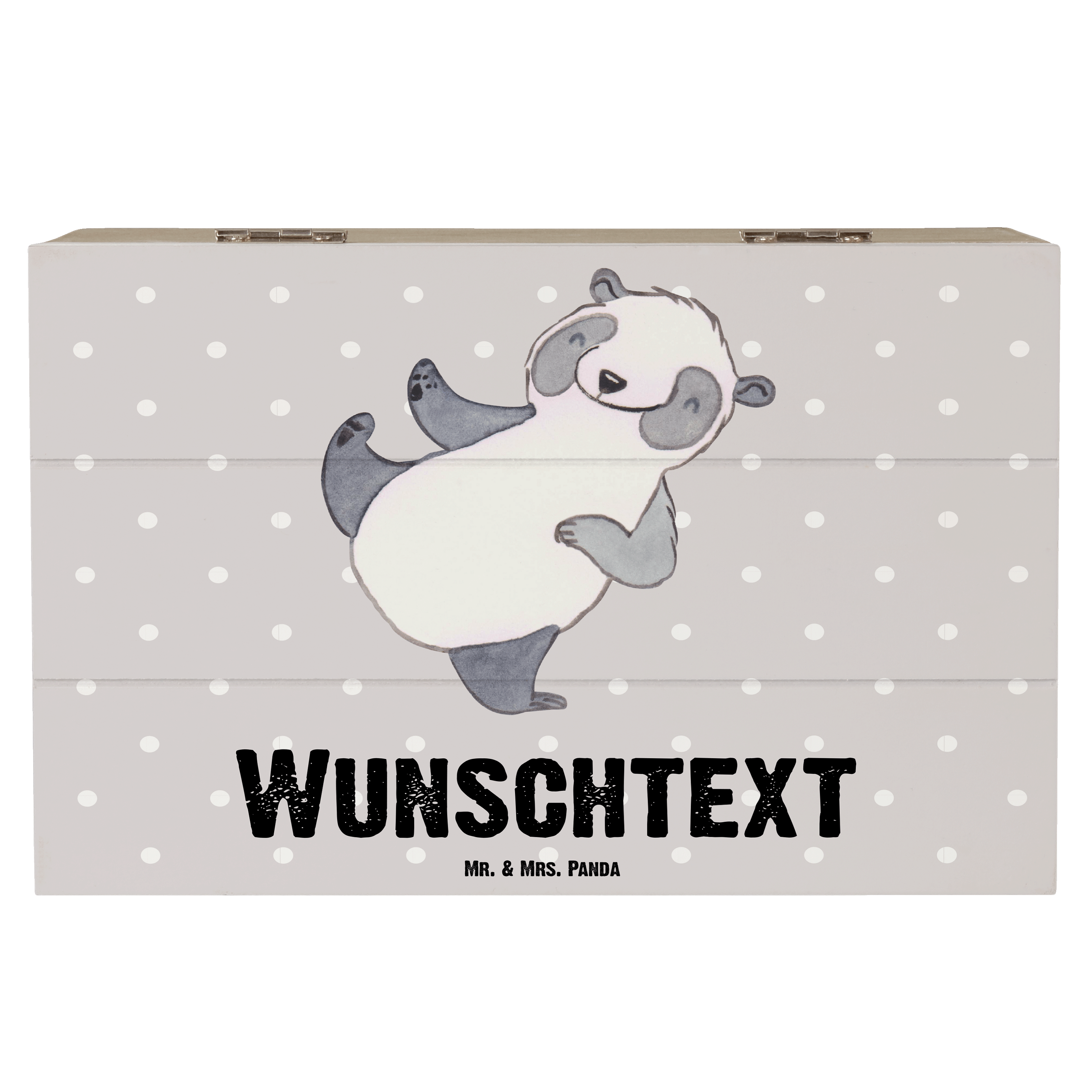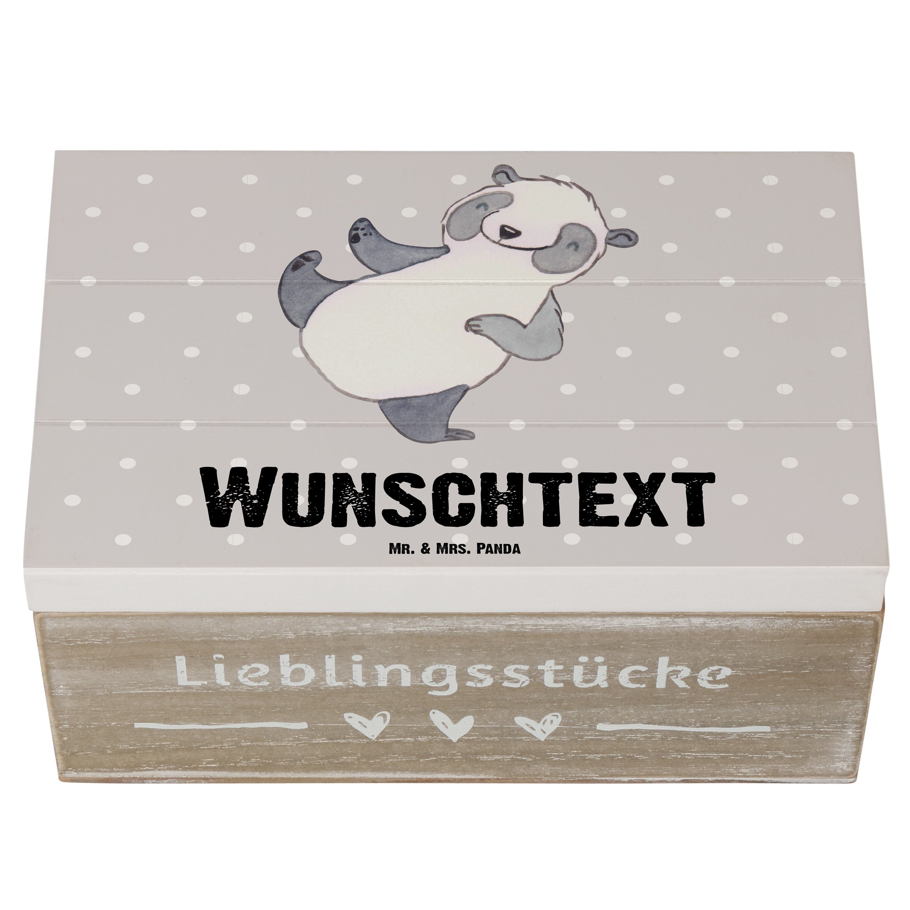 Personalisierte Holzkiste Panda Kampfkunst Tage - 25 x 18 cm - Grau Pastell