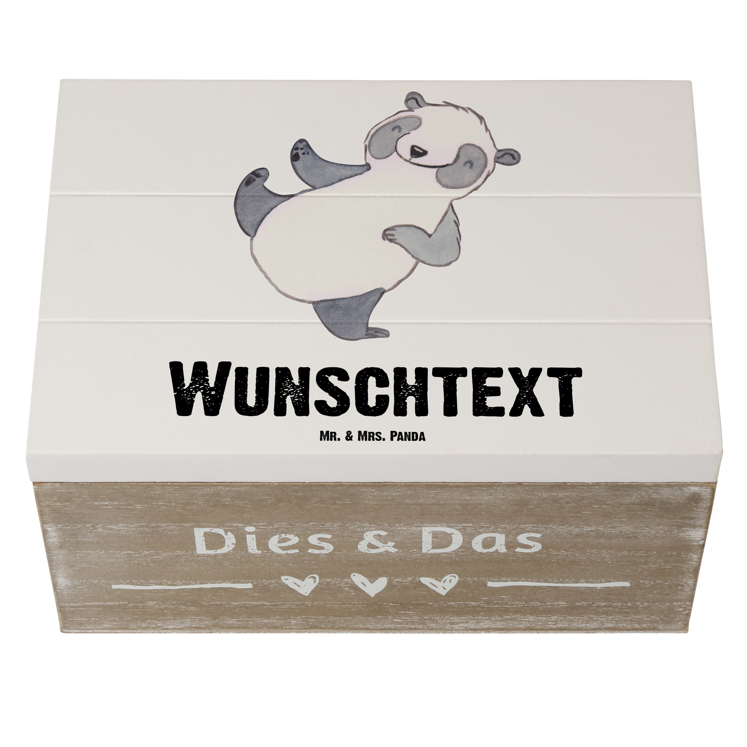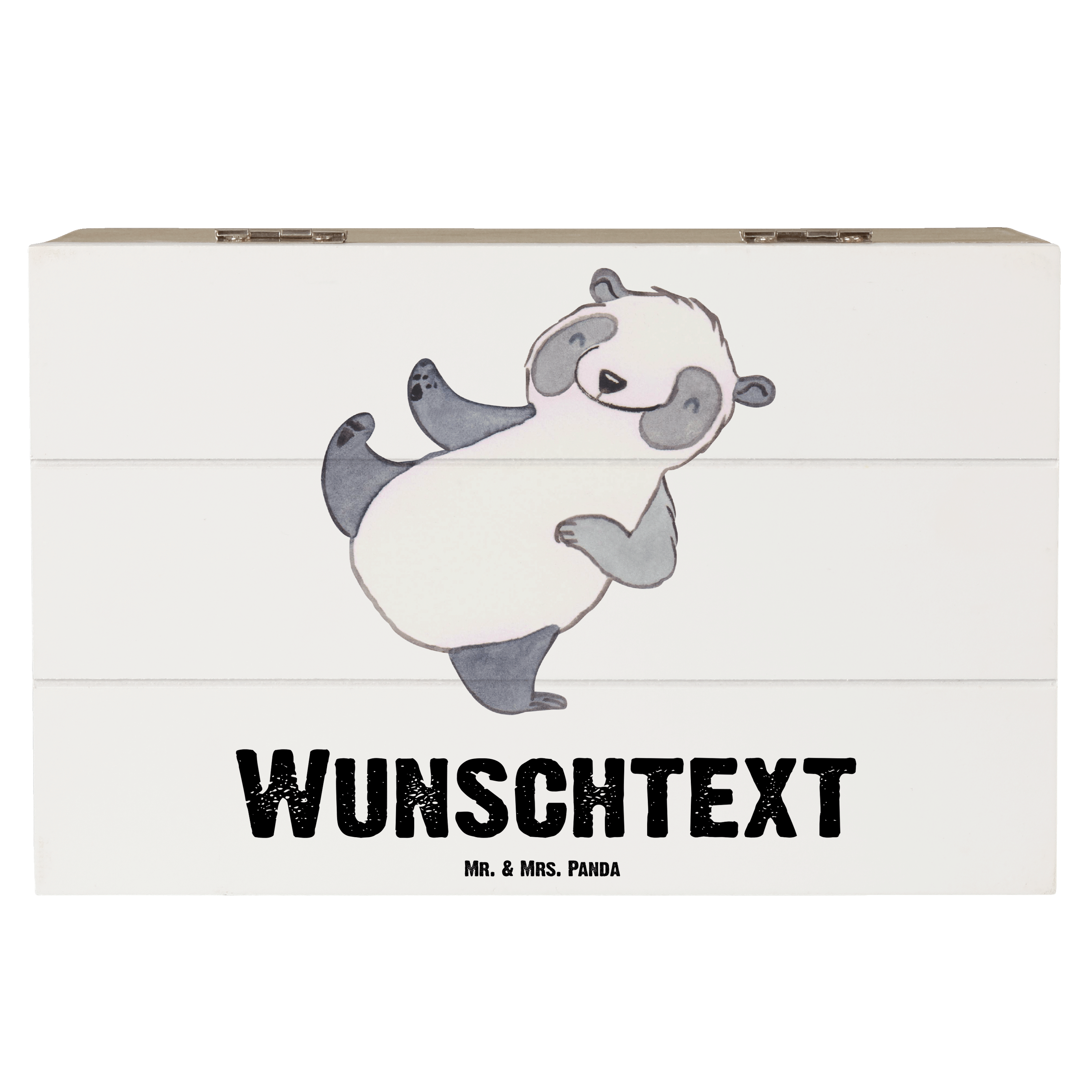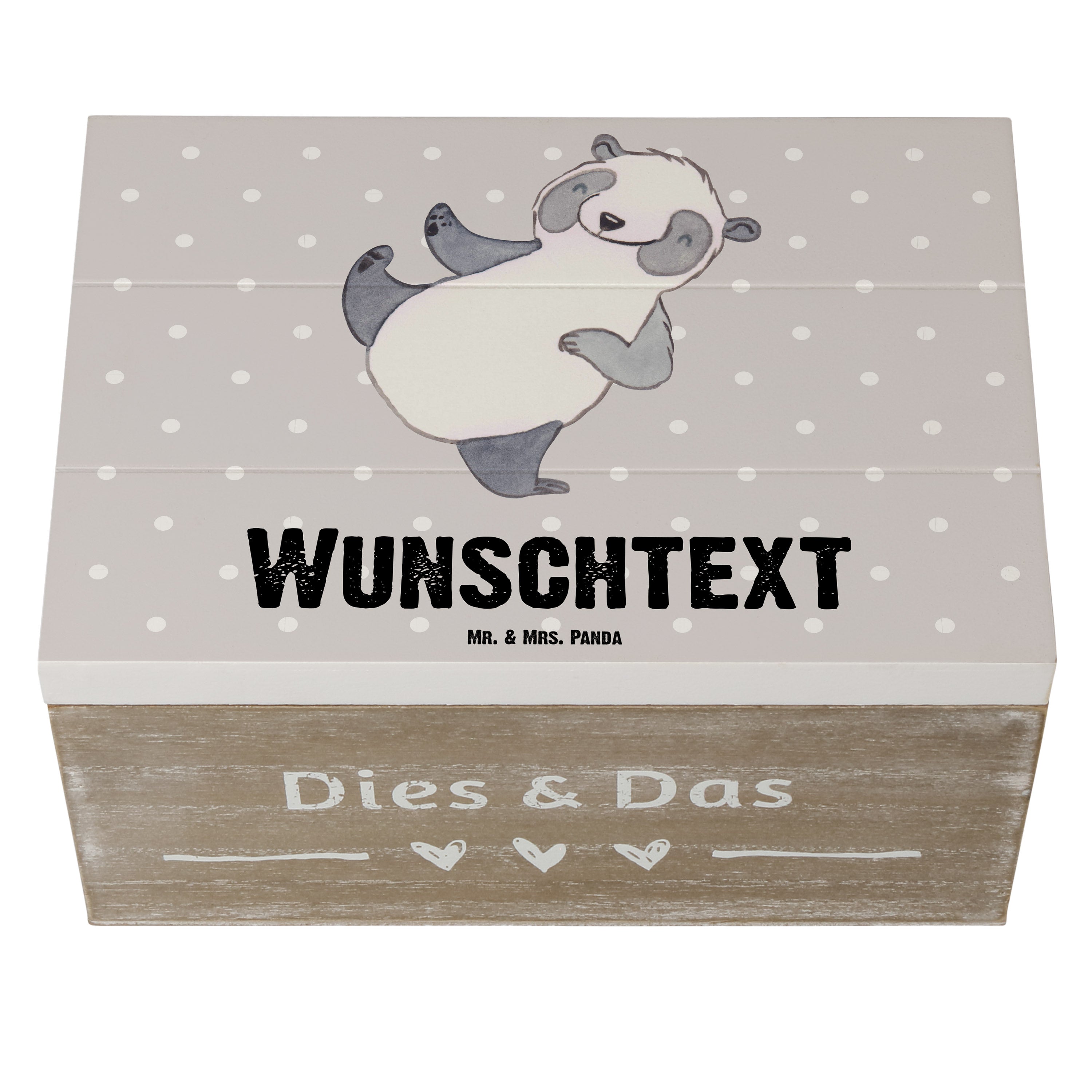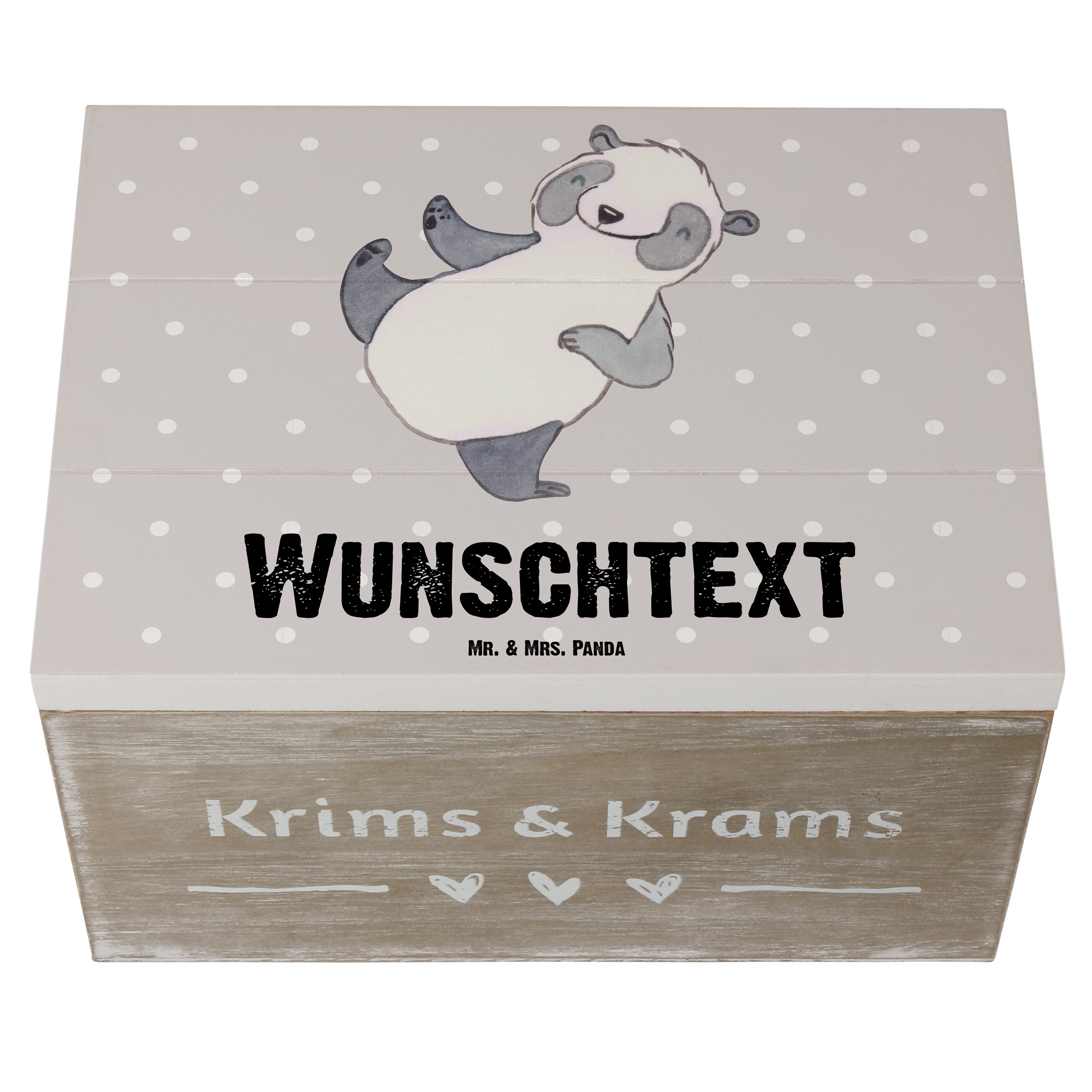 Personalisierte Holzkiste Panda Kampfkunst Tage - 25 x 18 cm - Grau Pastell