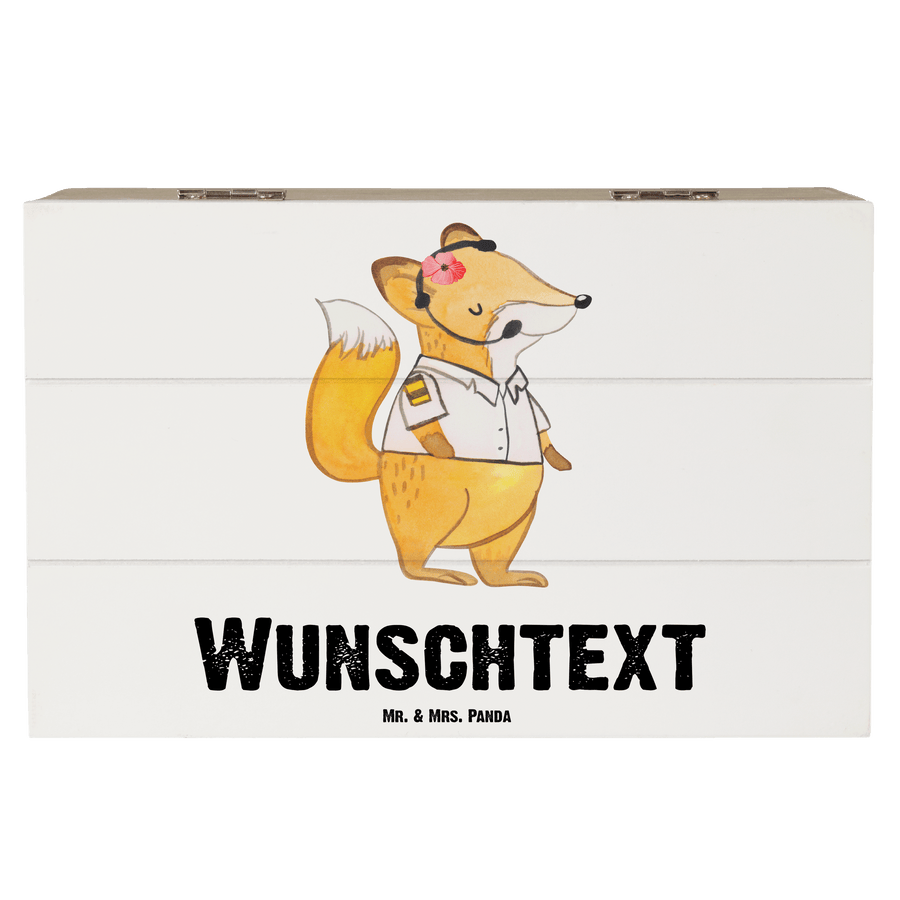 Personalisierte Holzkiste Pilotin mit Herz - Weiß - 19 x 12 cm