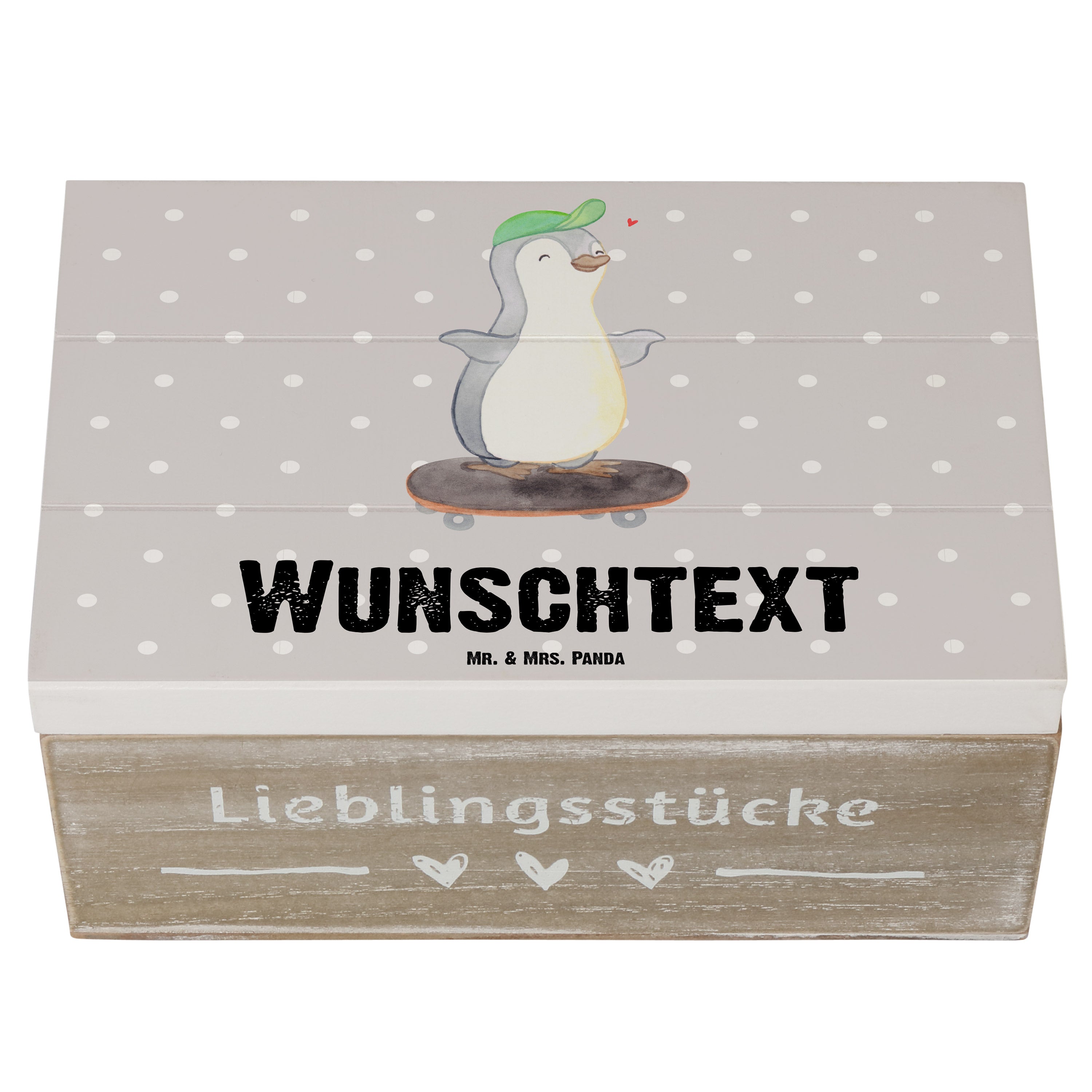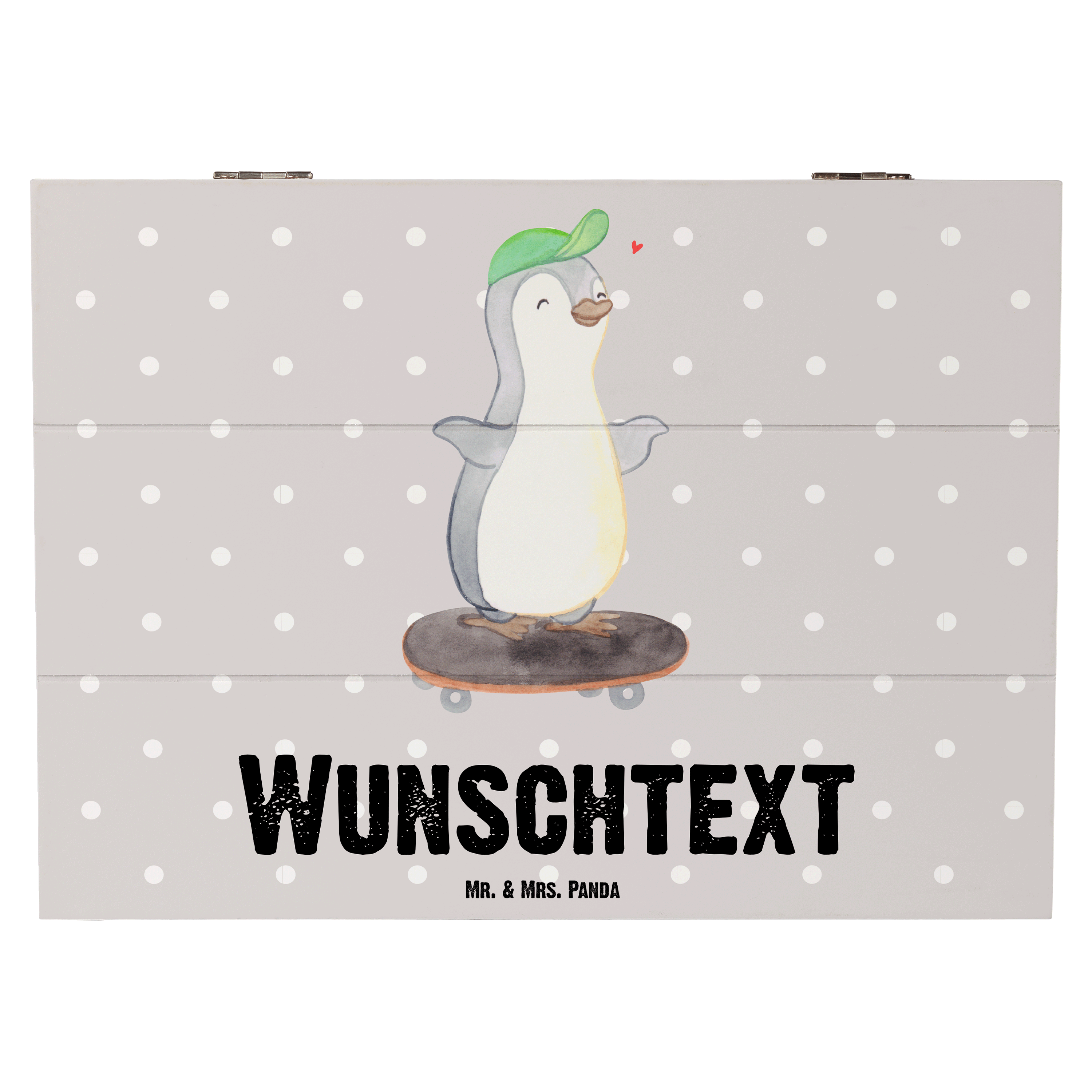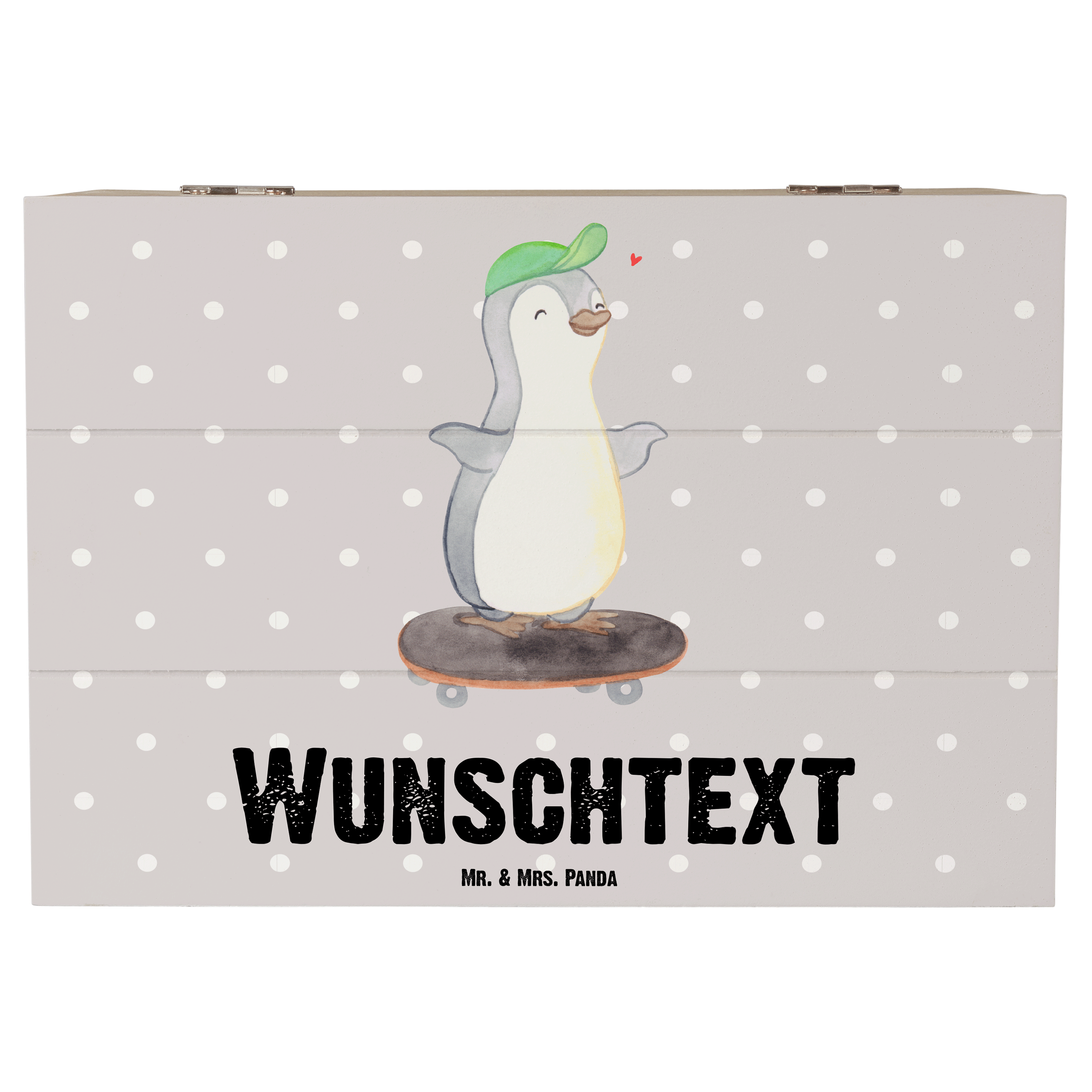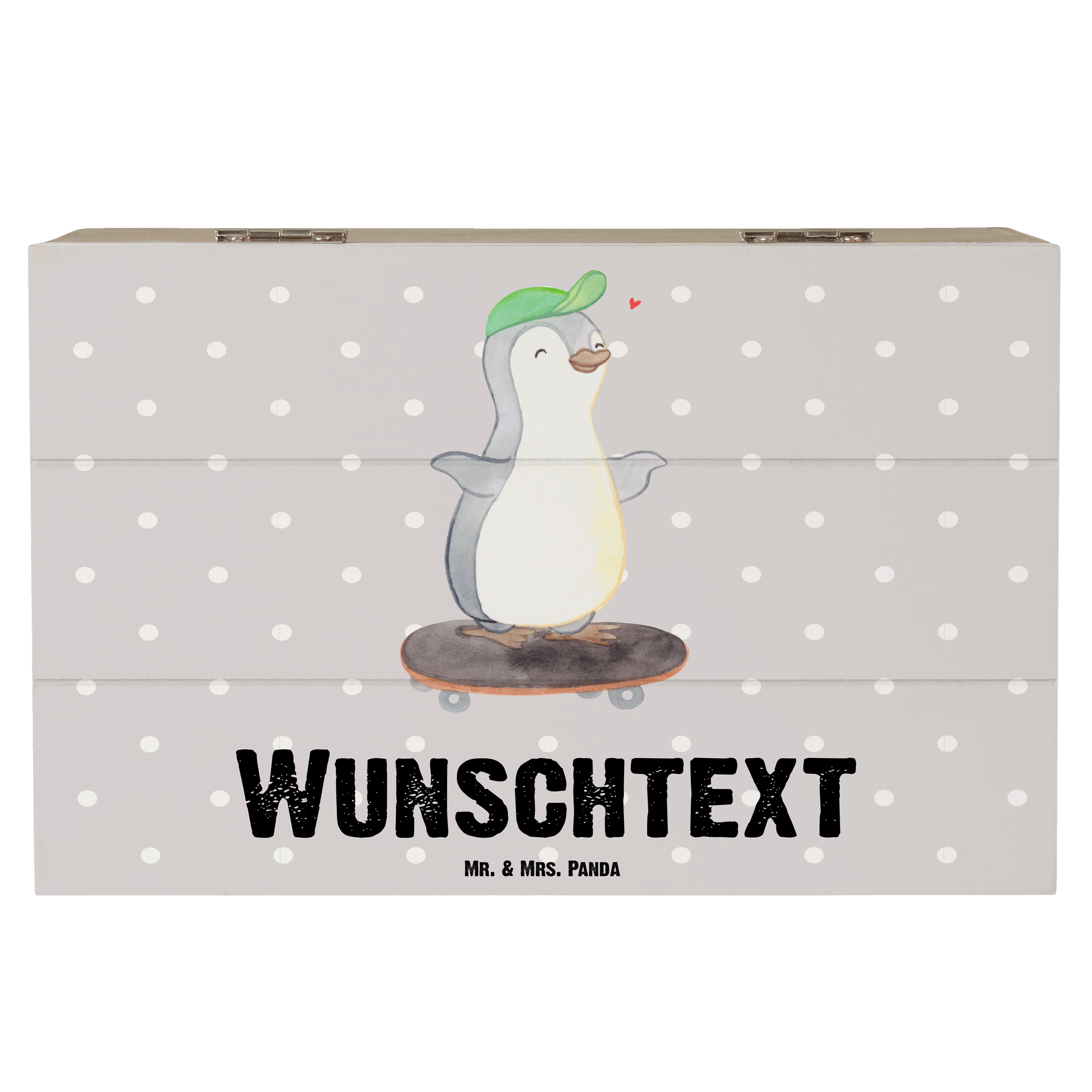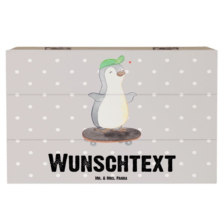 Personalisierte Holzkiste Pinguin Skateboarden Tage - Grau Pastell - 19 x 12 cm