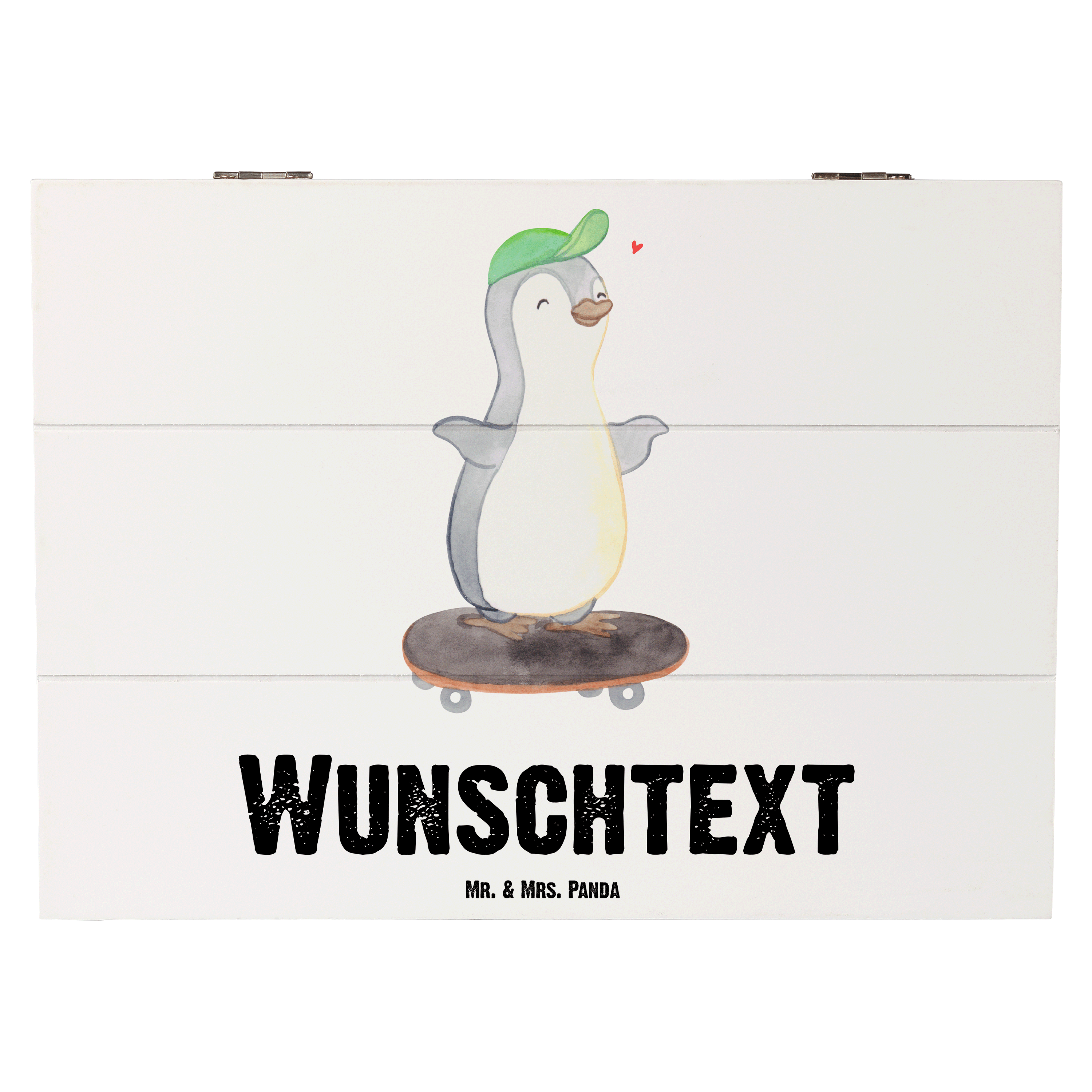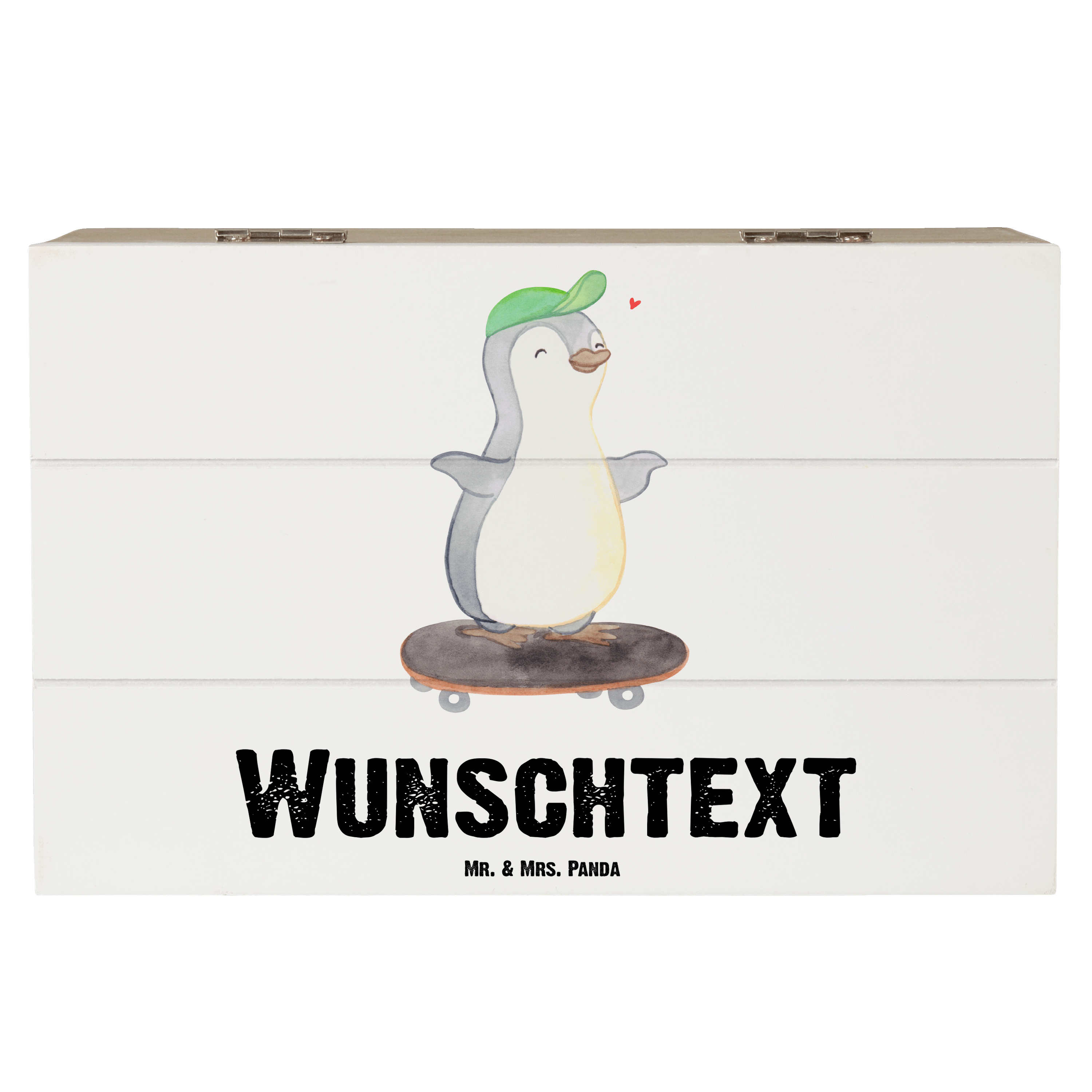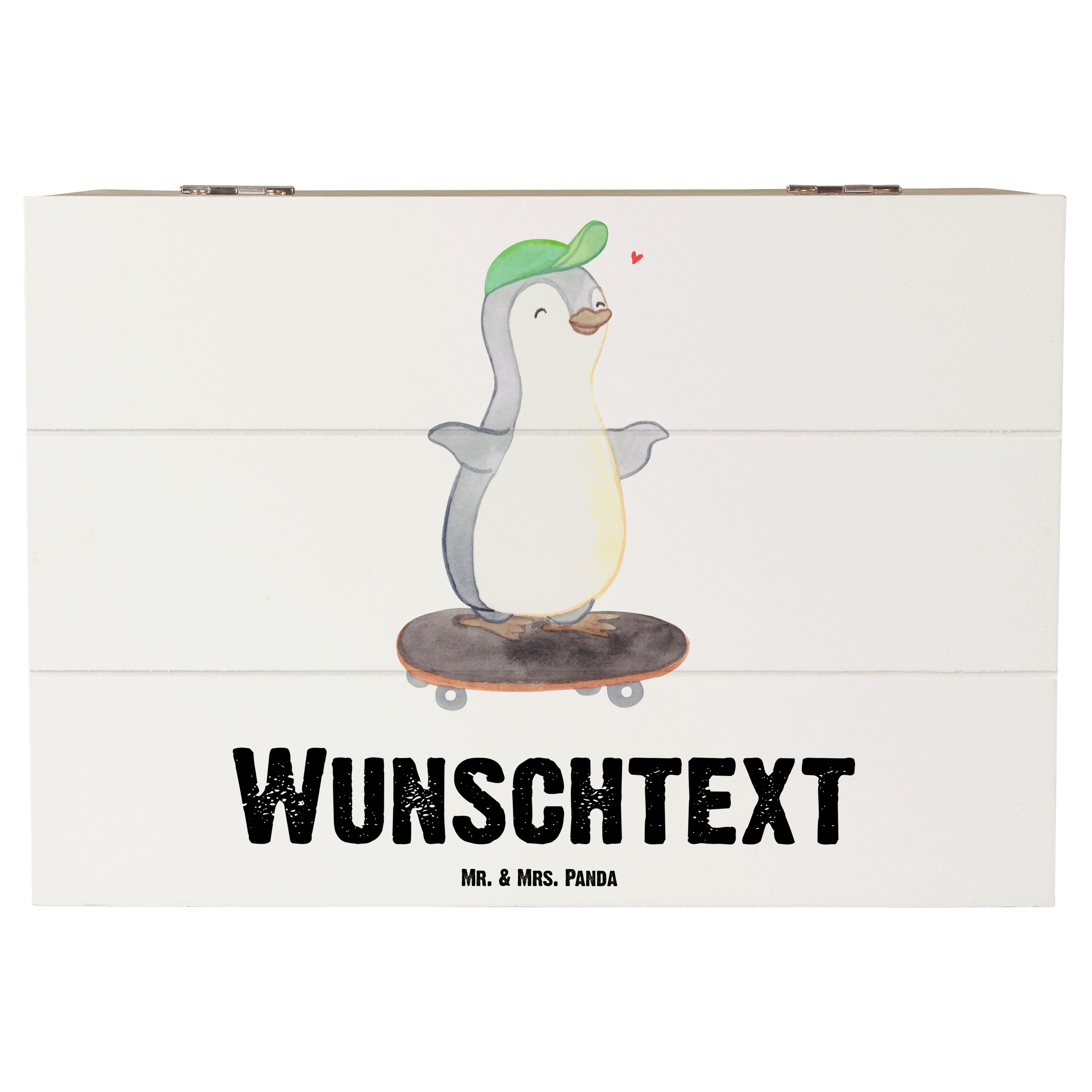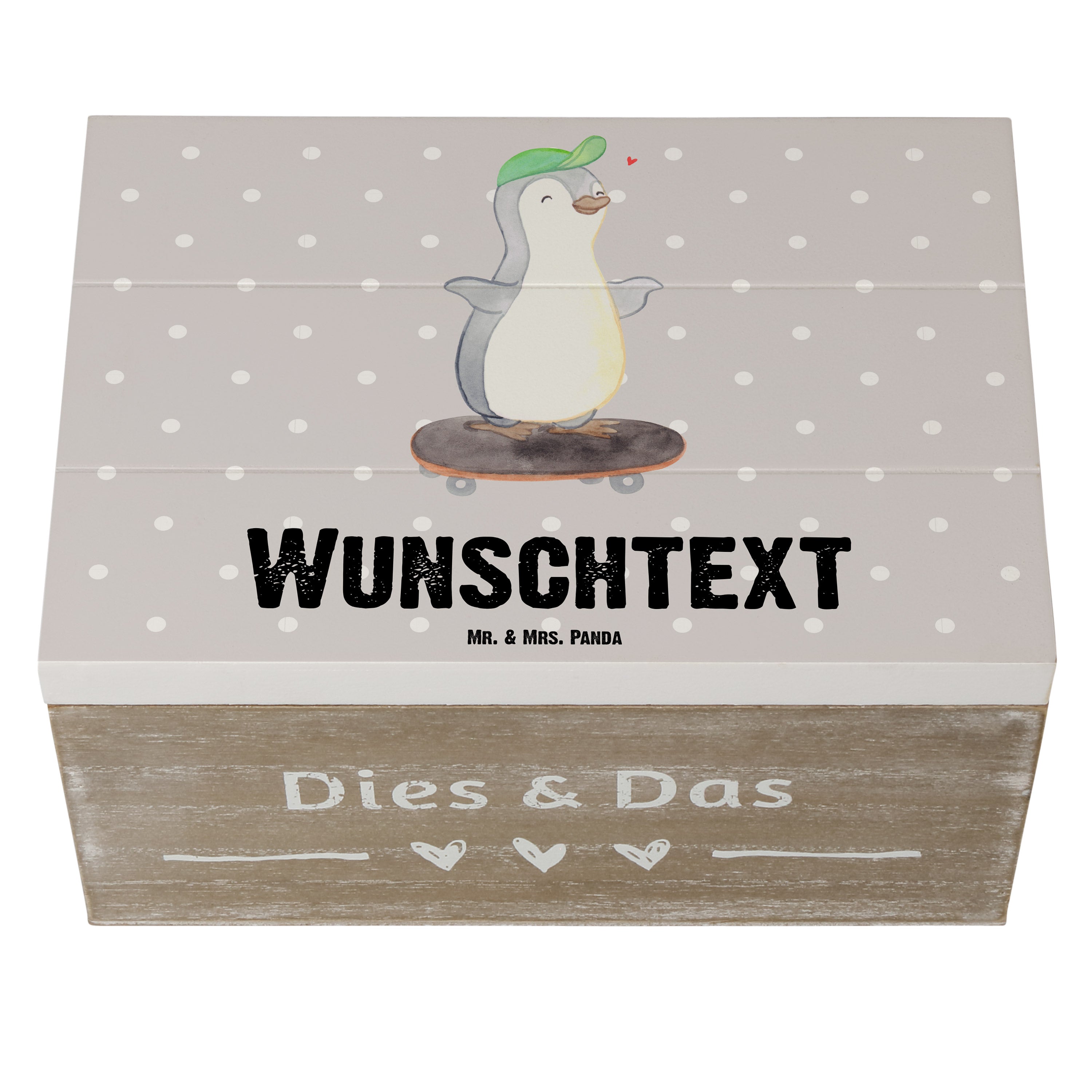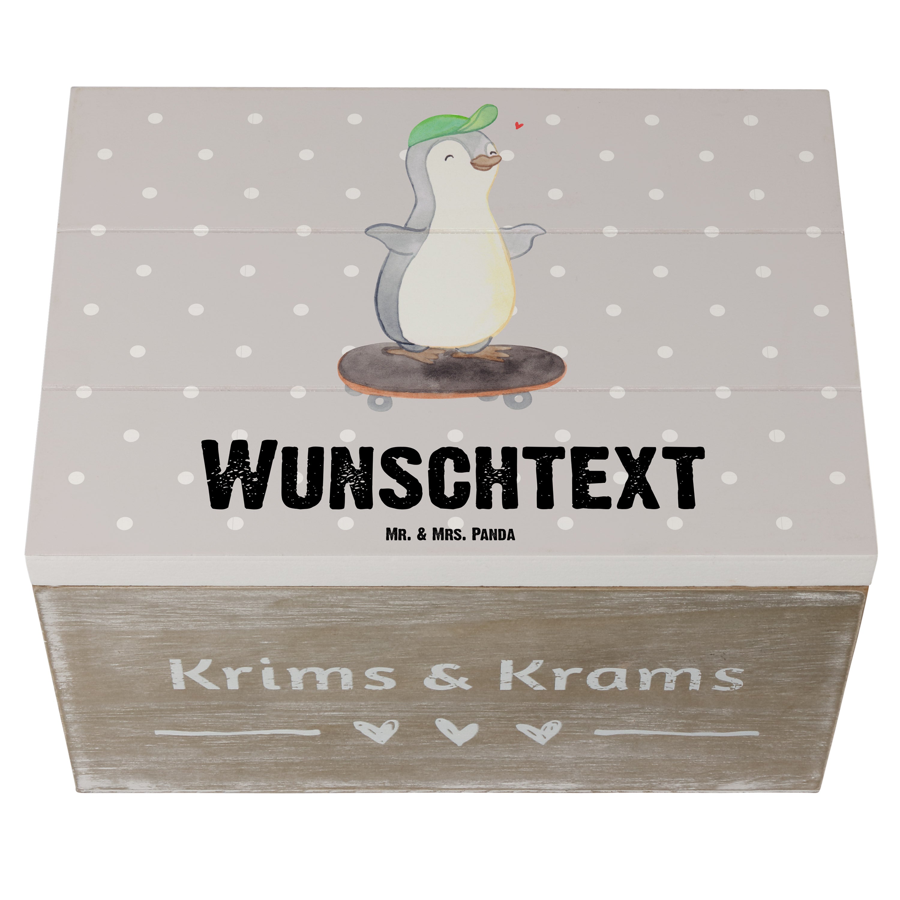 Personalisierte Holzkiste Pinguin Skateboarden Tage - Grau Pastell - 19 x 12 cm