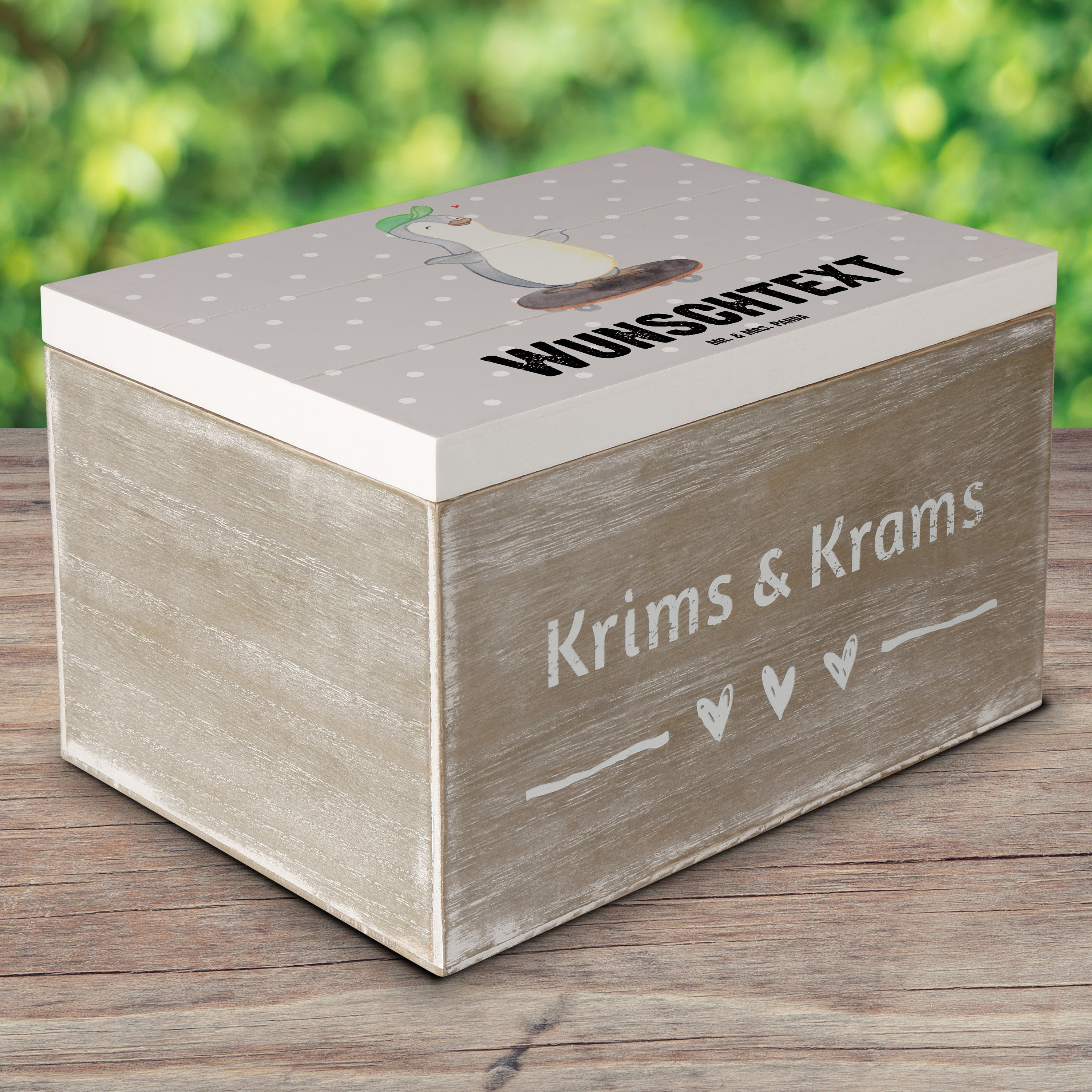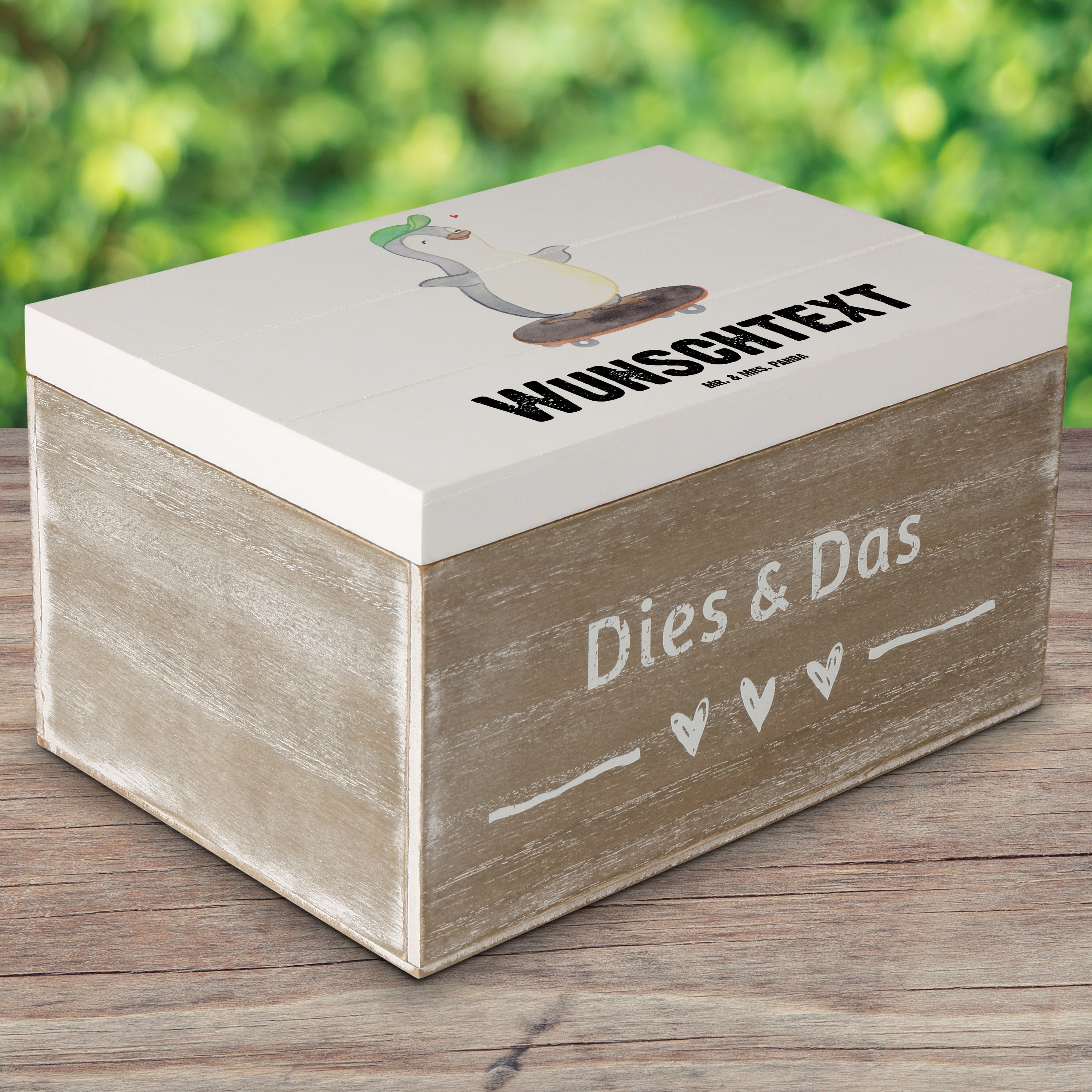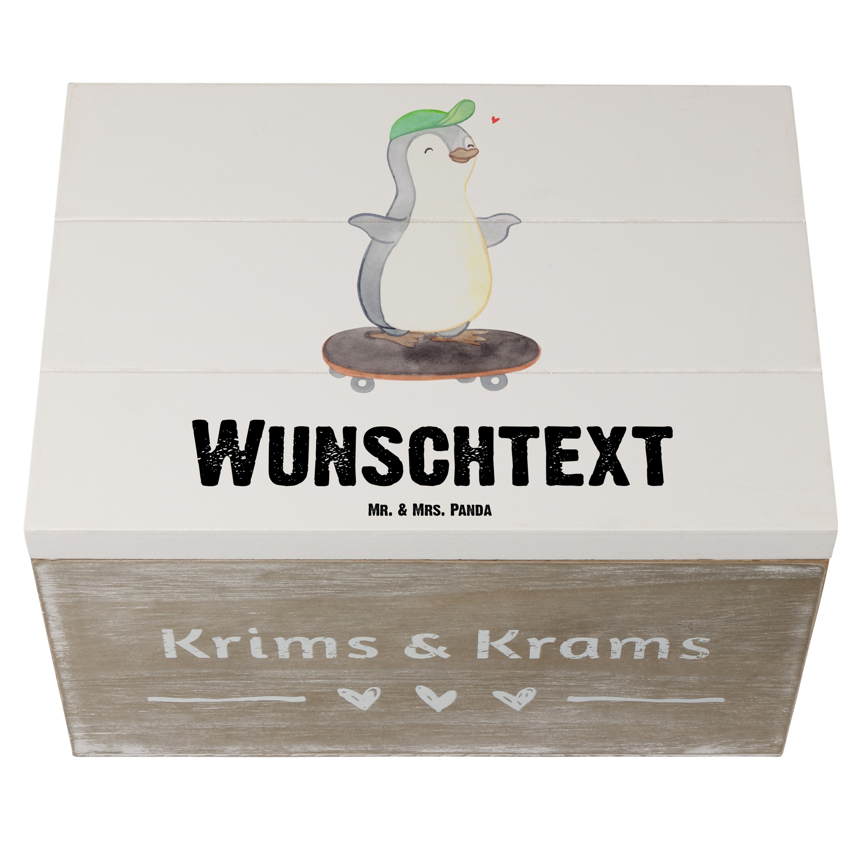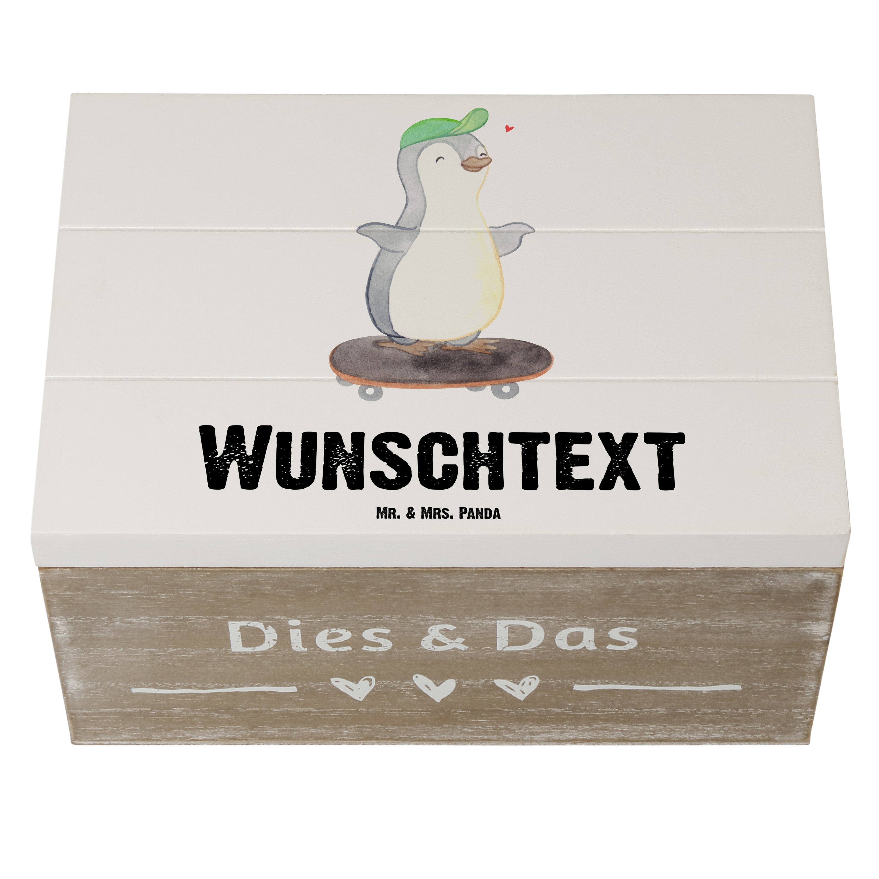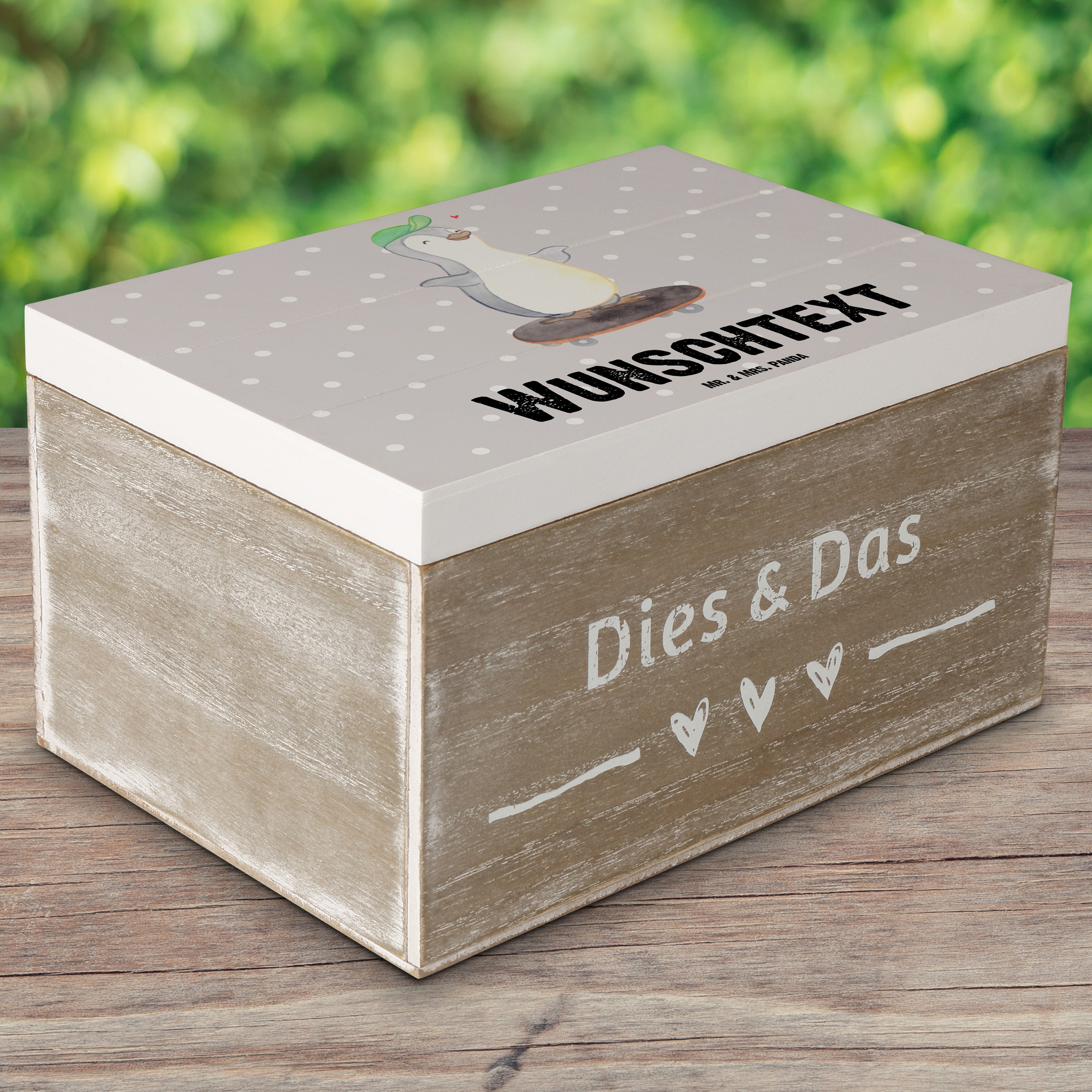 Personalisierte Holzkiste Pinguin Skateboarden Tage - Grau Pastell - 19 x 12 cm