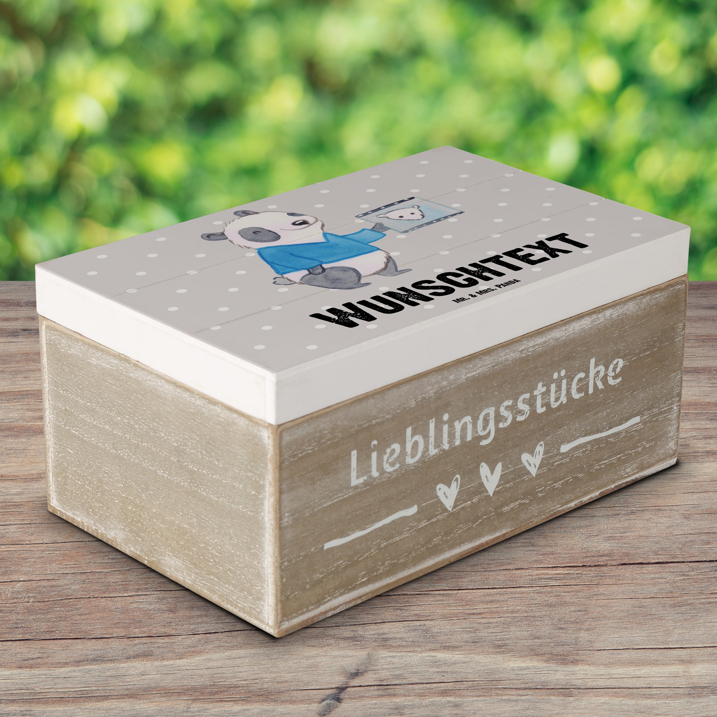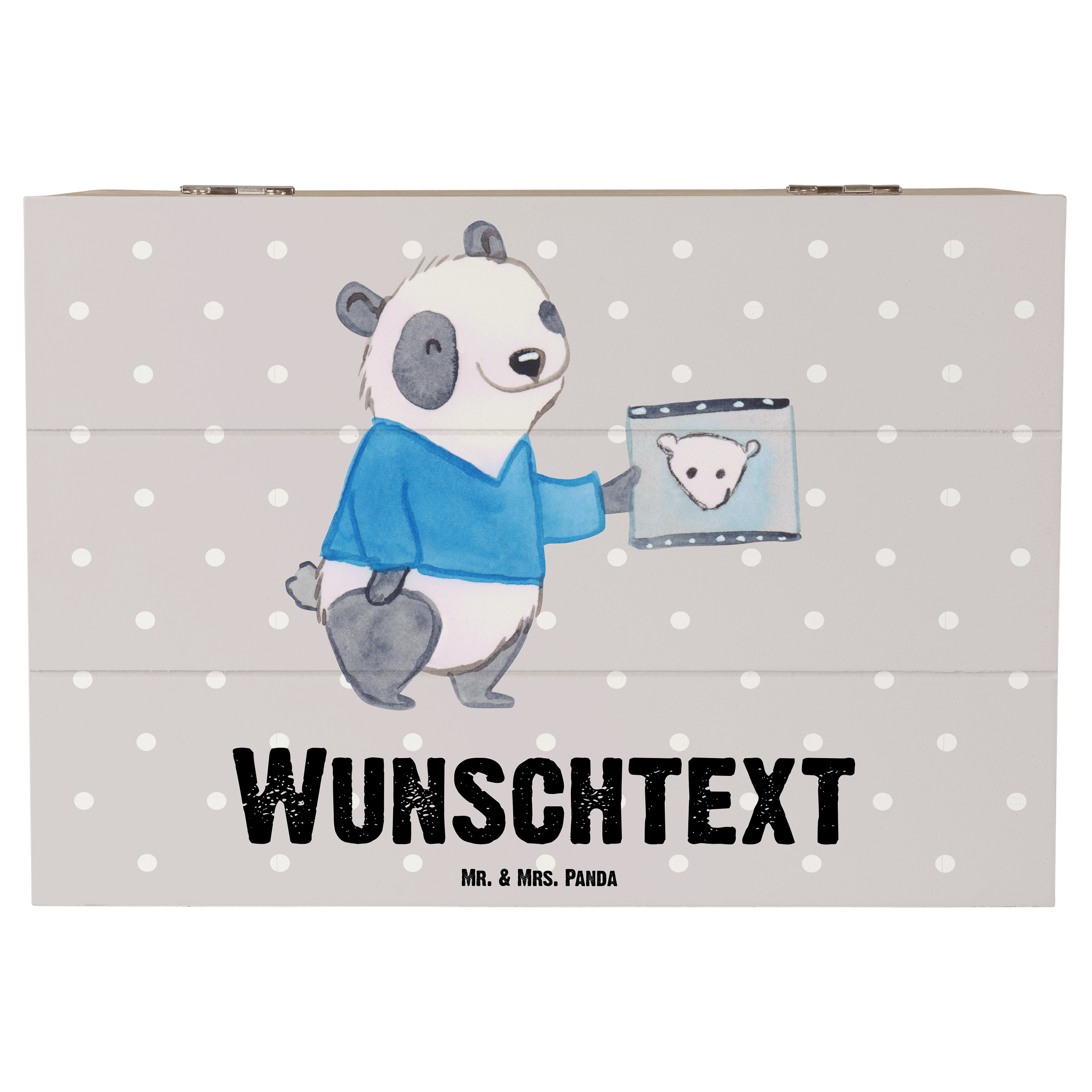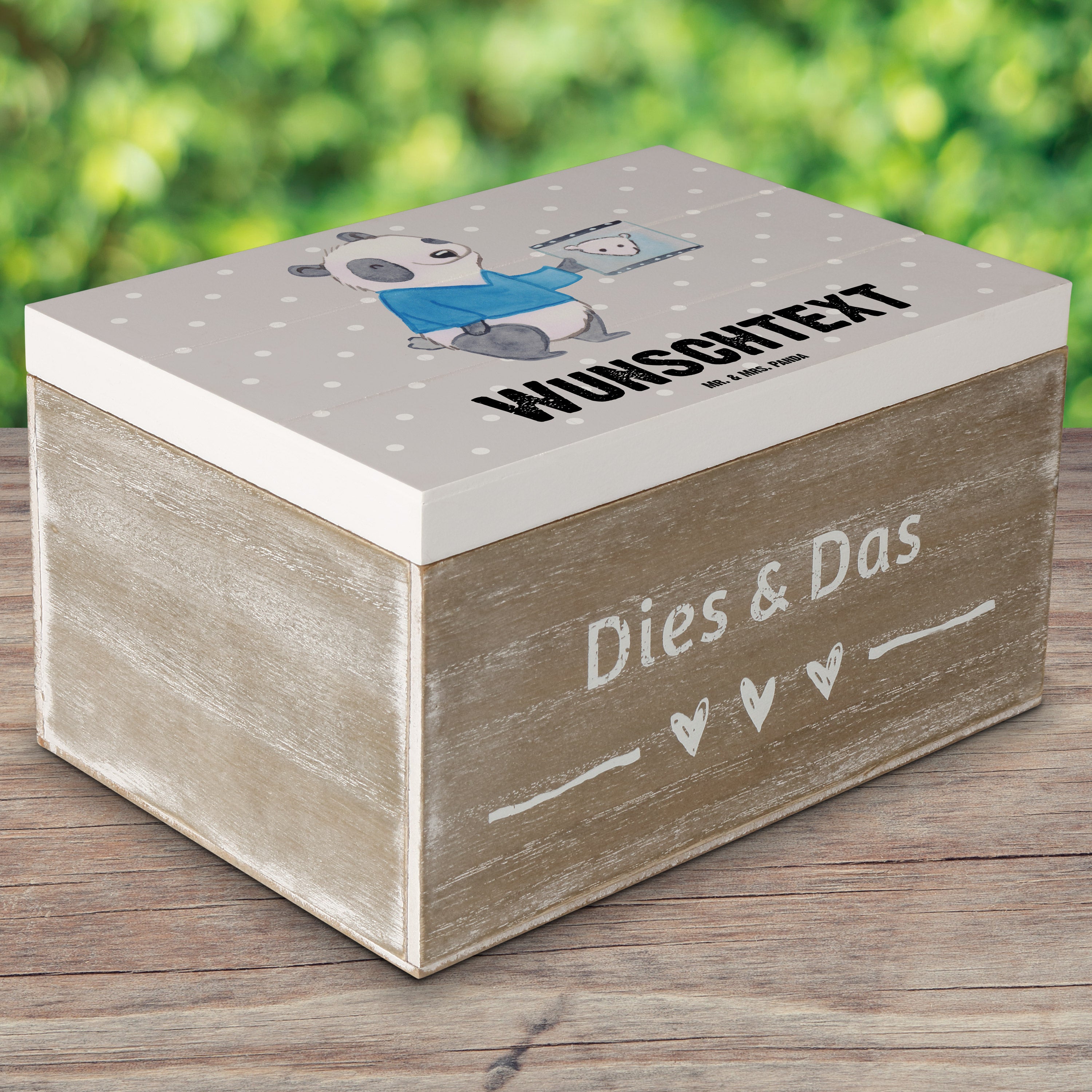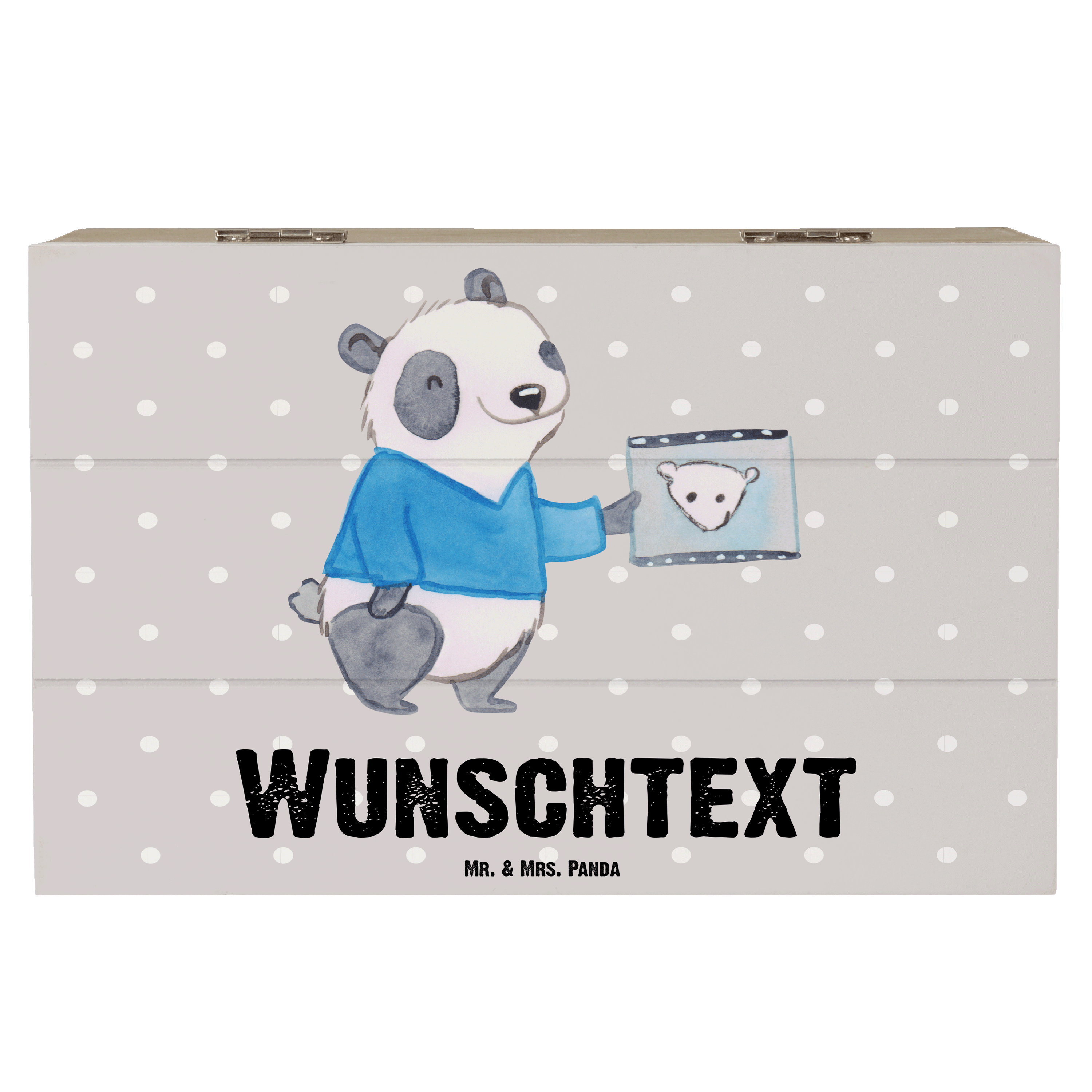 Personalisierte Holzkiste Radiologie Assistent mit Herz - Grau Pastell - 19 x 12 cm