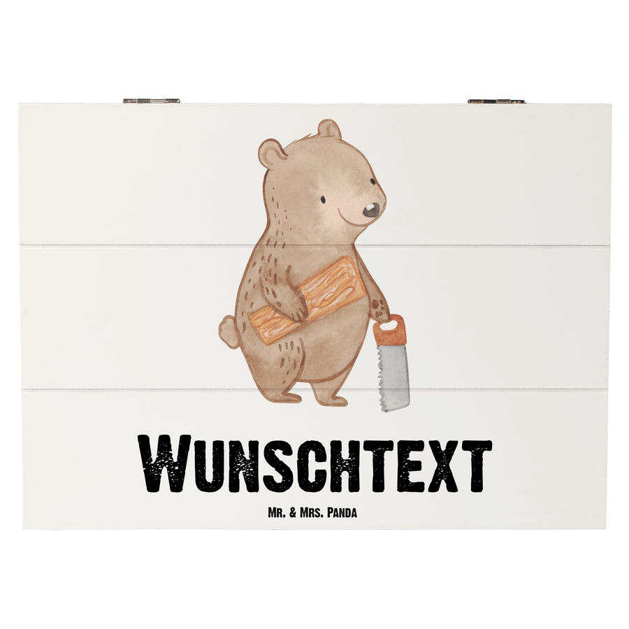 Personalisierte Holzkiste Tischler mit Herz - 25 x 18 cm - Weiß
