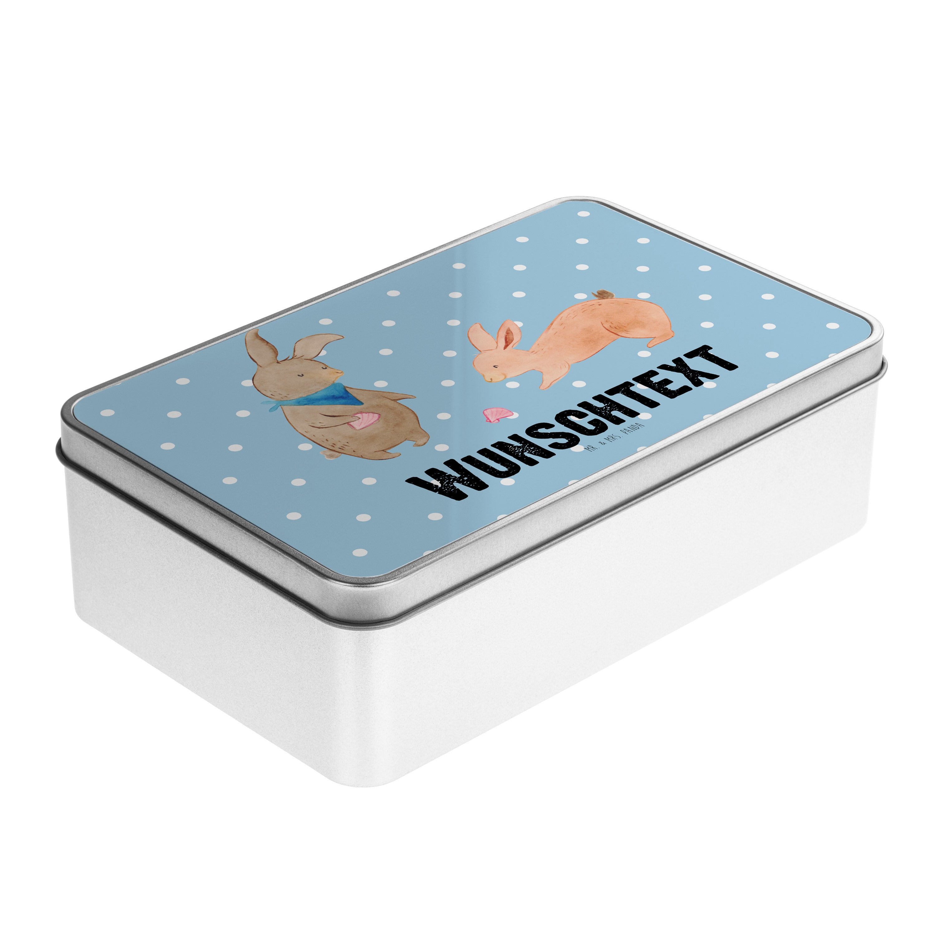 Personalisierte Metalldose Hasen Muschel - Blau Pastell