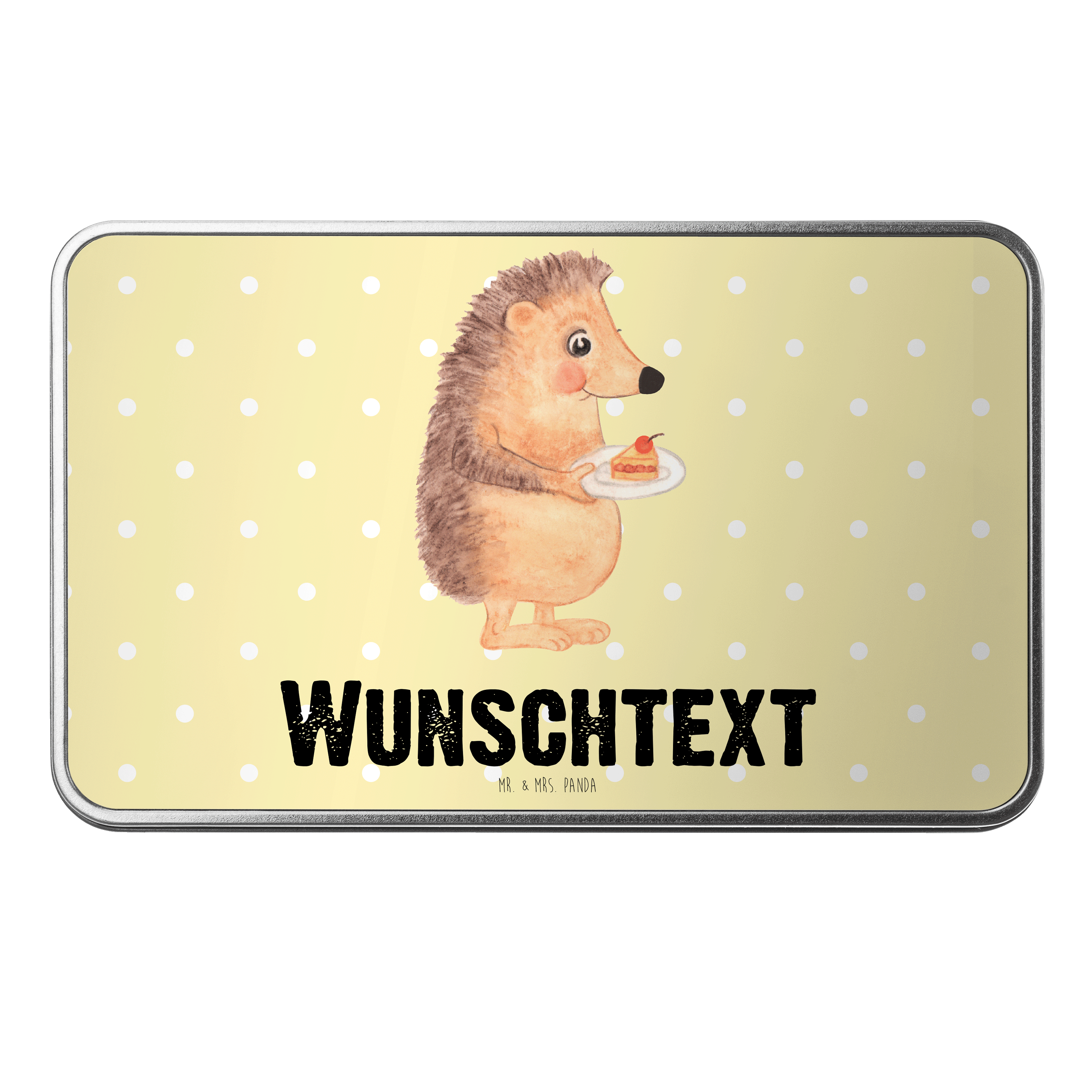 Personalisierte Metalldose Igel mit Kuchenstück Personalisierte Metalldose, Dose mit Namen, Namensdose, Kiste mit Namen, Namenskiste, Tiermotive, Gute Laune, lustige Sprüche, Tiere, Igel, Essen Spruch, Kuchen, Backen Geschenk, Kuchen backen, Einladung Party, Geburtstagskuchen, Torte