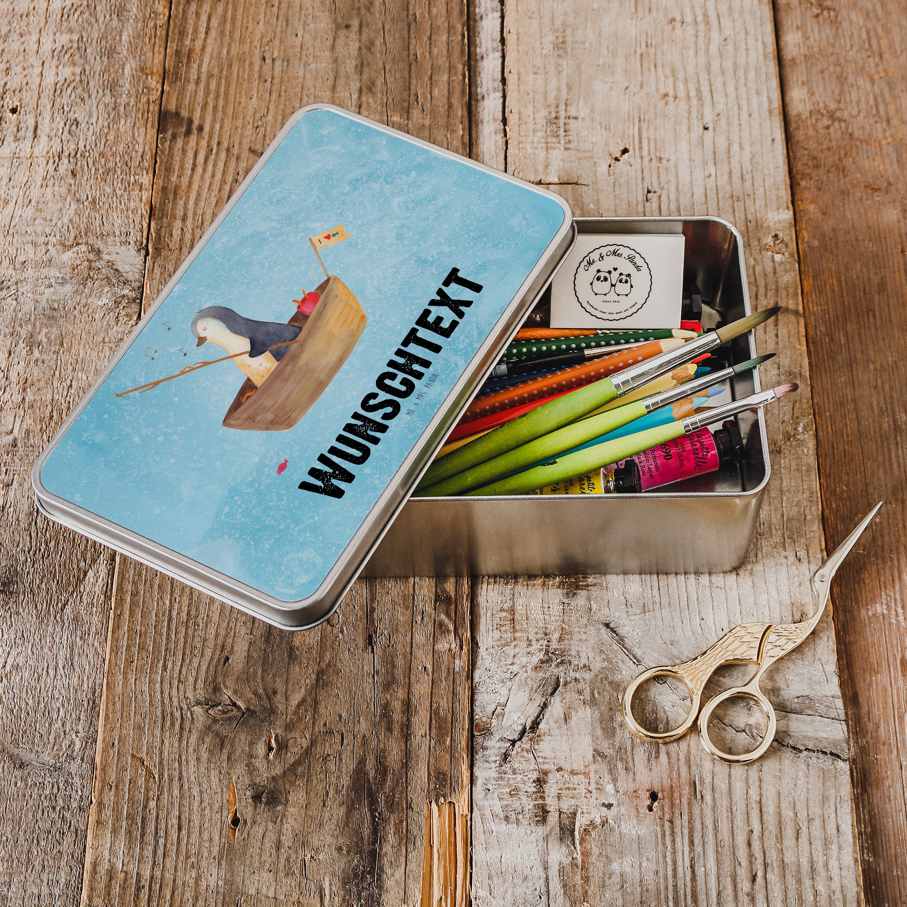 Personalisierte Metalldose Pinguin Angelboot