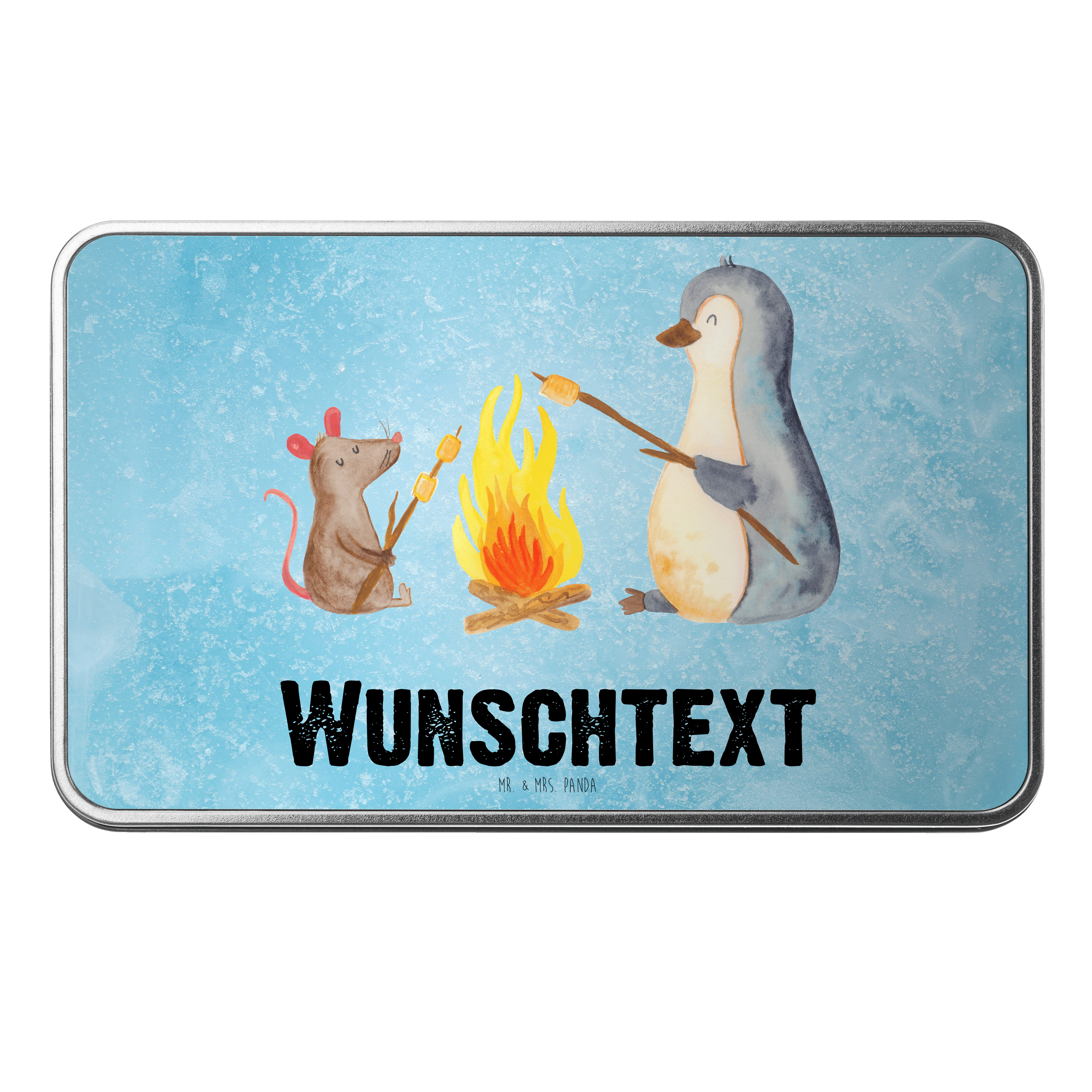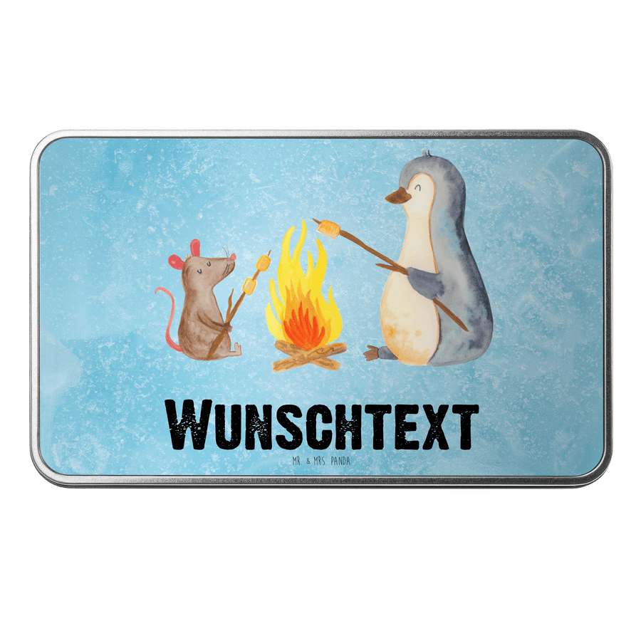 Personalisierte Metalldose Pinguin Lagerfeuer