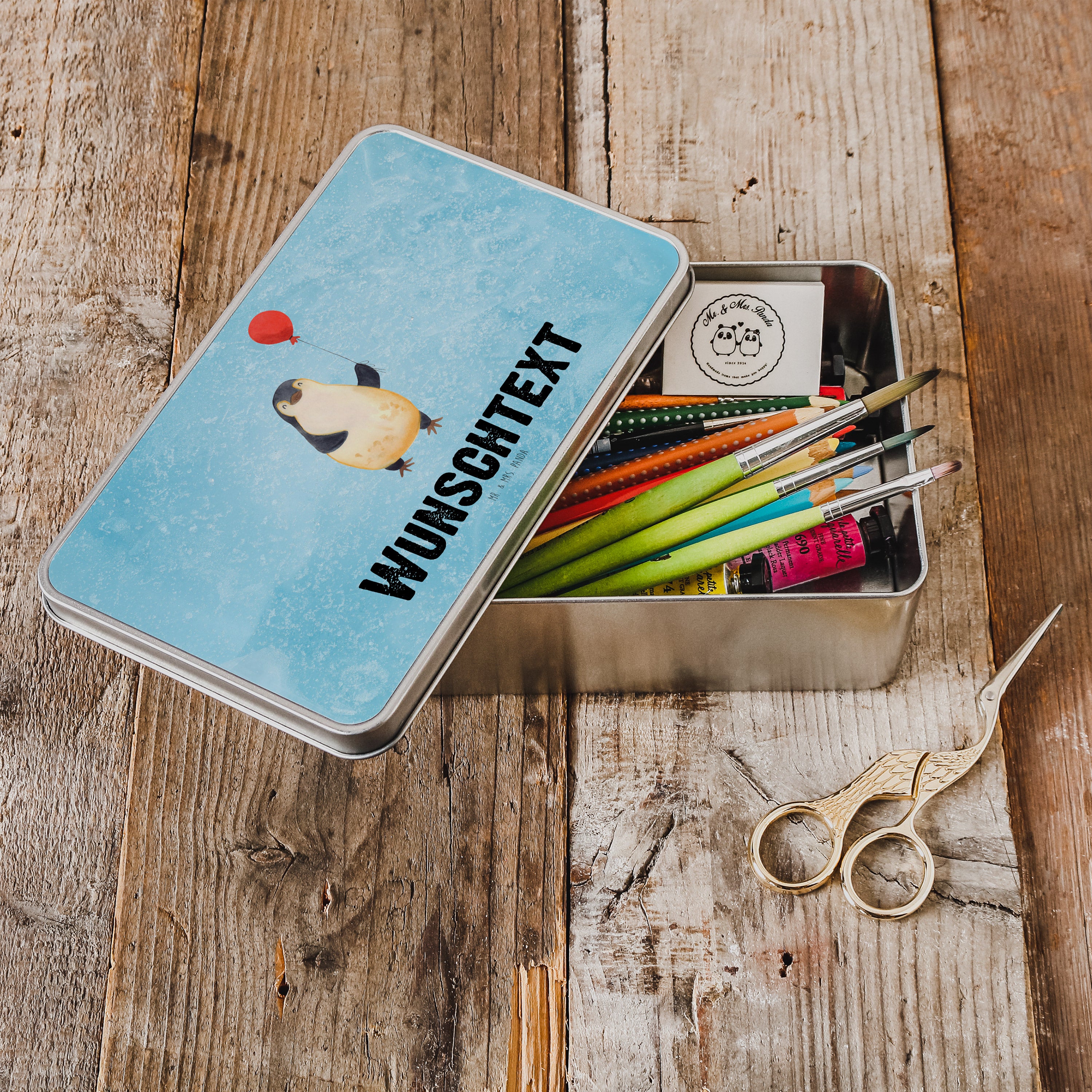 Personalisierte Metalldose Pinguin Luftballon