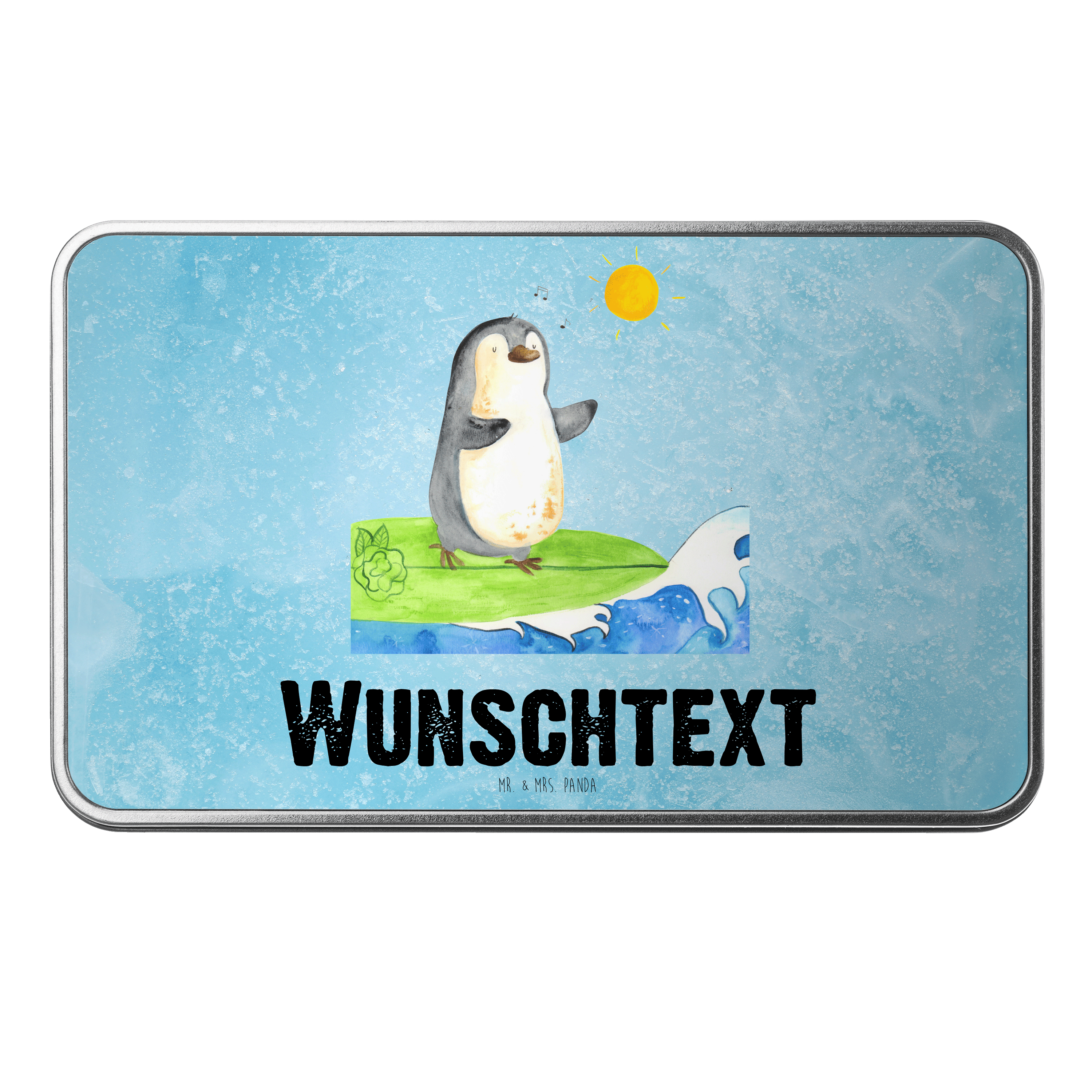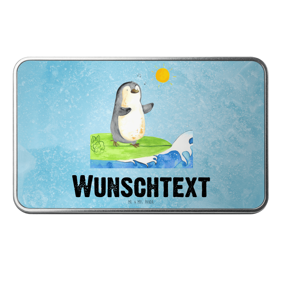 Personalisierte Metalldose Pinguin Surfer Personalisierte Metalldose, Dose mit Namen, Namensdose, Kiste mit Namen, Namenskiste, Pinguin, Pinguine, surfen, Surfer, Hawaii, Urlaub, Wellen, Wellen reiten, Portugal